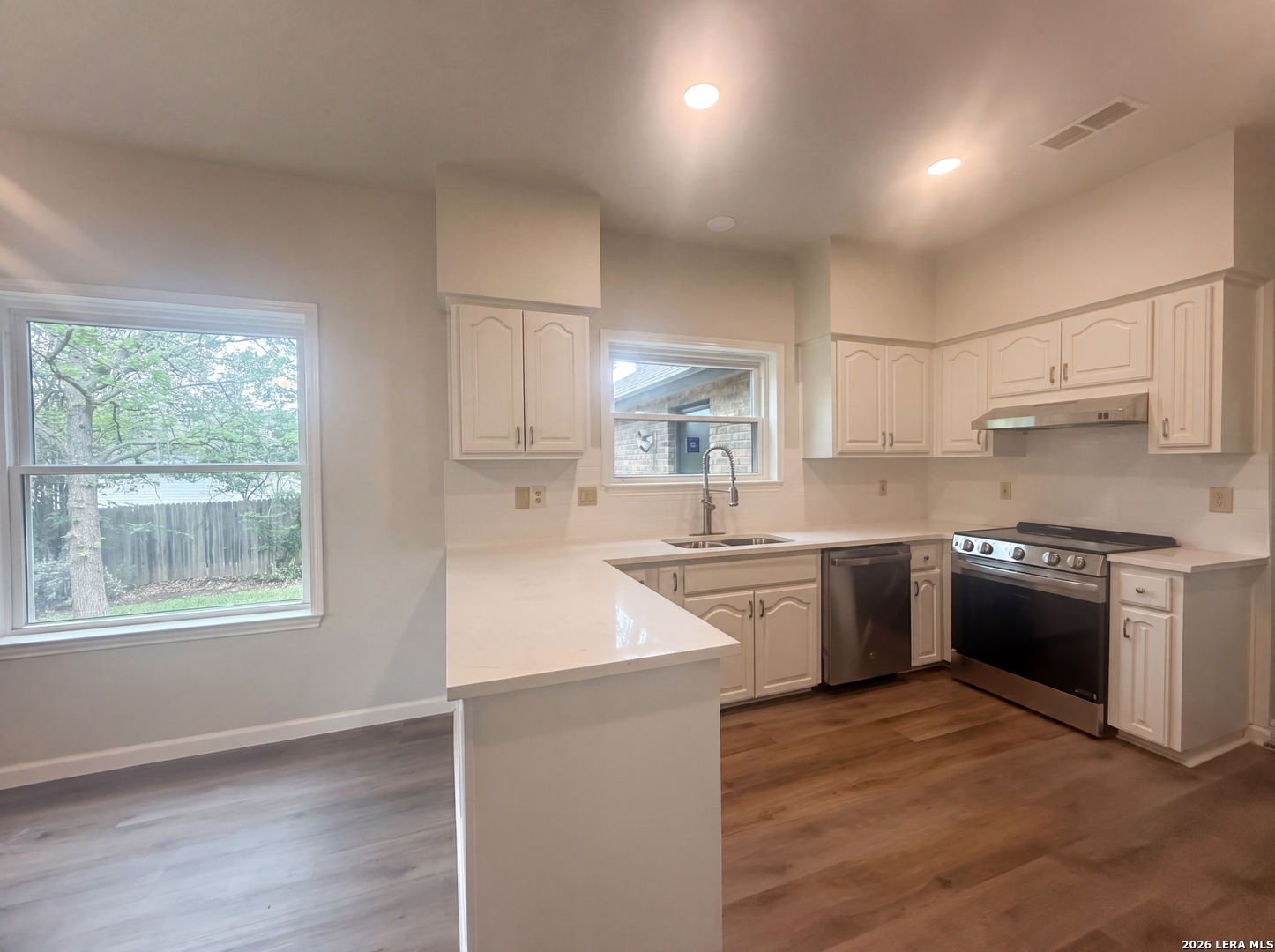 Step into 15626 Dove Meadow St, recently enhanced with new flooring throughout the home and fresh interior paint. The living area features a fireplace, while the kitchen contains an accent backsplash and stainless steel appliances. The primary bedroom includes a walk in closet, and its bathroom provides double sinks. Outdoors, a deck connects to a fenced in backyard. This updated residence delivers comfort and functionality throughout. Included 100-Day Home Warranty with buyer activation