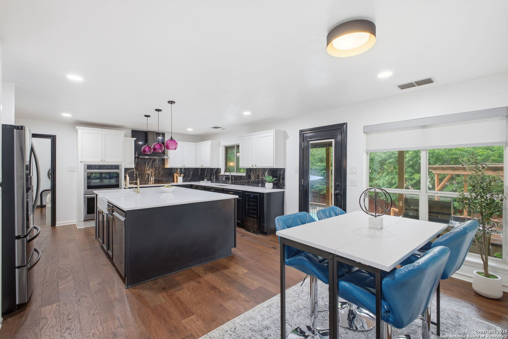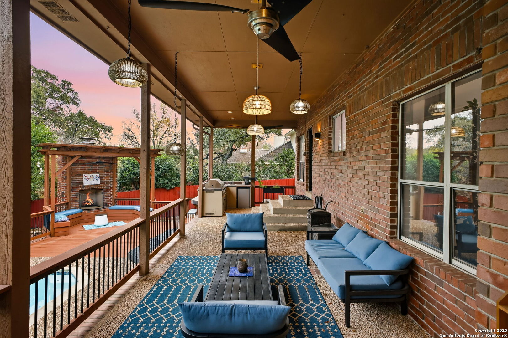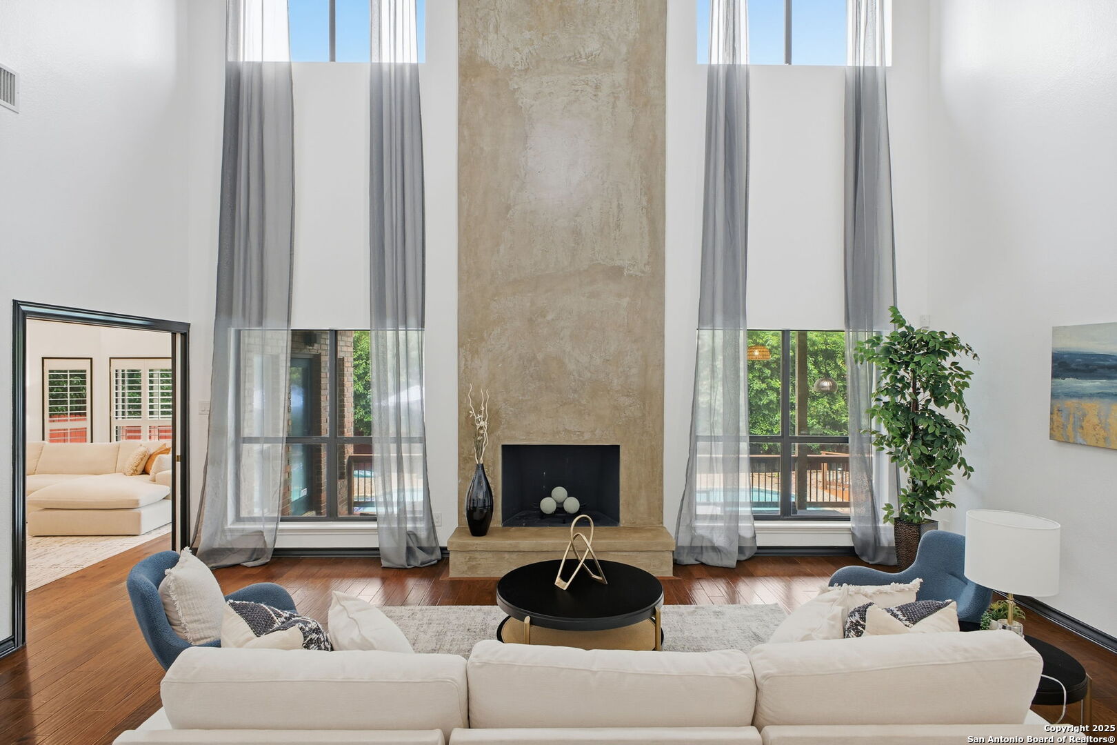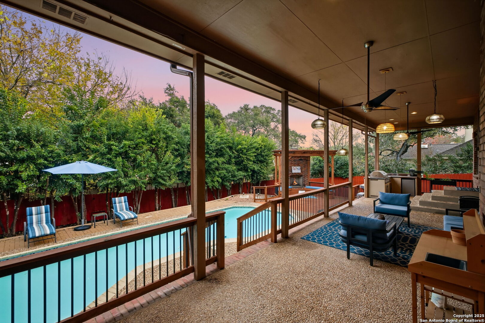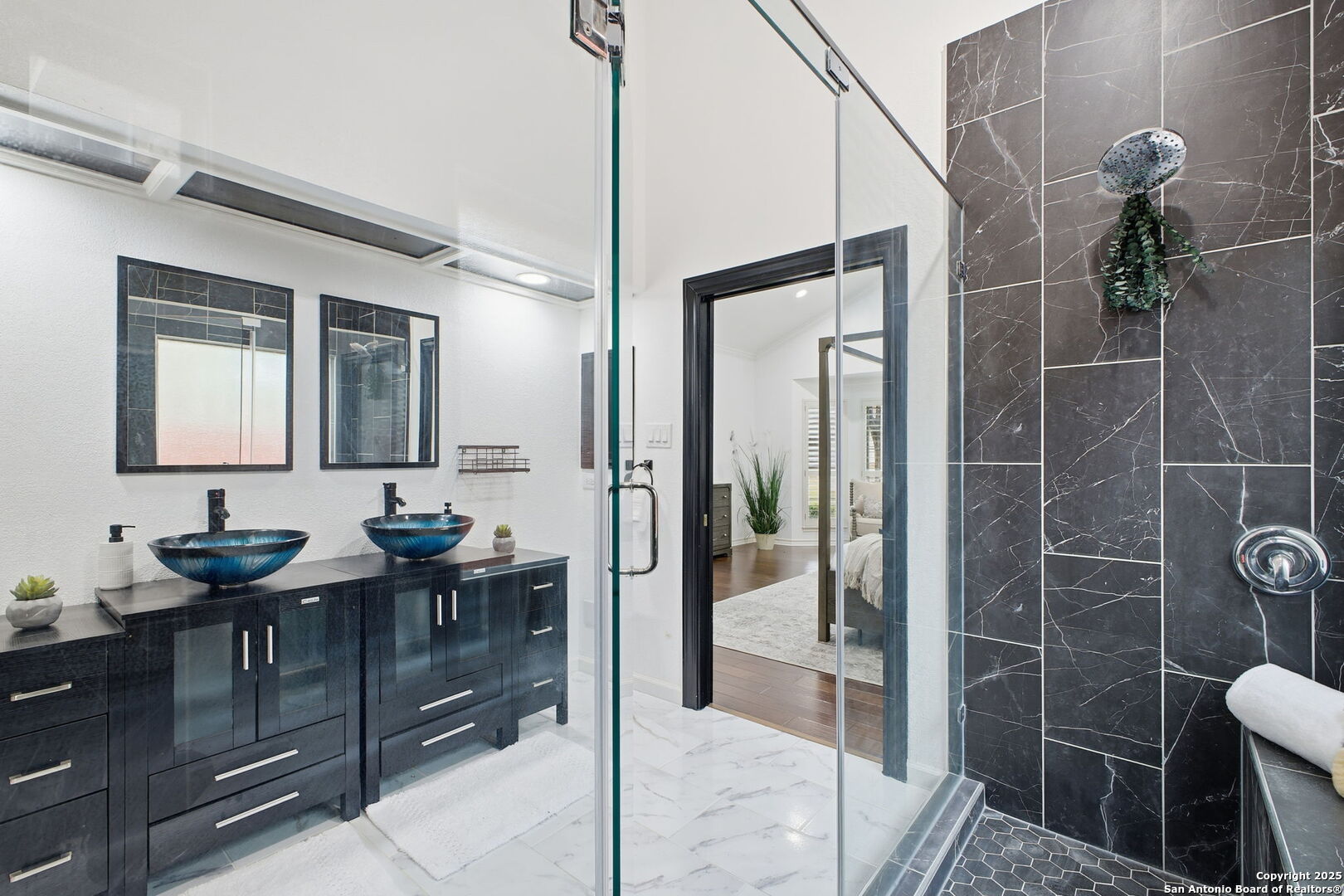Price Improvement on this Stunning Masterpiece!! Priced to Sell and Designed for gathering, entertaining, and unwinding - this impeccably remodeled Deerfield home captures the best of San Antonio living! Step inside to soaring ceilings, abundant natural light, and an open-concept floor plan. Fresh paint, new flooring, and statement wallpaper elevate this home with a curated, high-end aesthetic. The completely updated kitchen (2023) is a showstopper - featuring brand new cabinetry, a wine fridge, striking marble countertops, all-new stainless appliances, and an oversized island with seating. Plus, the coffee bar adds the perfect touch for your morning routine. The spacious living room impresses with floor-to-ceiling windows and a dramatic fireplace centerpiece, while the downstairs master suite offers a private retreat filled with sunlight and a cozy sitting area. The primary bathroom has been fully redesigned with a large walk-in shower with dual shower heads, dual vessel sinks, and modern finishes. Downstairs also includes a flexible second living area, game room (or could be used as the study or office space) complete with a wet bar - perfect for movie nights or entertaining guests. Upstairs, find additional spacious bedrooms and beautifully updated bathrooms. Step outside to your private backyard paradise - complete with a sparkling inground pool and hot tub, lush mature landscaping, a covered patio, and a full outdoor kitchen ideal for BBQs and gatherings. Tall trees surround the back fence for complete privacy - the perfect setting for poolside relaxation or hosting friends and family. The custom pergola and built-in seating area create the ultimate spot for relaxing or entertaining under the Texas sky. With new garage doors, an updated front walkway and driveway, and meticulous landscaping, this home offers true curb appeal and move-in-ready luxury in one of San Antonio's most desirable neighborhoods. Located in the amenity-rich Deerfield community near top-rated NEISD schools, shopping, and dining - this home is the perfect combination of elegance, comfort, and convenience.