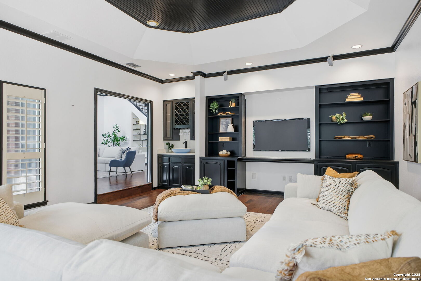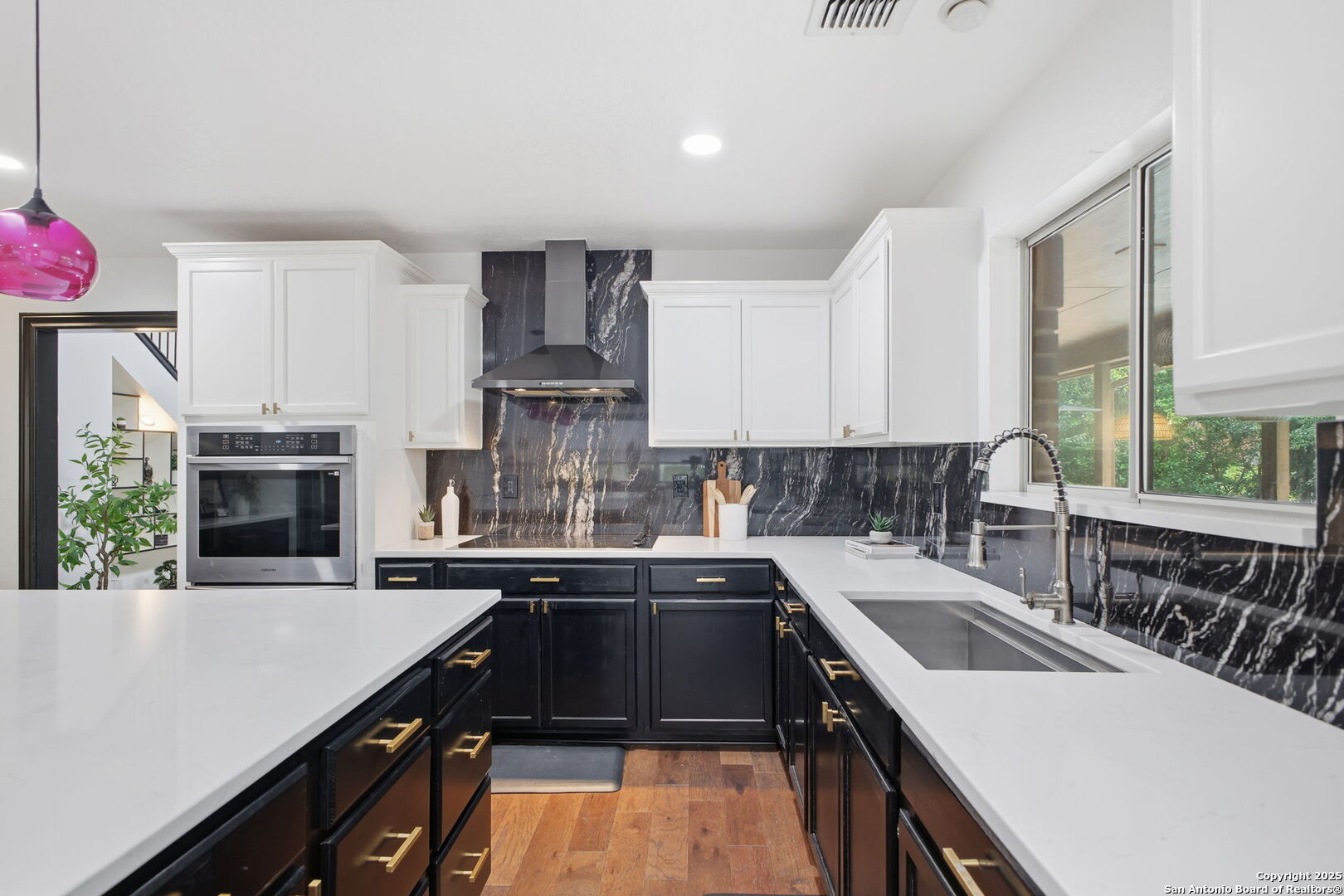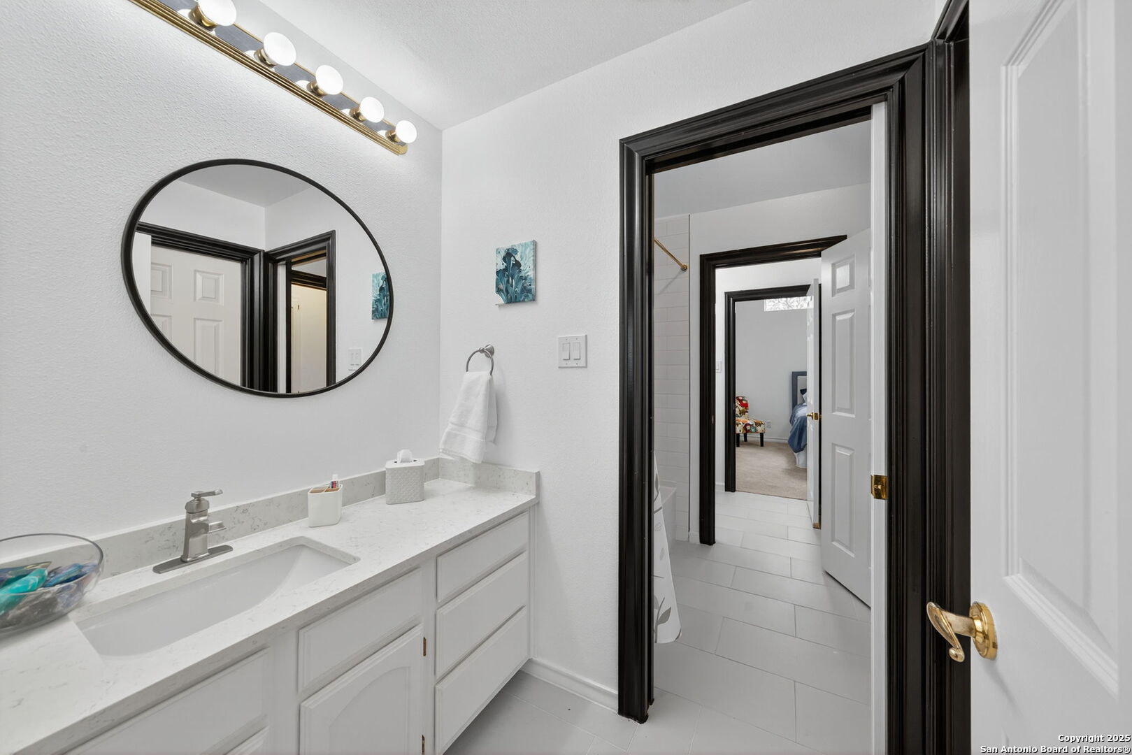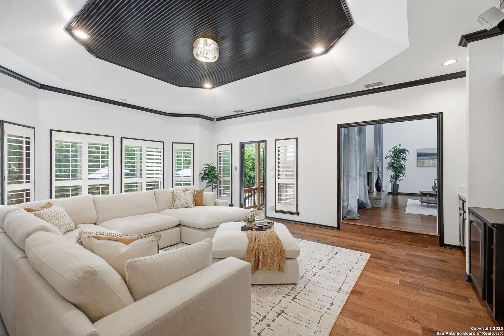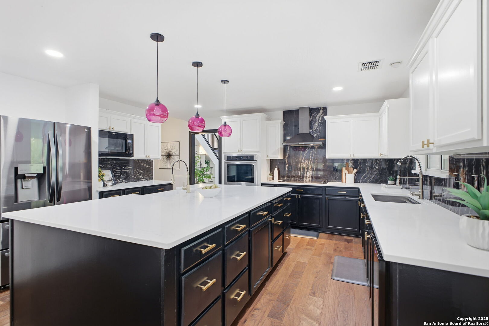 Price Improvement on this Stunning Masterpiece!! Priced to Sell and Designed for gathering, entertaining, and unwinding - this impeccably remodeled Deerfield home captures the best of San Antonio living! Step inside to soaring ceilings, abundant natural light, and an open-concept floor plan. Fresh paint, new flooring, and statement wallpaper elevate this home with a curated, high-end aesthetic. The completely updated kitchen (2023) is a showstopper - featuring brand new cabinetry, a wine fridge, striking marble countertops, all-new stainless appliances, and an oversized island with seating. Plus, the coffee bar adds the perfect touch for your morning routine. The spacious living room impresses with floor-to-ceiling windows and a dramatic fireplace centerpiece, while the downstairs master suite offers a private retreat filled with sunlight and a cozy sitting area. The primary bathroom has been fully redesigned with a large walk-in shower with dual shower heads, dual vessel sinks, and modern finishes. Downstairs also includes a flexible second living area, game room (or could be used as the study or office space) complete with a wet bar - perfect for movie nights or entertaining guests. Upstairs, find additional spacious bedrooms and beautifully updated bathrooms. Step outside to your private backyard paradise - complete with a sparkling inground pool and hot tub, lush mature landscaping, a covered patio, and a full outdoor kitchen ideal for BBQs and gatherings. Tall trees surround the back fence for complete privacy - the perfect setting for poolside relaxation or hosting friends and family. The custom pergola and built-in seating area create the ultimate spot for relaxing or entertaining under the Texas sky. With new garage doors, an updated front walkway and driveway, and meticulous landscaping, this home offers true curb appeal and move-in-ready luxury in one of San Antonio's most desirable neighborhoods. Located in the amenity-rich Deerfield community near top-rated NEISD schools, shopping, and dining - this home is the perfect combination of elegance, comfort, and convenience.