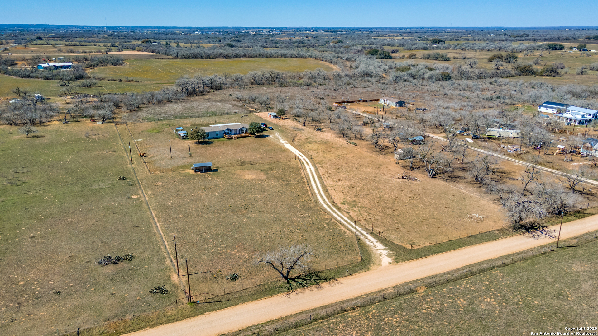 5 min. from Floresville! Beautiful open floor plan with and amazing deck for additional outdoor living space. The kitchen has ample storage with stainless steal appliances that convey! Also features an oversized island perfect for prepping dinner, hosting family style gatherings, or simply just a casual meal. Large bedrooms and an additional game room/ flex space for entertaining needs! No HOA, horses, chickens, etc., allowed, you can do so much on this acreage! Seller is highly motivated, let's make a deal!