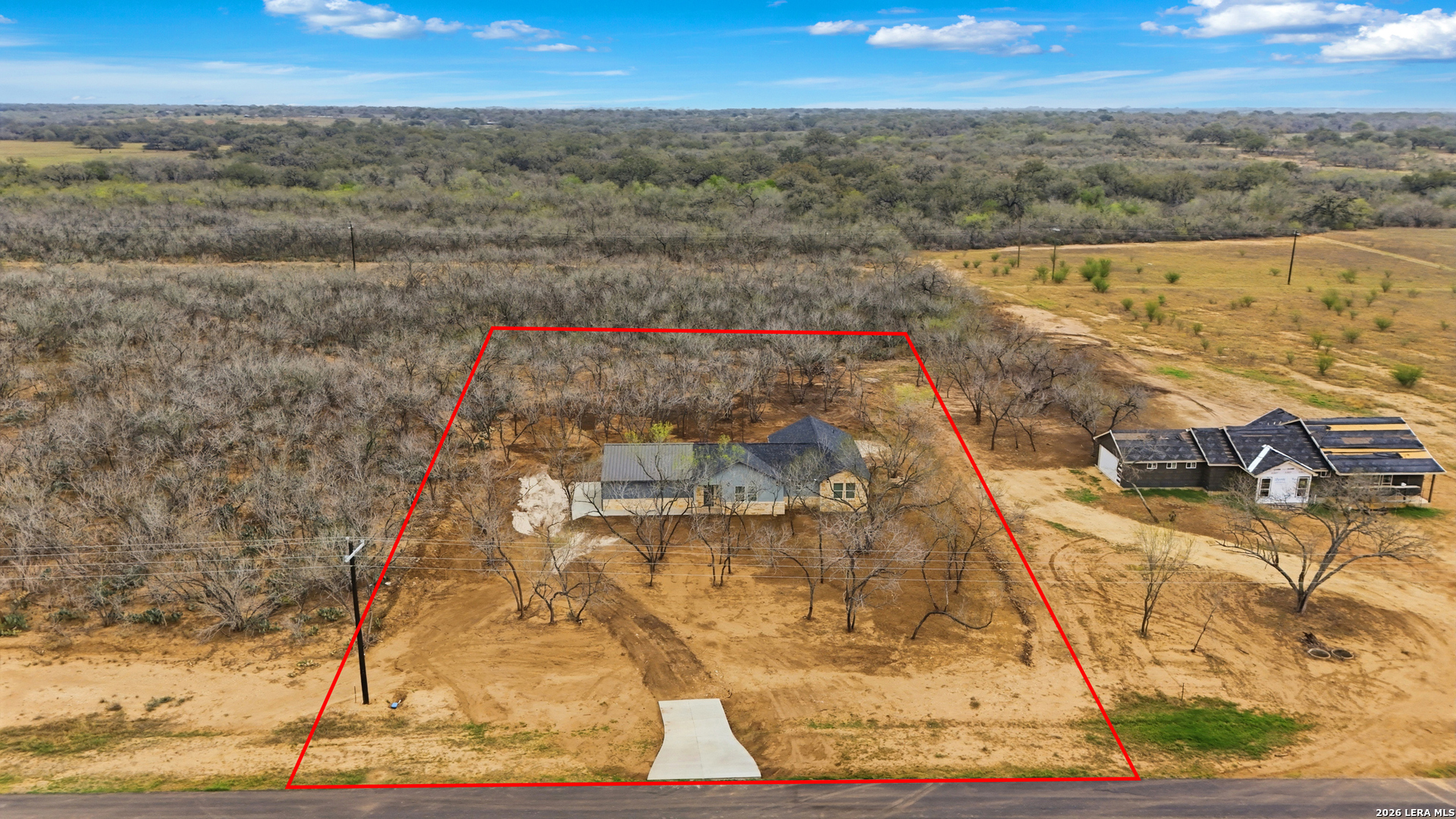 Welcome to 157 Sylas Hayes Loop in Pleasanton, Texas. A stunning brand new build offering the perfect balance of modern comfort and wide open Texas space. Situated on 1.04 acres, this beautiful 3 bedroom, 2 bath home with 1,680 sqft. was thoughtfully designed to make you feel right at home the moment you walk through the door. The open floor plan and 12-foot ceilings in the living room create an airy, spacious atmosphere, while 9 foot ceilings throughout the rest of the home add to the overall sense of openness. The stained concrete floors bring together a blend of modern luxury and farmhouse charm, creating a stylish yet durable foundation perfect for everyday living. The living area features a built-in fireplace mantel, adding warmth and a beautiful focal point to the heart of the home. Step outside to enjoy a large backyard slab, ideal for outdoor entertaining, family gatherings, or creating your dream backyard retreat. With over an acre of land, the possibilities are endless. build a workshop, mother-in-law suite, pool with a pool house, or simply enjoy the extra space for work trucks, trailers, or recreational toys. The home also features oversized side parking, providing plenty of room for multiple vehicles. The spacious front yard offers a blank canvas to design your dream landscaping and create incredible curb appeal. Located just approximately 30 minutes from South Loop 410 in San Antonio, this property offers the peace and privacy of country living while still providing easy access to the city for work, dining, shopping, and entertainment. If you're looking for a brand new home with land, modern features, and room to grow, this Pleasanton property is ready to welcome you home. OPEN HOUSE THIS SATURDAY 03/14/2026 12PM-3PM