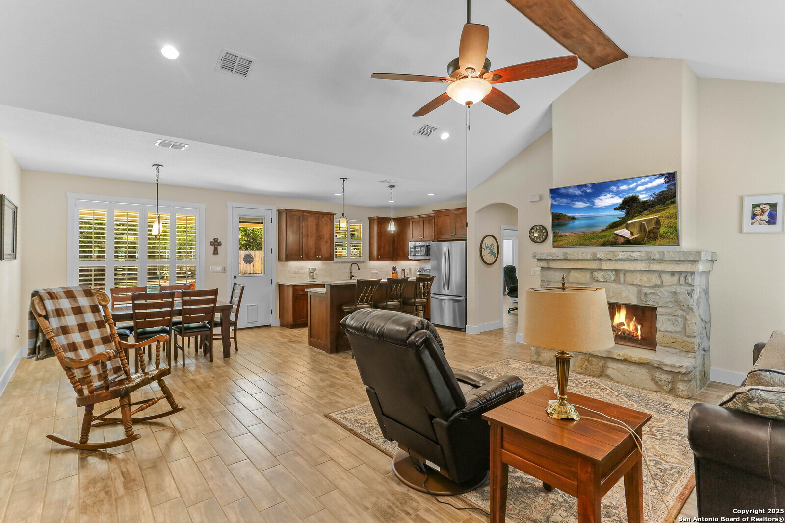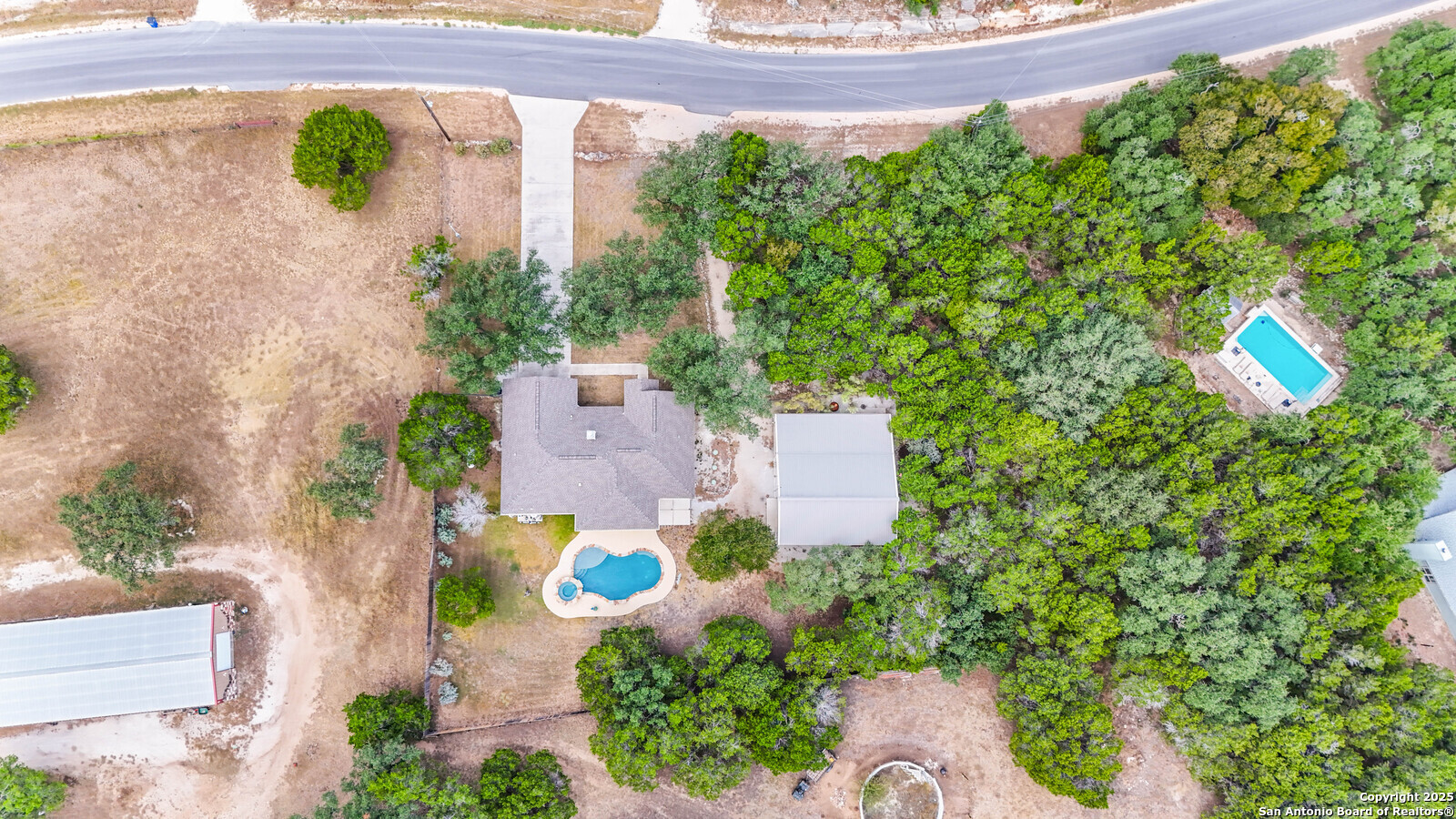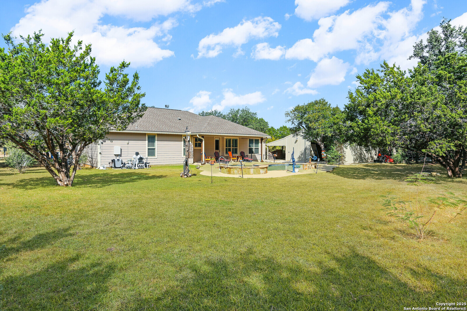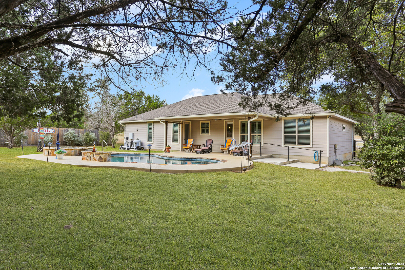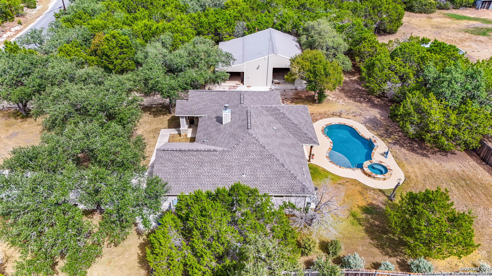 Built to entertain and built to last. Enjoy an open 3/2 layout on .97 acres with mature trees and privacy. The open floor plan, plantation shutters and fireplace add to the cozy feel of this home. Out back, a covered patio overlooks a sparkling pool and elevated spa. The 1,200-sq-ft shop with half bath and an additional 600-sq-ft covered porch adds serious flex space for hobbies, storage, or RV/boat gear. And the location seals it: under a mile to groceries, dining, and Canyon Lake fun.