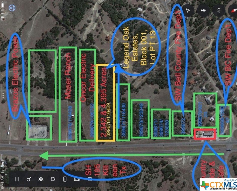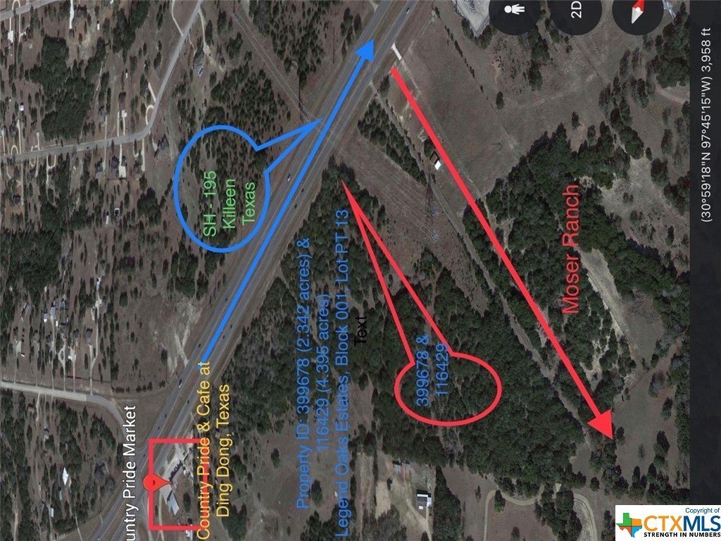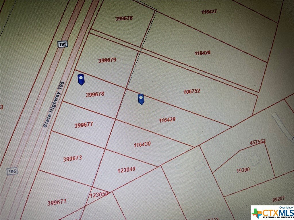 The sale includes 2 lots with property ID's 116429 4.39 acres and 399678 2.34 acres, a total of 6.74 acres, 294' feet frontage on busy Hwy SH-195 N in Killeen. The front 2.34 acres lie within the city limits and are subject to restrictions, while the back 4.4 acres are unrestricted and suitable for commercial use. The possibilities are endless.