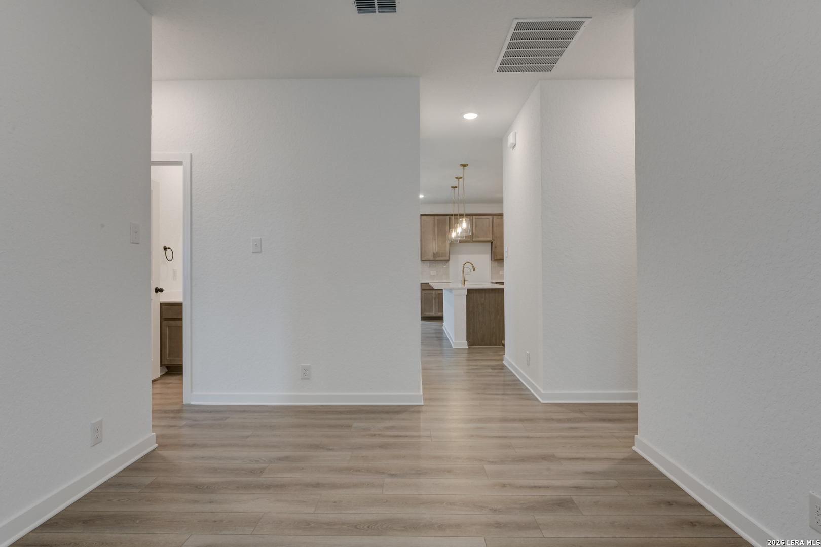 Step into this thoughtfully designed one-story home where comfort, style, and functionality come together in perfect harmony. Natural light pours through oversized windows, highlighting the open-concept layout that connects the gourmet kitchen, breakfast area, and spacious family room. The kitchen is the heart of the home, featuring a large center island ideal for casual dining or entertaining, a walk-in pantry for ample storage, and designer finishes that elevate every meal, from busy weekday breakfasts to relaxed weekend gatherings. The family room is bright and welcoming, with three expansive windows framing views of the covered patio, making it the perfect spot to enjoy morning coffee, unwind in the evening, or host friends and family outdoors. The private primary suite offers a true retreat with a spa-inspired bath, dual vanities, an oversized shower, and a generous walk-in closet designed to keep everything beautifully organized. Between the two secondary bedrooms, a versatile sitting room provides a space for a study nook, creative projects, or a play area, adaptable to your family's needs as they grow. Thoughtful design extends to every detail of the home, from the balance between shared and private spaces to the flow of natural light throughout. Whether enjoying quiet evenings at home, entertaining guests, or simply appreciating the elegant finishes and thoughtful layout, this home blends comfort, sophistication, and functionality in a way that enhances every aspect of daily life. This home is part of our Laguna Collection-inspired by wide horizons and slow, easy days. Sun-bleached neutrals blend with earthy textures to create a space that feels open, airy, and beautifully relaxed. Modern simplicity finds harmony in nature-inspired elements, giving you a home where time stretches out, and everyday life feels just a little more serene. This home is located in Nopal Valley, a welcoming community in West San Antonio. Spacious homesites offer room for outdoor living, and the neighborhood will feature a pool, pavilion, and playground for family fun and relaxation. Inside, the home is thoughtfully designed with open layouts perfect for entertaining or enjoying quiet moments. With convenient access to shopping, dining, Medina Valley ISD schools, and Lackland Air Force Base, it combines modern comfort and functional design in an ideal location.