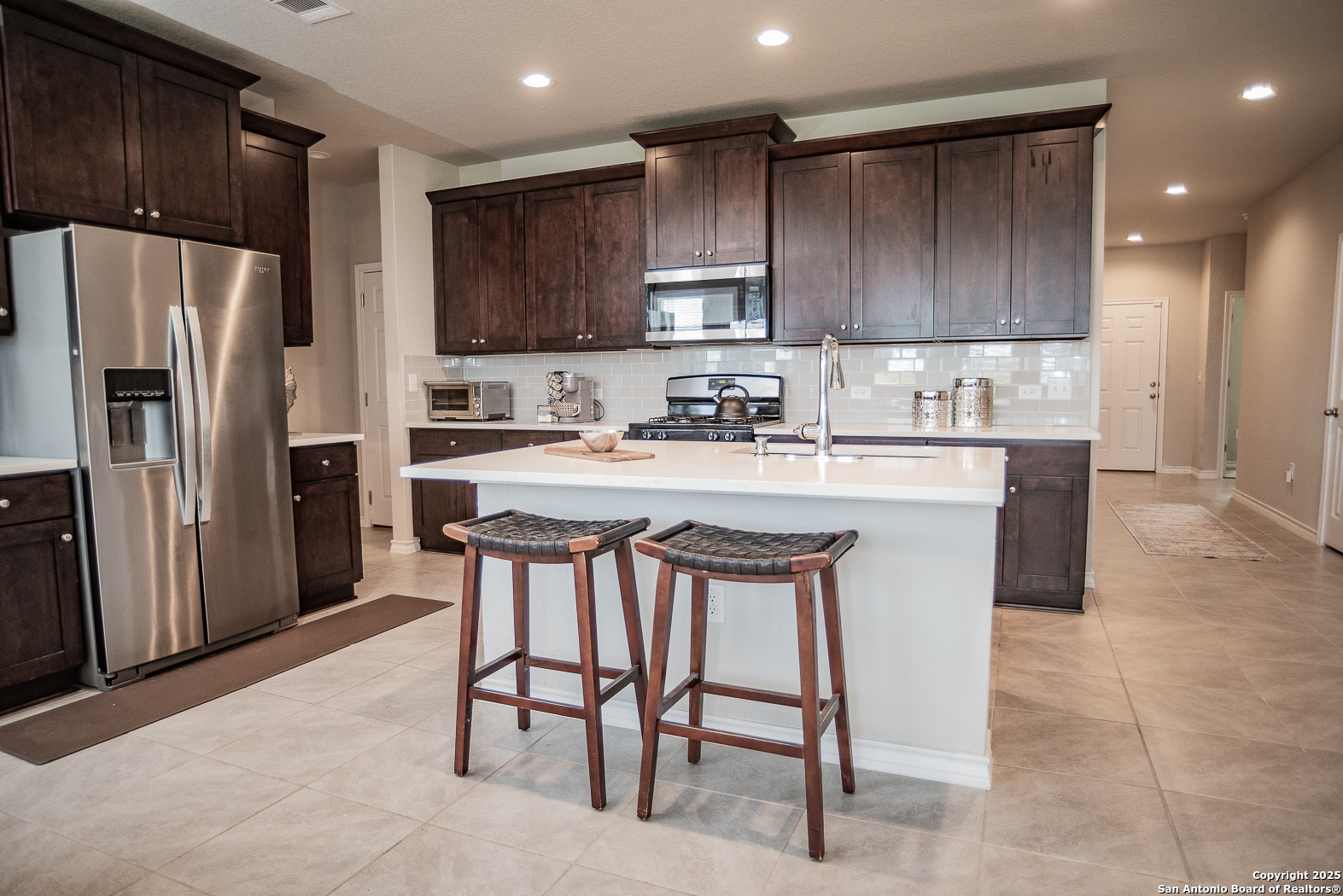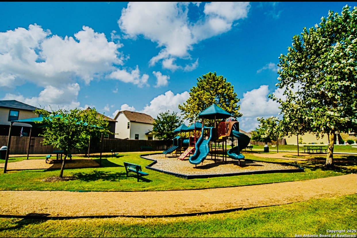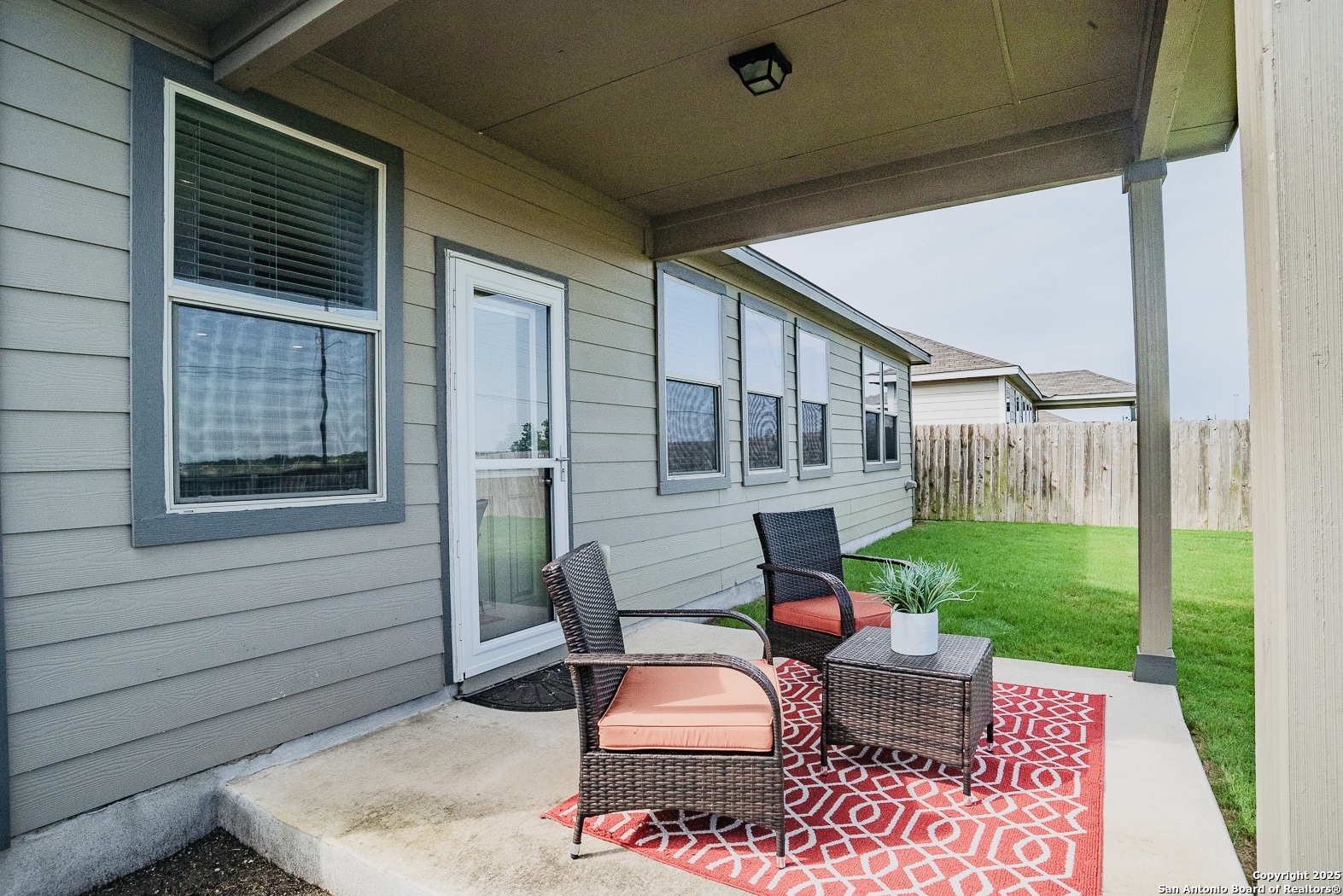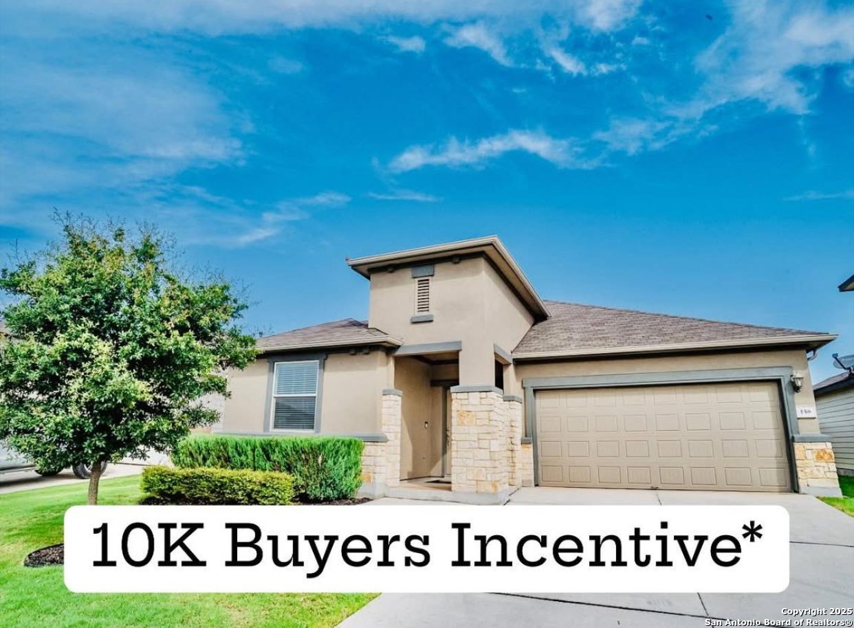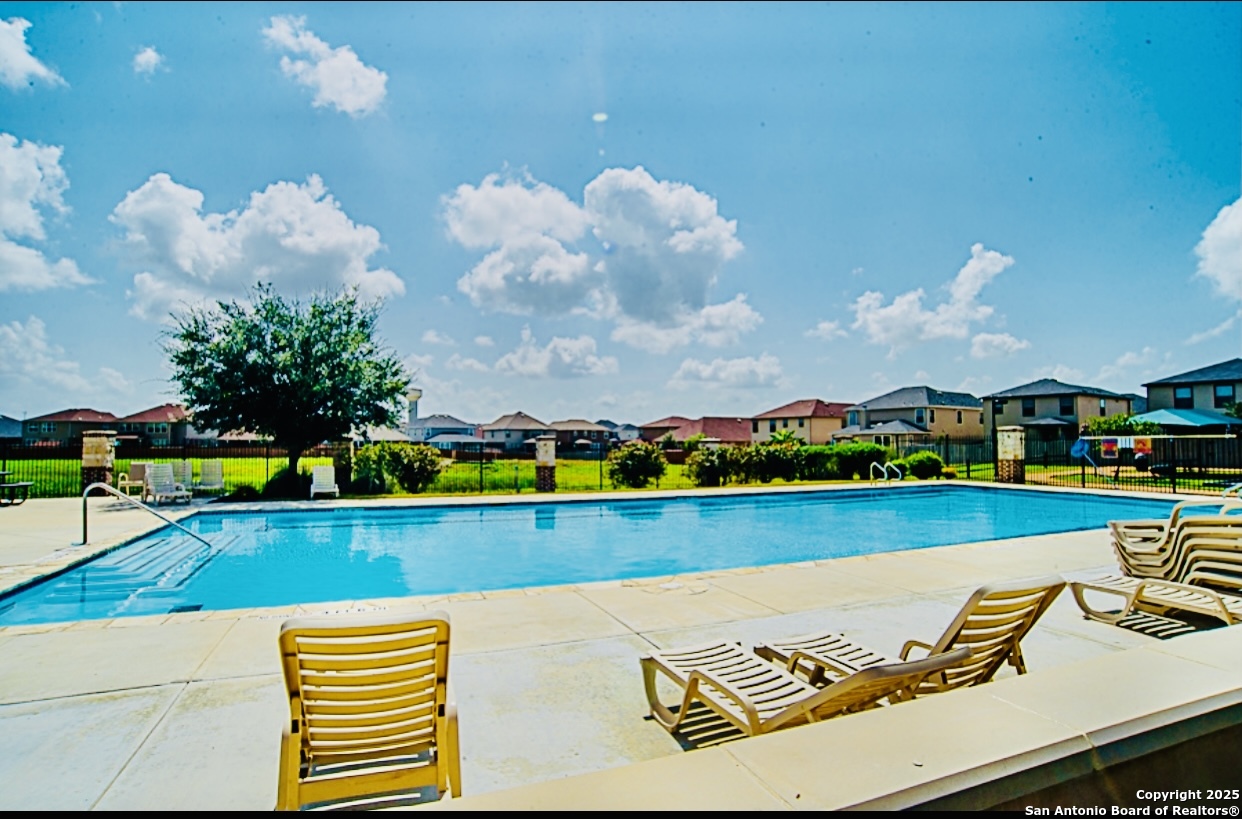 Move-In Ready with $10K Incentive! Beautiful one-story home near the new Long Creek High School in New Braunfels, conveniently located off Klein Rd and FM 1044. This 3-bedroom, 2-bath home features an open-concept layout with high-end upgrades: quartz countertops, custom soft-close cabinetry, high ceilings, abundant natural light, stainless steel refrigerator plus natural gas for cooking, heating and hot water heater. The spacious primary suite includes a super shower, dual vanities and linen closet. Enjoy outdoor living with a covered patio, tall privacy fence, and sprinkler system. Smart home features include a Nest thermostat, Ring alarm & camera and HVAC with UV light and media filter for enhanced air quality. Water softner loop in place. One-owner home, less than 7 years old, with extended roof warranty. Community pool, playground and covered spaces. Located in New Braunfels with the low taxes of Guadalupe County. Easy access to San Antonio, San, Marcos and Austin. Don't miss this turnkey opportunity!