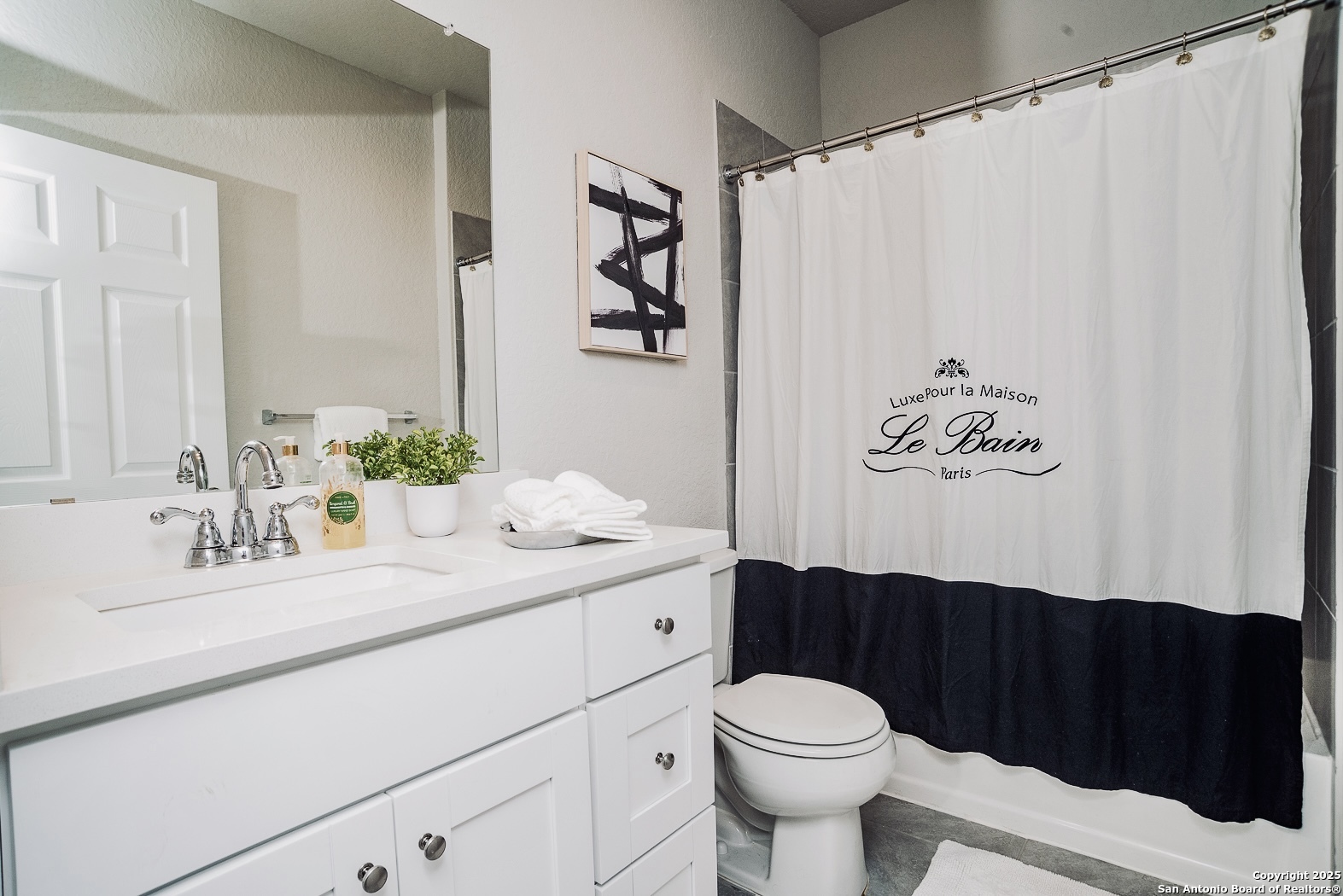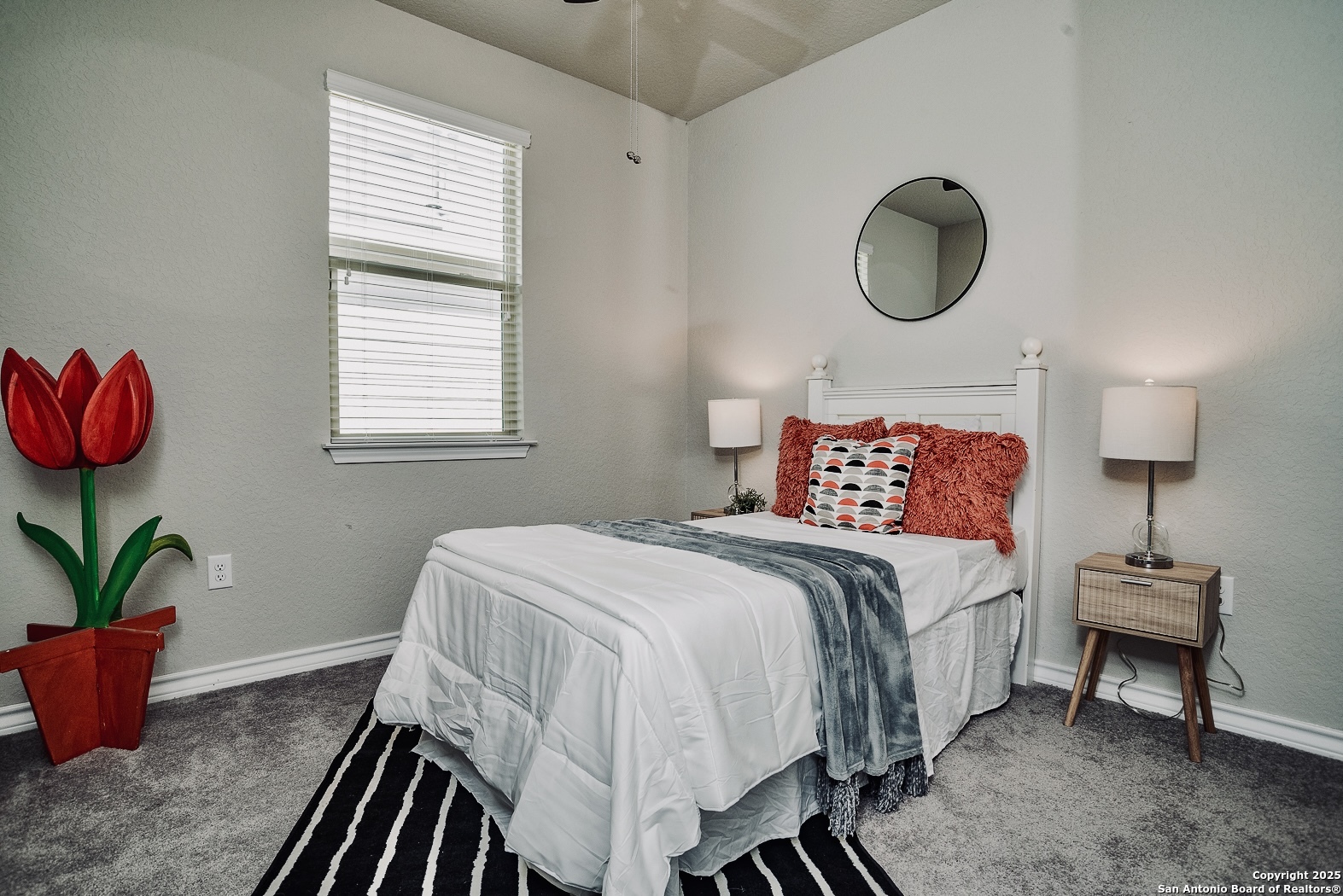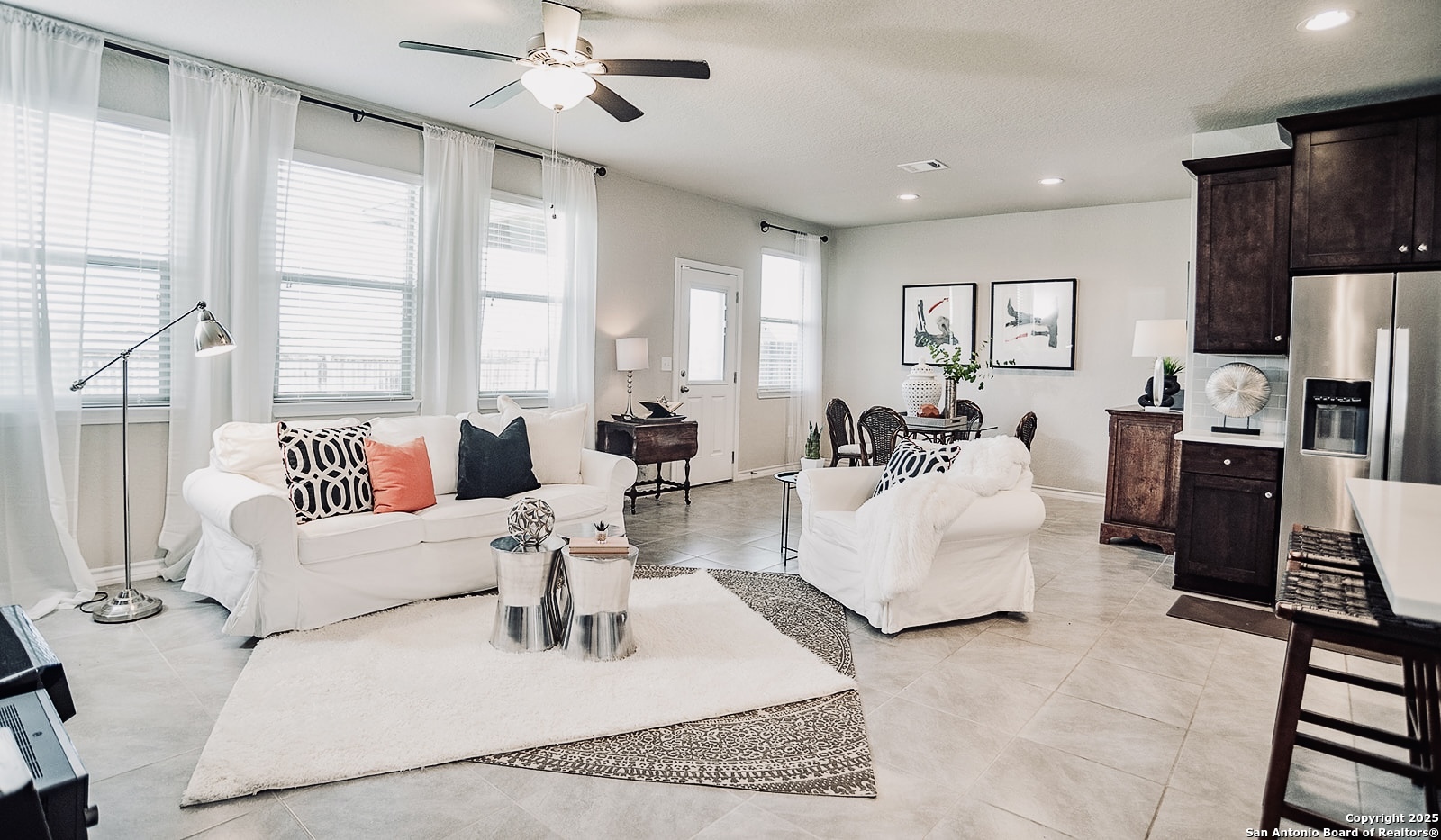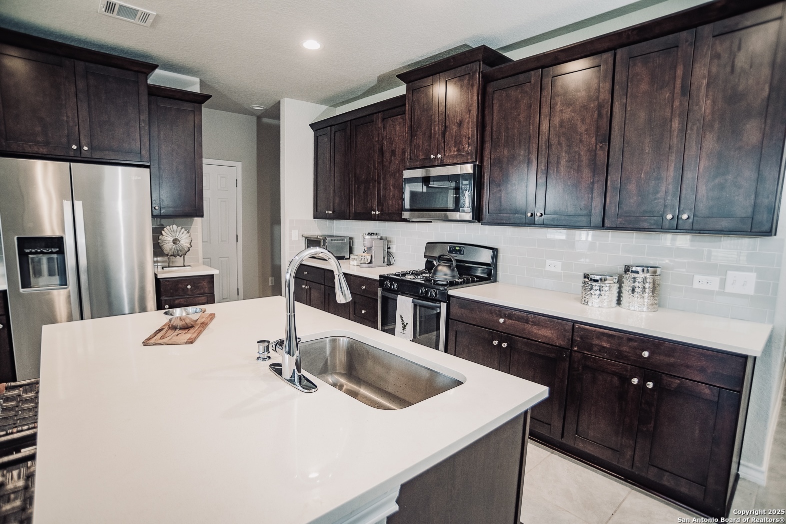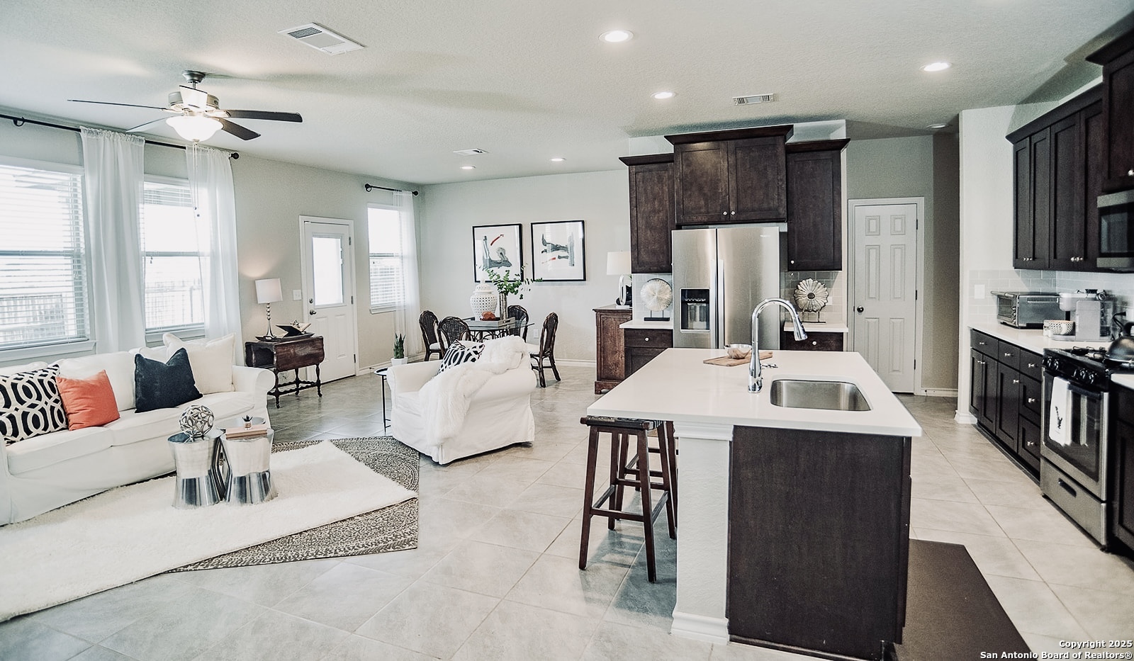 Move-In Ready with $10K Incentive! Beautiful one-story home near the new Long Creek High School in New Braunfels, conveniently located off Klein Rd and FM 1044. This 3-bedroom, 2-bath home features an open-concept layout with high-end upgrades: quartz countertops, custom soft-close cabinetry, high ceilings, abundant natural light, stainless steel refrigerator plus natural gas for cooking, heating and hot water heater. The spacious primary suite includes a super shower, dual vanities and linen closet. Enjoy outdoor living with a covered patio, tall privacy fence, and sprinkler system. Smart home features include a Nest thermostat, Ring alarm & camera and HVAC with UV light and media filter for enhanced air quality. Water softner loop in place. One-owner home, less than 7 years old, with extended roof warranty. Community pool, playground and covered spaces. Located in New Braunfels with the low taxes of Guadalupe County. Easy access to San Antonio, San, Marcos and Austin. Don't miss this turnkey opportunity!