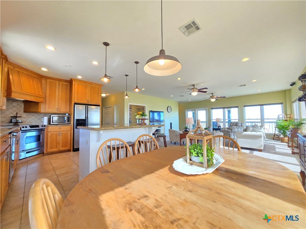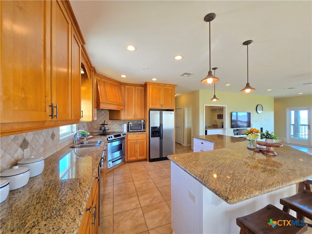 Welcome to 1588 W Bayshore Dr, an exceptional coastal retreat in the gated community of Cape Carancahua. Nestled on two premium south-facing waterfront lots, this spacious home showcases breathtaking bay views and vibrant sunsets through near floor-to-ceiling windows. The gourmet kitchen boasts custom cabinetry, granite counters, and a large island perfect for entertaining. The primary suite offers an ensuite bath, walk-in closet, and bay views, while a loft provides flexible guest or recreation space. The garage includes a second kitchen and half bath for seamless indoor-outdoor gatherings, plus an outdoor shower for post-bay refresh. Enjoy community amenities including pools, boat ramps, fishing piers, playground, and security gate—all enhancing the relaxed coastal lifestyle. Located between Palacios and Port Lavaca, you're near shopping, dining, beaches and coastal entertainment.