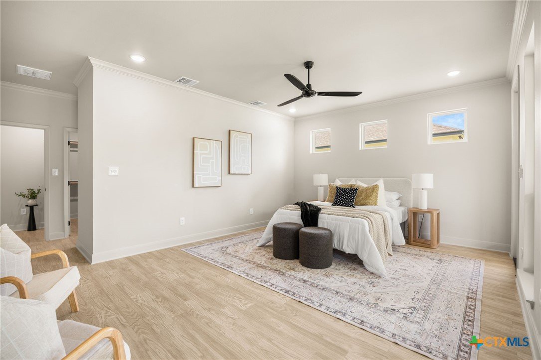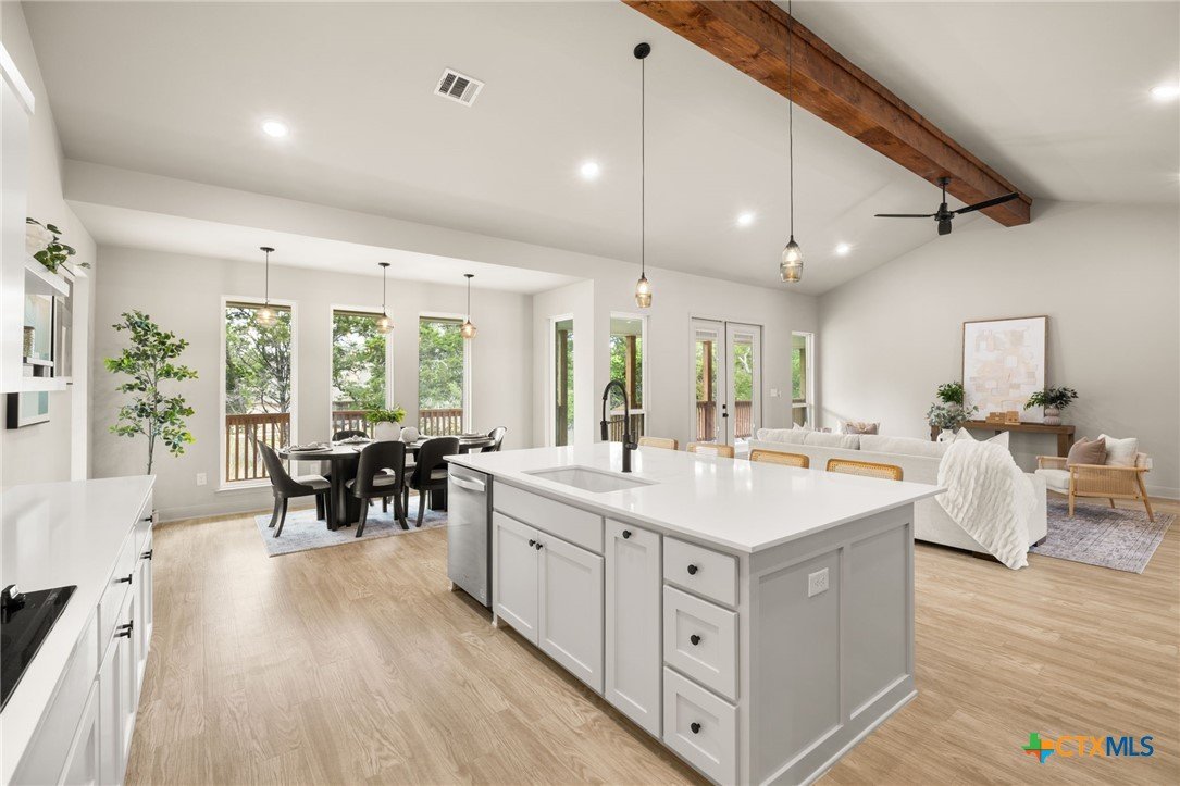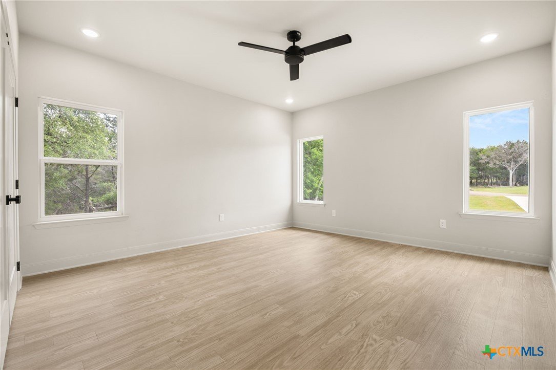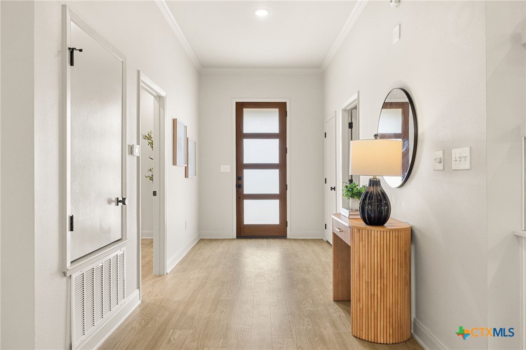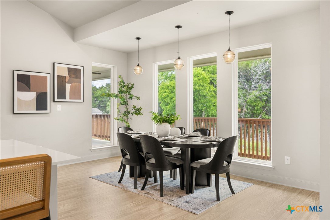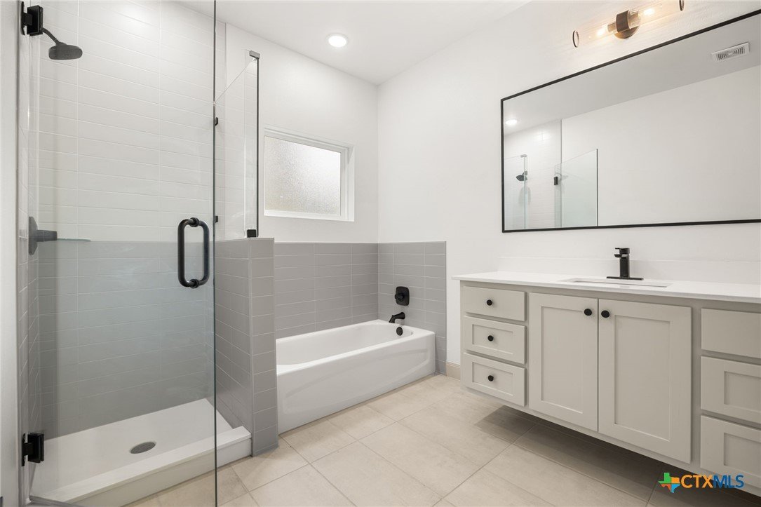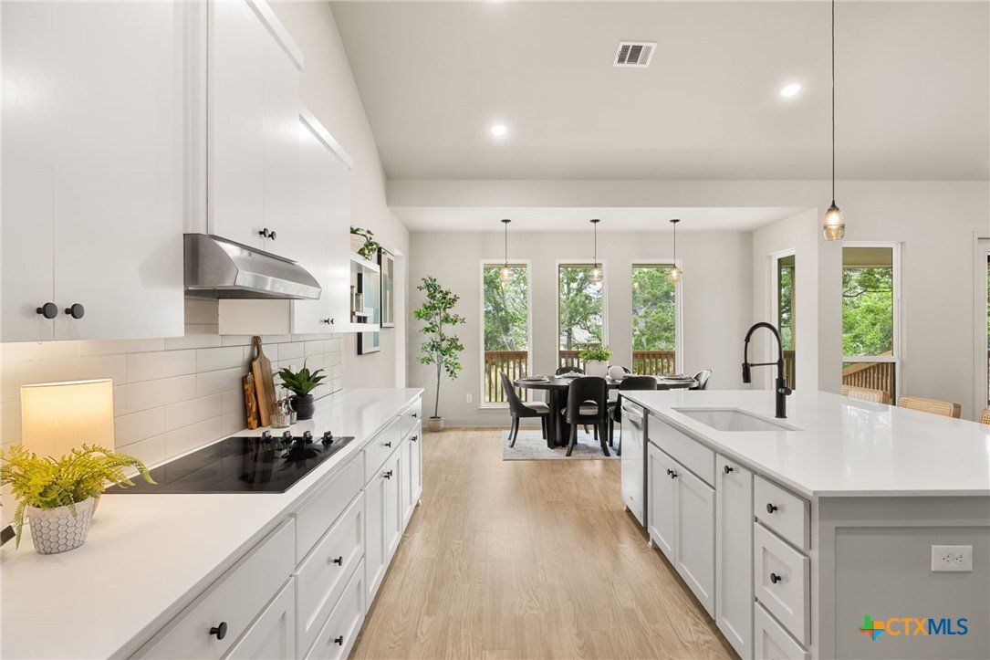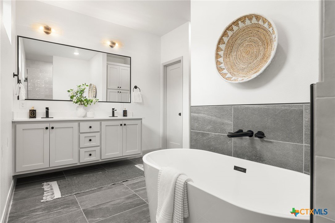 Welcome to this stunning home nestled inside a gated community with top-tier amenities including a neighborhood pool, playground, and a scenic trail leading to the lake—all with the added benefit of no city taxes. With over 2,700 square feet of living space, this 4-bedroom, 2.5-bath property offers a perfect mix of modern design and everyday comfort. The exterior showcases a beautiful blend of stone and Hardie siding, creating standout curb appeal. Inside, the home features an airy, open layout filled with natural light and finished with durable luxury vinyl plank flooring throughout—no carpet in sight. The kitchen is designed to impress with custom cabinetry, quartz countertops, a stylish matte-toned backsplash, and stainless steel Whirlpool appliances. The adjoining dining area is enhanced by modern three-pendant lighting, creating a sleek and inviting space for everyday meals or entertaining. Additional features include a large walk-in pantry, a spacious laundry room with a utility sink, and a 2-car garage that offers extra room for a workshop or storage. The primary suite provides a quiet escape with private access to the back patio. The ensuite bathroom includes dual vanities, a soaking tub, and a beautifully tiled walk-in shower for a spa-like feel. Situated on a spacious lot, the backyard offers plenty of room to relax, entertain, or create your ideal outdoor setup. This move-in ready home delivers style, function, and valuable savings with no city taxes—all in a great Temple location.