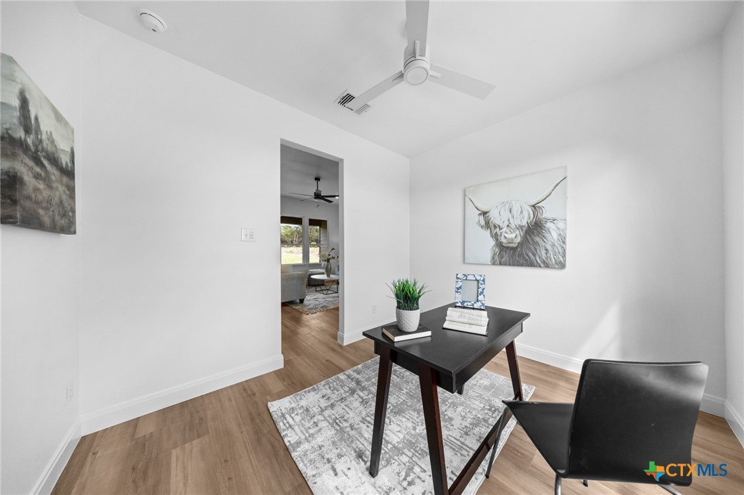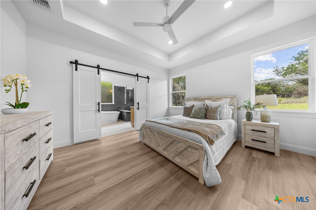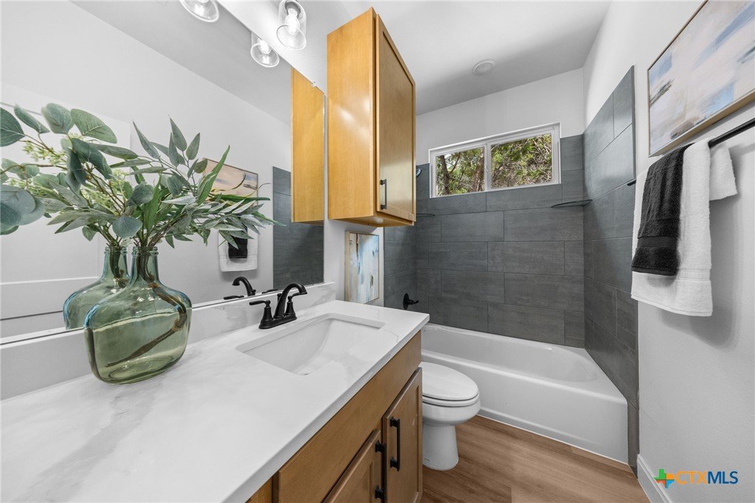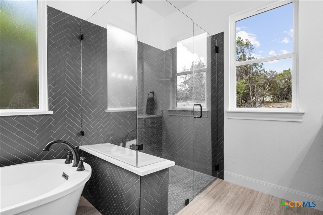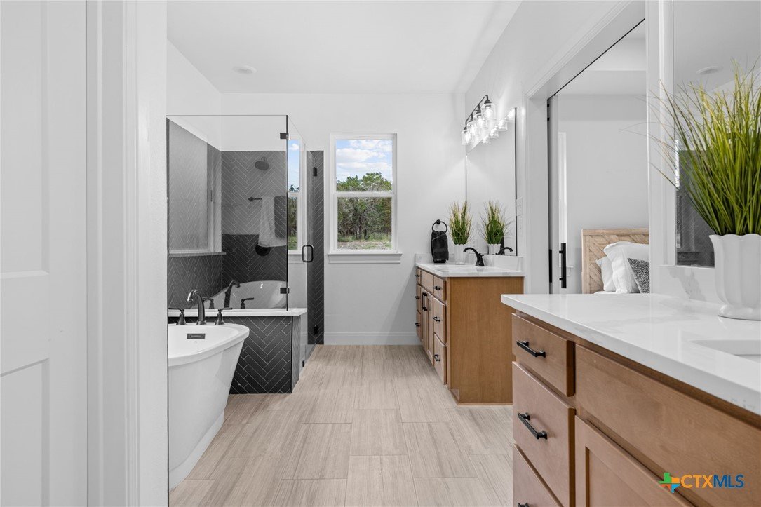 Stunning New Construction in Gated Tanglewood- Minutes from Lake Belton! Experience lakeside living in this beautifully crafted 4-bedroom home located in the highly sought-after, gated community of Tanglewood. Situated just outside city limits for lower property taxes and zoned to the top-rated Lake Belton ISD, this home blends modern comfort with peaceful surroundings. Designed with both style and function in mind, this home features luxury vinyl plank flooring, quartz countertops, spray foam insulation, and energy-efficient appliances throughout. The gourmet kitchen is a showstopper with an oversized pantry and a sleek countersplash design, where the quartz countertop seamlessly extends up the wall for a clean, contemporary look. The home features three bedrooms with the fourth to be utilized as an in-home office. Set on a wooded lot, enjoy tranquil views from the spacious covered back patio, complete with recessed lighting—perfect for relaxing evenings or entertaining guests. The yard will be fully finished with fresh sod, professional landscaping, and a sprinkler system in both the front and back. And if you’d like the backyard fully enclosed, a fence can be installed prior to closing for your convenience. The primary suite is a true retreat, offering split vanities, a zero-entry walk-in shower, a soaking garden tub, and a large walk-in closet. As a resident of Tanglewood, you'll enjoy access to fantastic community amenities including a clubhouse, pool, playground, and a private walking trail to Lake Belton plus a full calendar of neighborhood events and gatherings. Don’t miss this opportunity to own a beautiful new home in one of the area's most desirable lake communities. Book your private tour today!