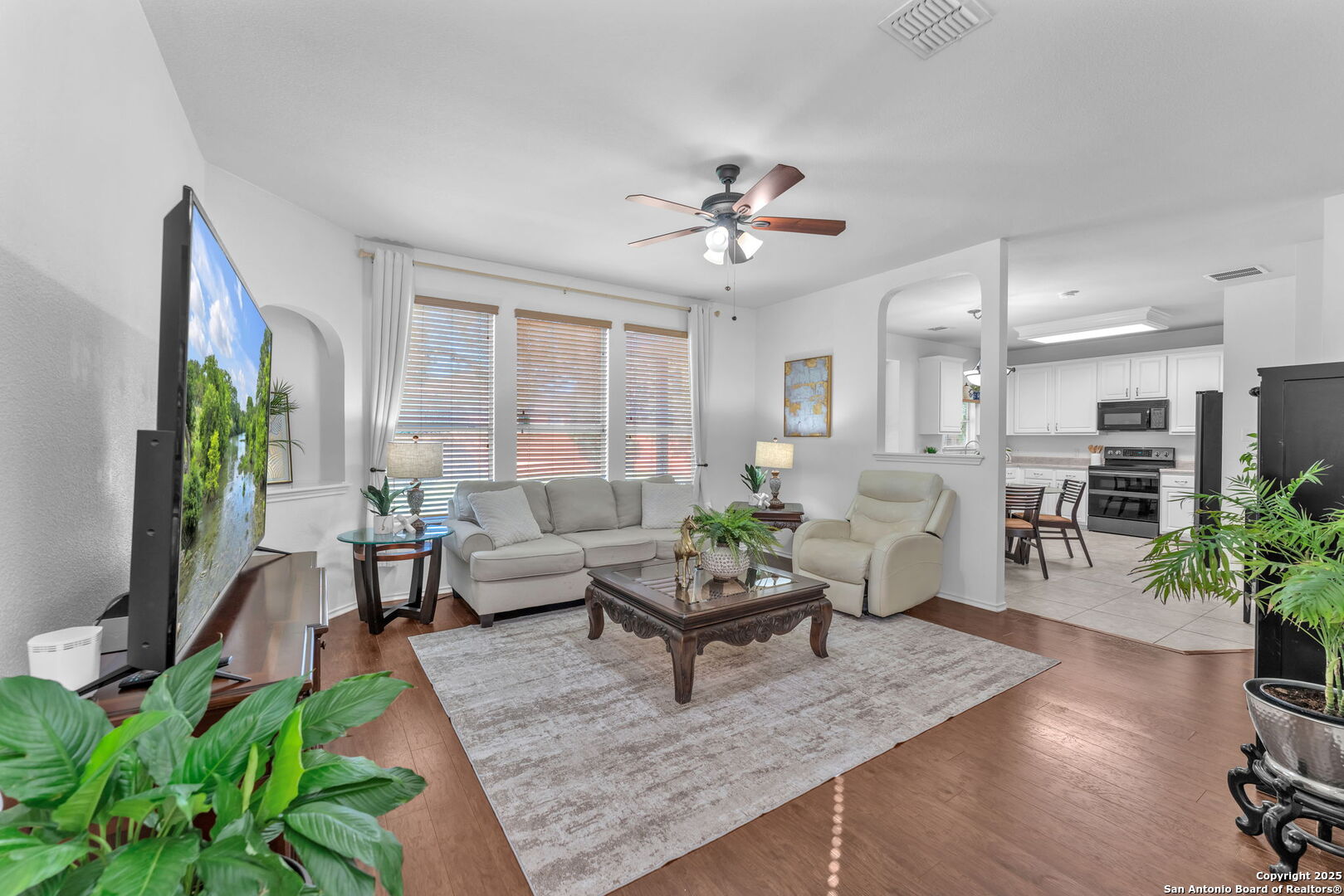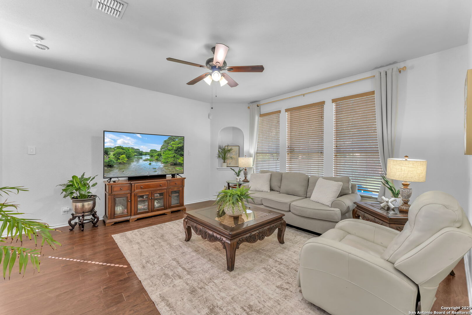 Welcome to this well-maintained and move-in ready two-story home located in the heart of the highly desirable Steubing Ranch neighborhood. Featuring 3 spacious bedrooms, 2.5 bathrooms, and a versatile layout, this home offers the perfect combination of comfort, style, and functionality for today's modern living. Upon entry, you'll notice the inviting flow of upgraded flooring throughout the main living areas. To the right, a separate formal dining room provides an elegant space for hosting dinner parties, family gatherings, or could easily serve as a home office or flex room. The open-concept kitchen is designed for both everyday living and entertaining, featuring freshly painted cabinets, ample storage and a large walk in pantry. Upstairs, all bedrooms are privately tucked away, including the generous primary suite with a double vanity, separate walk-in shower, and a large garden tub-your own spa-like retreat. A spacious game room adds additional flexibility for a media room, kids' play area, or home gym. Step outside and enjoy the oversized backyard with mature trees offering shade and privacy. The covered patio is perfect for weekend BBQs, morning coffee, or relaxing evenings. This home is just minutes from top-rated schools, parks, walking trails, major highways, shopping, and dining. Don't miss your chance to call this wonderful property home-schedule your private tour today!