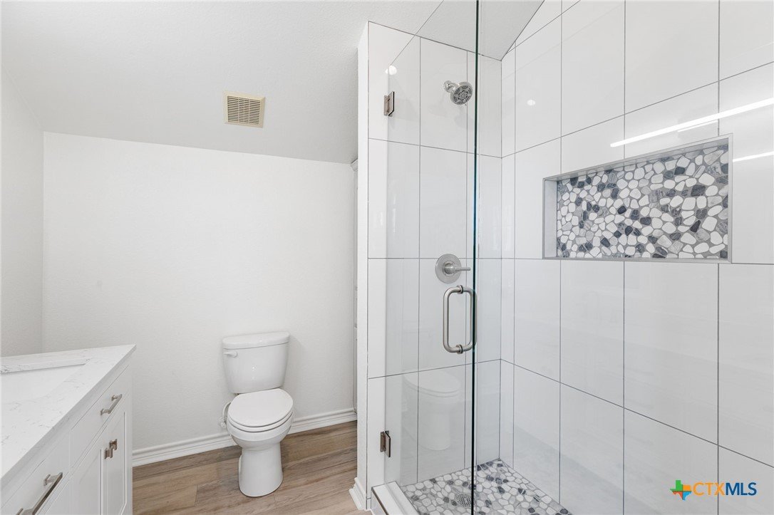 Lake view & lake access. This fully renovated home has a million dollar lake view with a large two tiered deck. This home has a view from every room in the house. A third bedroom and a flex room was added during the renovations. The large deck overlooks the lake and is large enough to host family gatherings yet intimate enough for cozy evenings at home, this area will become your second living area. While being located on the lake shopping and city convinces are within 15 minutes.