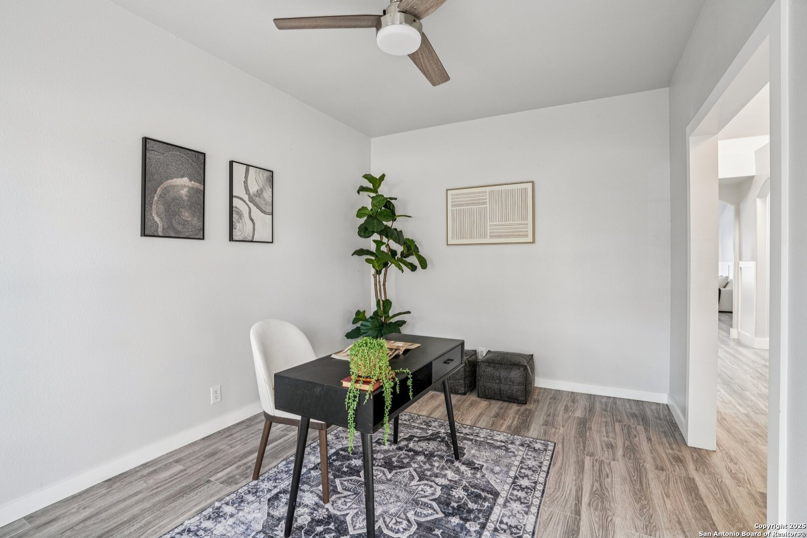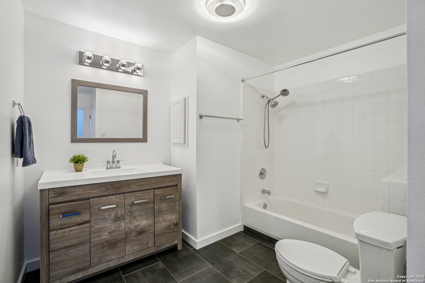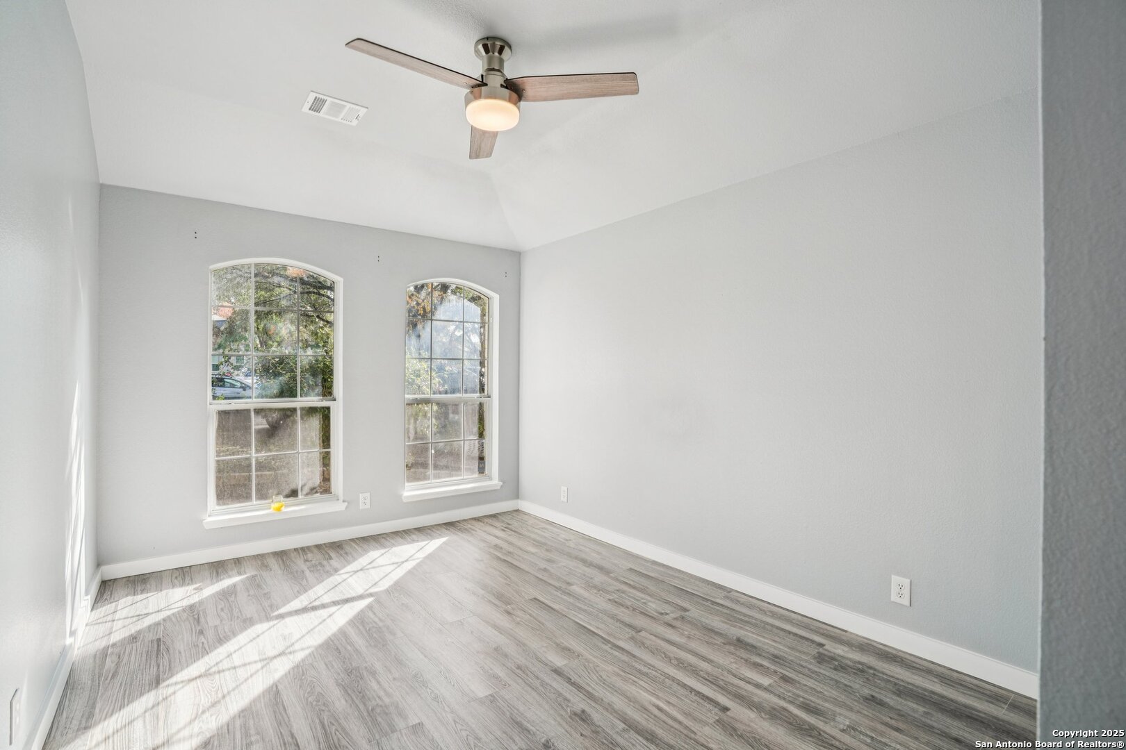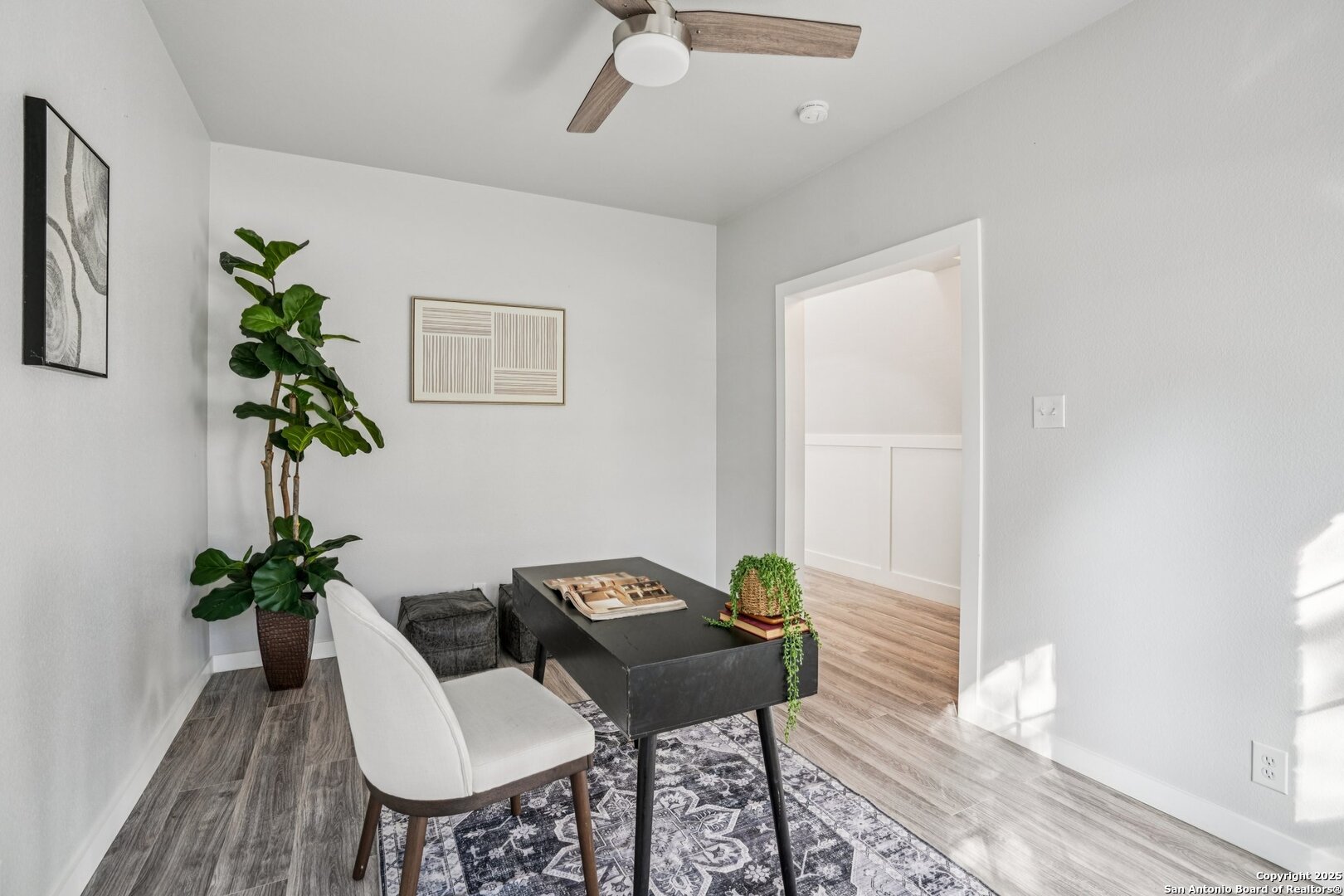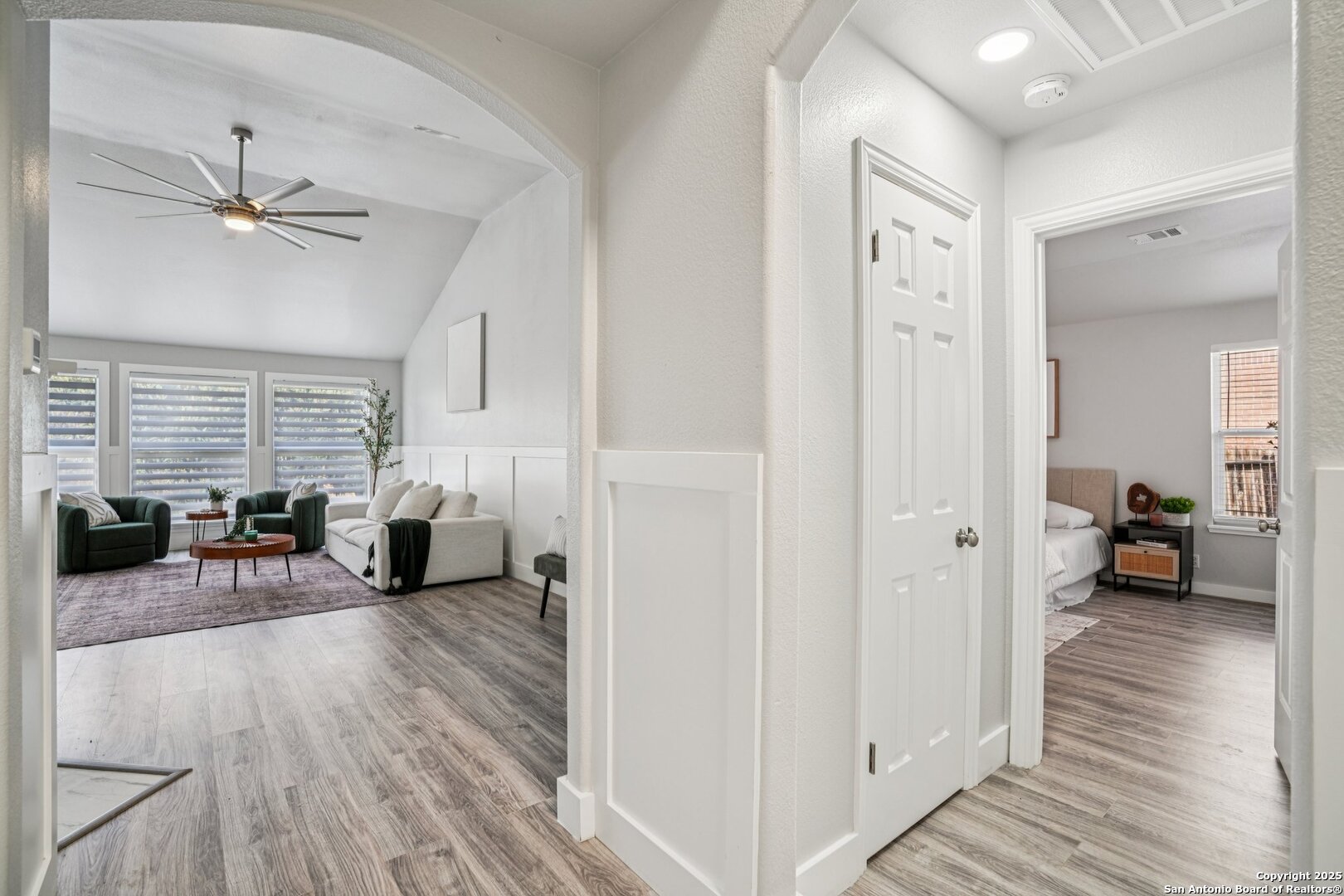 Located in the desirable Greenshire neighborhood, this beautifully renovated home offers a comfortable blend of classic character and modern updates. The light-filled interior features wainscoting accents, a welcoming fireplace, and a functional layout designed for everyday living. The updated kitchen includes sleek countertops, stainless steel appliances, and a spacious walk-in pantry, making it ideal for both cooking and entertaining. The primary suite provides a private retreat with a garden tub, separate shower, and ample closet space. Outside, enjoy a peaceful setting on the private patio overlooking an oversized lot with mature trees. Conveniently located near shopping, dining, major highways, and Randolph AFB, this home delivers comfort, style, and a prime location in one of Schertz's most established communities.