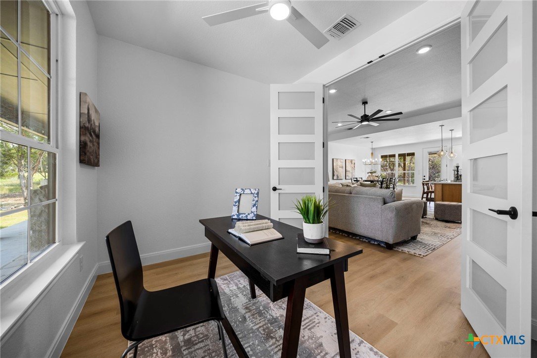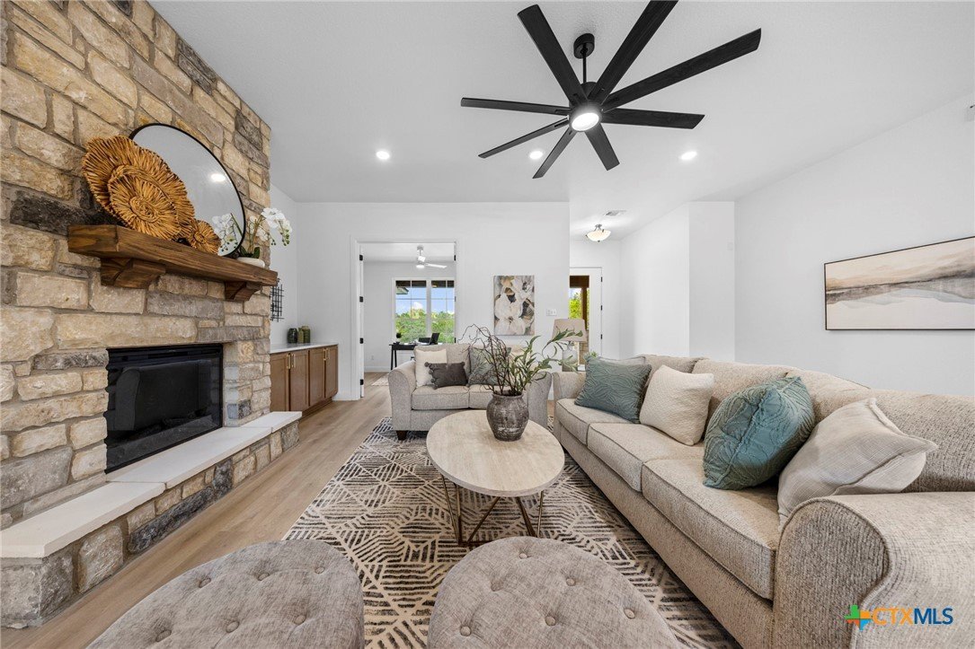 New Construction in Gated Tanglewood- Steps from Lake Belton! The adjacent wooded lot of nearly 1/3 acre, offered by the same seller, is also available with this home so you can add your own shop, garage, storage etc.! Nestled in the desirable Tanglewood community, this brand-new 3-bedroom residence with a private office combines thoughtful design, modern finishes, and the tranquility of lakeside living. Located outside city limits for lower taxes and zoned to Lake Belton ISD, it’s the perfect balance of convenience and lifestyle. Inside, you’ll find carefully selected details including quartz countertops, marble herringbone backsplash, luxury vinyl plank flooring, spray-foam insulation, and an electric fireplace. Outdoor living is just as inviting with both a large covered front porch and a spacious back patio. Ideal for relaxing or entertaining. The primary suite was designed as a personal retreat, showcasing a tray ceiling, split vanities, a zero-entry walk-in shower, and an expansive walk-in closet. Fence can be added if buyer wants a fence installed prior to closing! Life in Tanglewood means more than just a beautiful home; you’ll have access to a clubhouse, pool, playground, private walking trail to Lake Belton, and a calendar full of community events. This is your chance to secure a gorgeous new home in one of the area’s most sought-after lake communities. Schedule your private tour today!