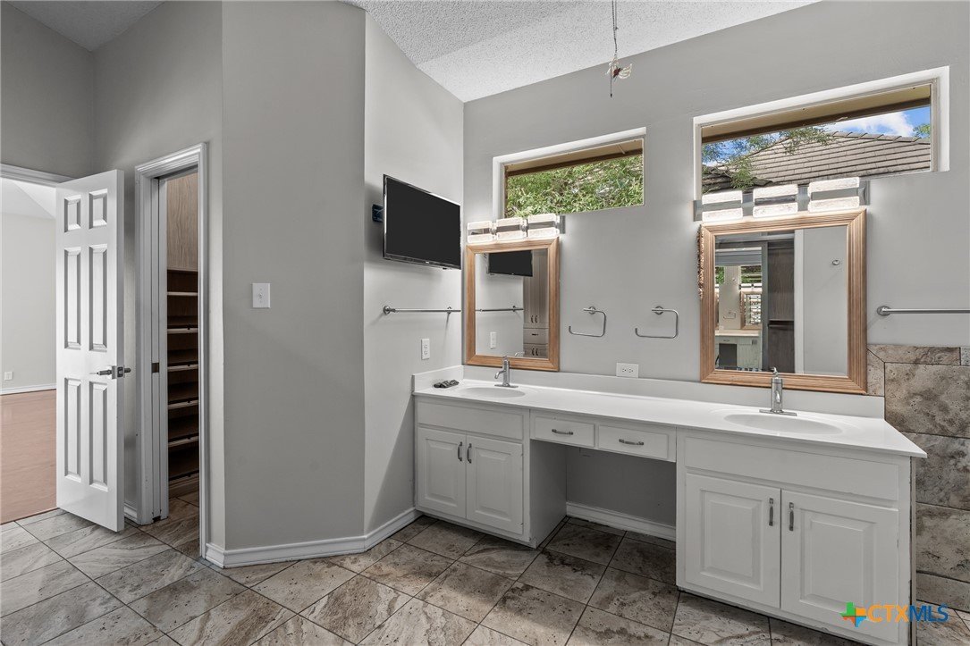 This Move-In-Ready Gem in Oakwell Farms - Schedule Your Showing Today! Inside, you'll find warm wood and tile floors throughout, custom illuminated California Closets cabinetry, elegant finishes, and high-end touches like electric Hunter Douglas shades, interior wood shutters, and designer lighting. The open kitchen is an entertainer's dream, complete with a full-size refrigerator, built-in wet bar, and stylish lighting that sets the mood. The master bathroom includes a wheelchair-accessible shower stall and a spacious walk-in closet, offering both comfort and functionality. Step outdoors and escape to your private backyard oasis-featuring a heated pool, hot tub, enclosed patio with furniture, propane fire pit, Even better? This home comes loaded with extras: recently installed Whole-home Generac for year-round peace of mind, 2 refrigerators ,kitchen & garage,6 mounted TVs throughout the home, Dining table with 8 chairs, Patio table, chairs, and a rolling art storage cart. Enjoy the exceptional lifestyle that Oakwell Farms offers: 24/7 guarded access, tennis courts, scenic walking trails, a community pool, clubhouse, and lush green spaces. Come take a tour! check in at the gate must have id and proof of insurance.