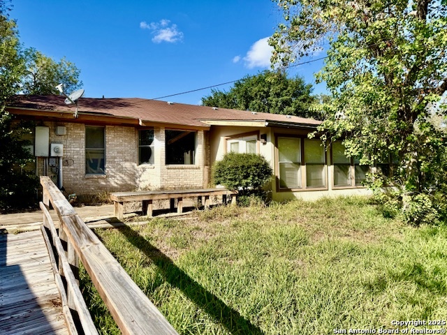 Take a look at this very spacious brick home, approximately 29sq feet. Although the home needs some work, it has some nice features: Large living room w/fireplace, roof replaced in 2021, attractive kitchen with nice cabinetry and Corian counters, bay breakfast area, four bedrooms. One bedroom has a wall of built-ins, wood deck in the back, detached garage. There is a sunroom across the back. The large backyard backs up to a ranch - nice privacy! Located in Encino Loma Subdivision. This lovely area is a desired location! The primary bathroom and bonus room need to be remodeled. This spacious home could really sparkle and shine with some wok. Priced to sell.