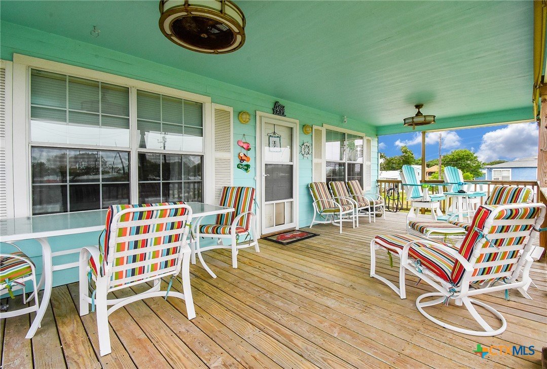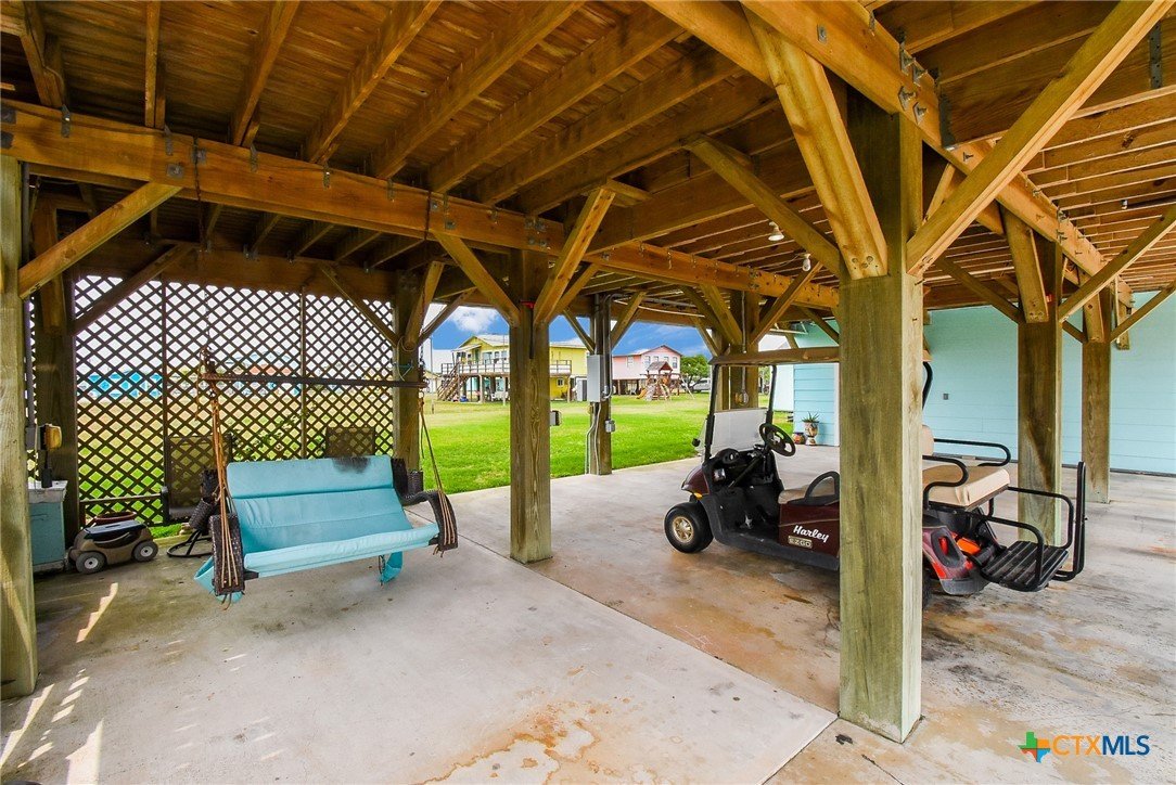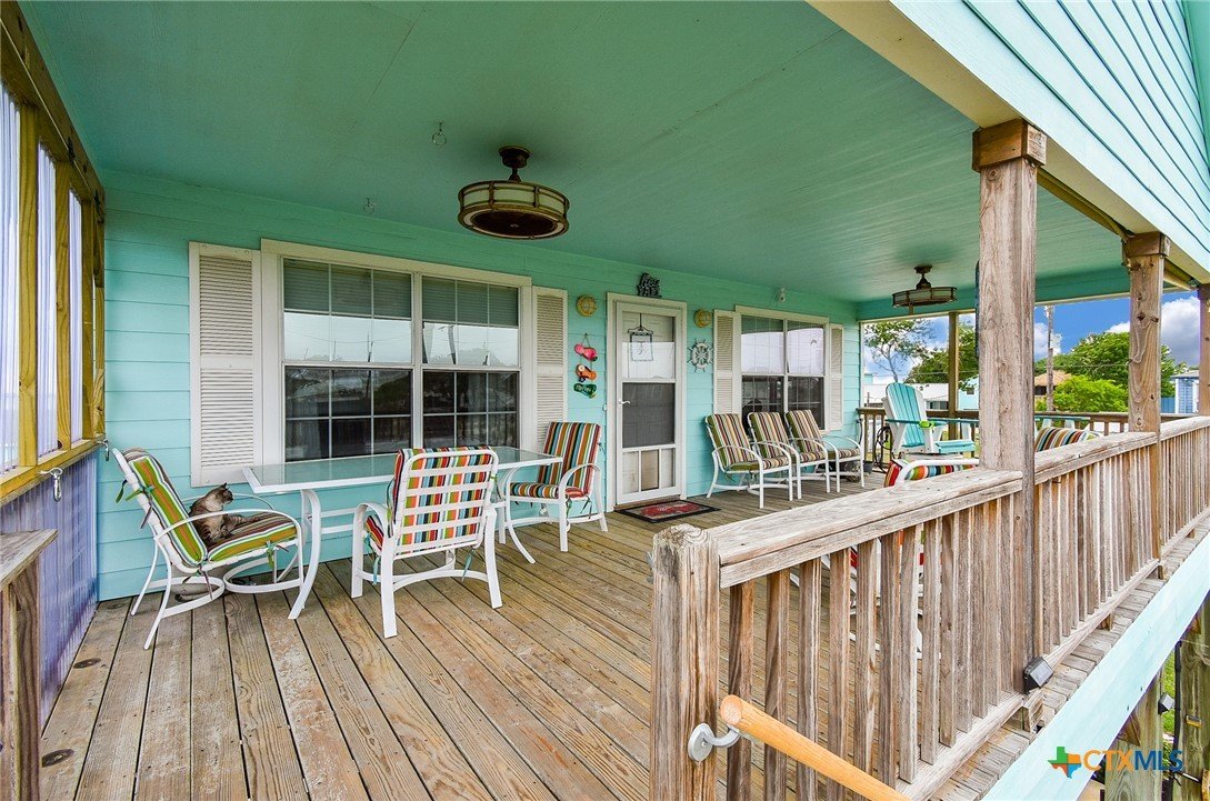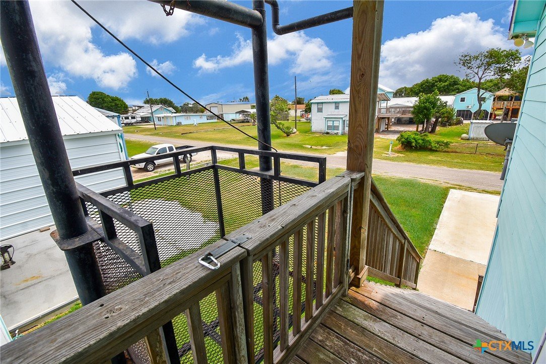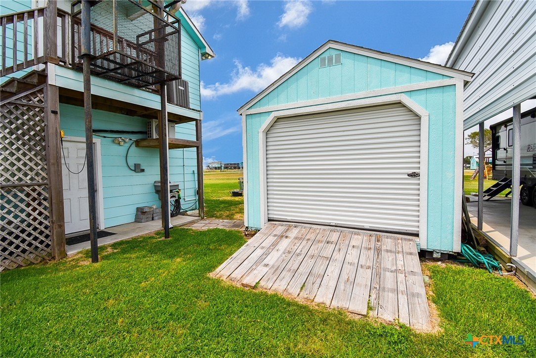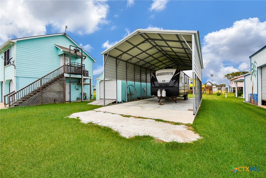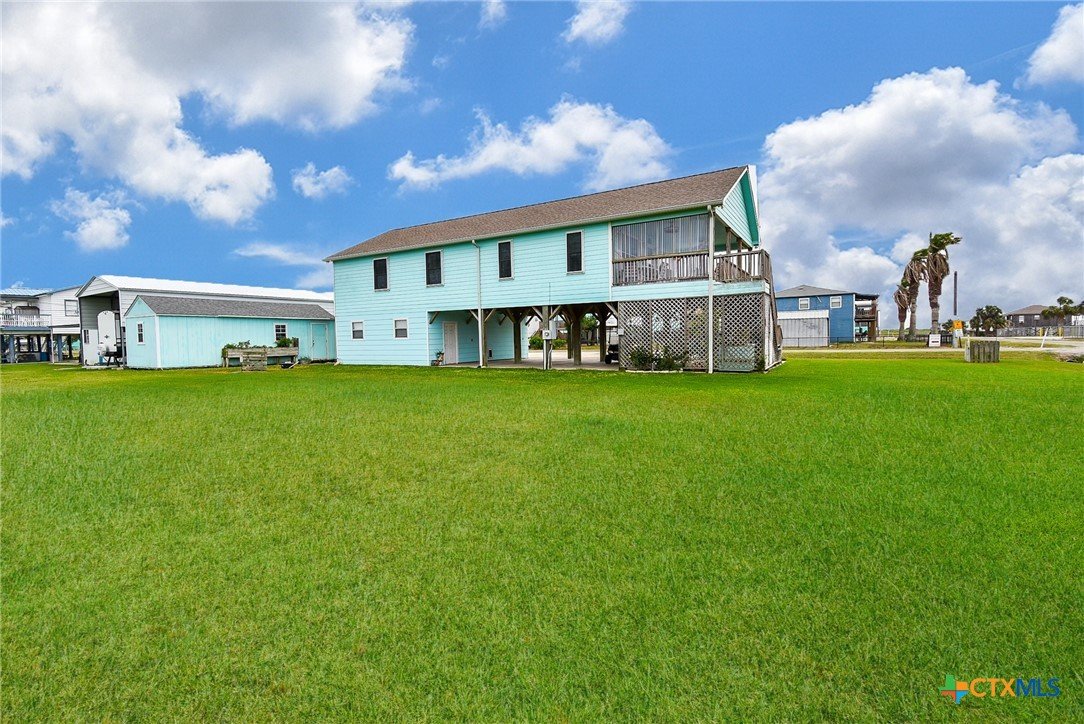 Welcome home to 16 Peggy St. in the Clarence Schicke subdivision, locally known as Schicke Point. Enjoy the sunset facing views of Carancahua Bay from your 12x28 covered patio. Situated on 1/3 acre corner lot, this home boasts 3 parking stalls and 2 garage spaces under the home, a storage building and a 20x40 covered RV storage with concrete pad. The garage has been climatized with insulation and mini-split A/C, and don't miss the 1/4 bath toilet room. Step inside to an open floor plan with vaulted ceiling, a spacious kitchen with pantry and island, and hurricane-rated screens covering double-paned windows. The primary bedroom offers outside access to a staircase and cargo lift for your convenience and ensuite bath. The laundry facilities are just behind the kitchen for ease of use on the main floor. Whether you are searching for a primary residence or weekend retreat, this home has it all!