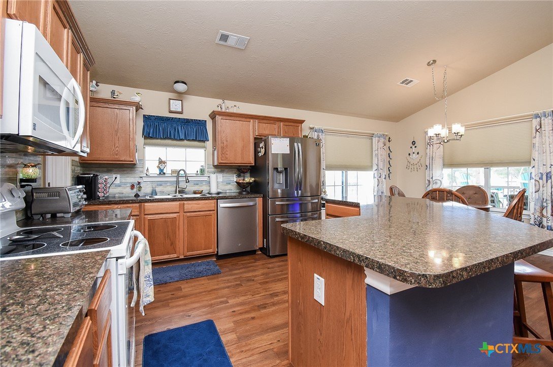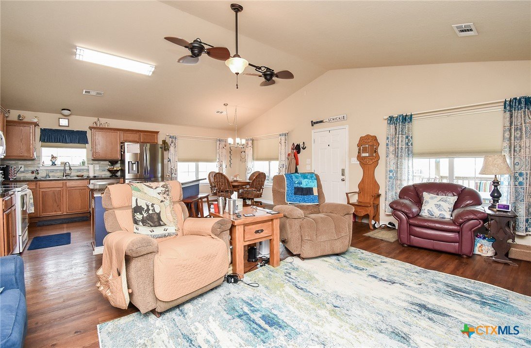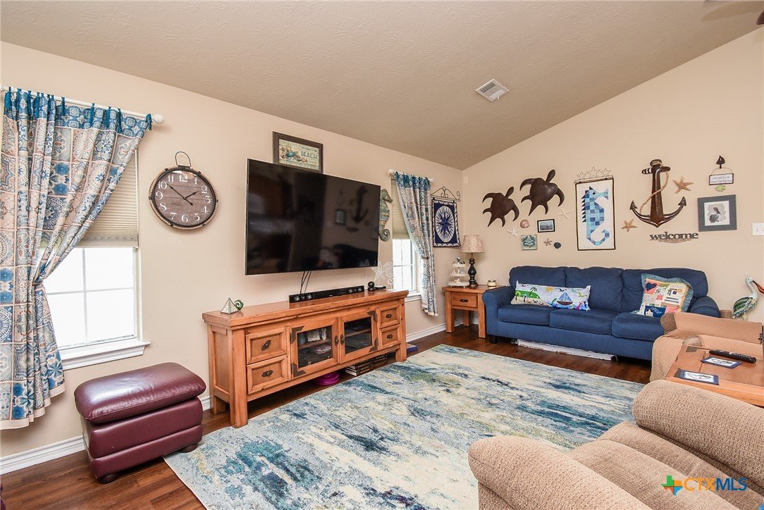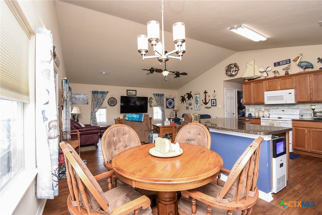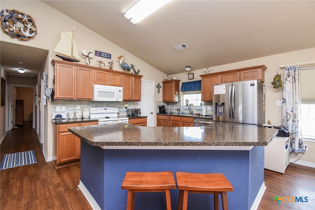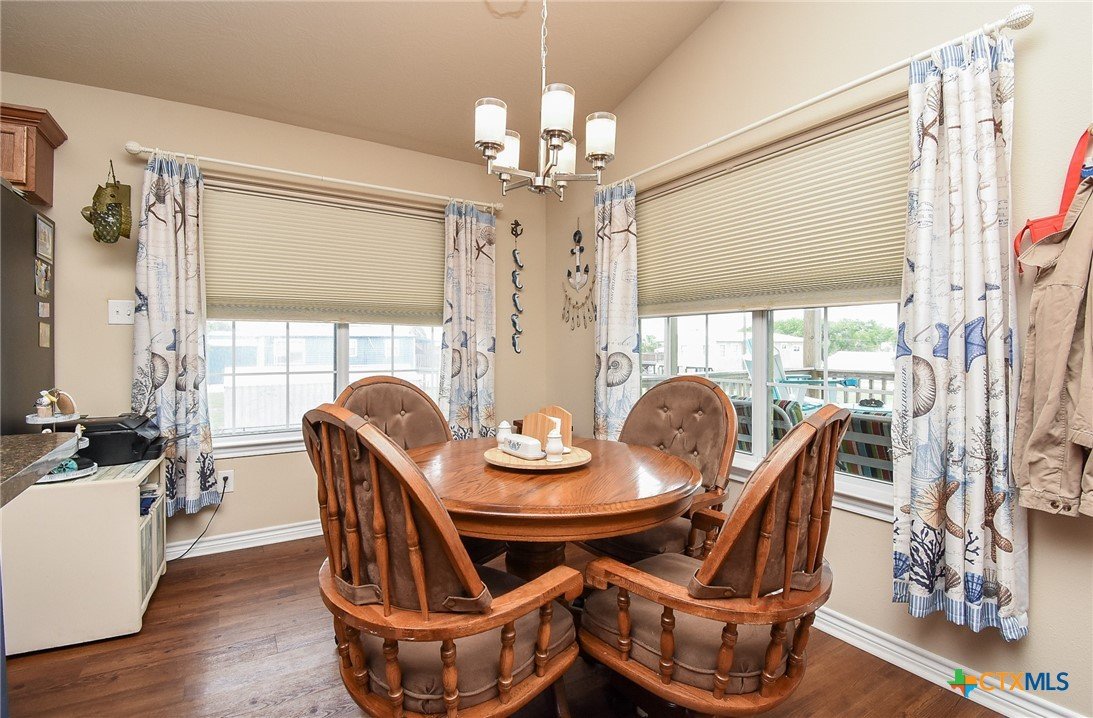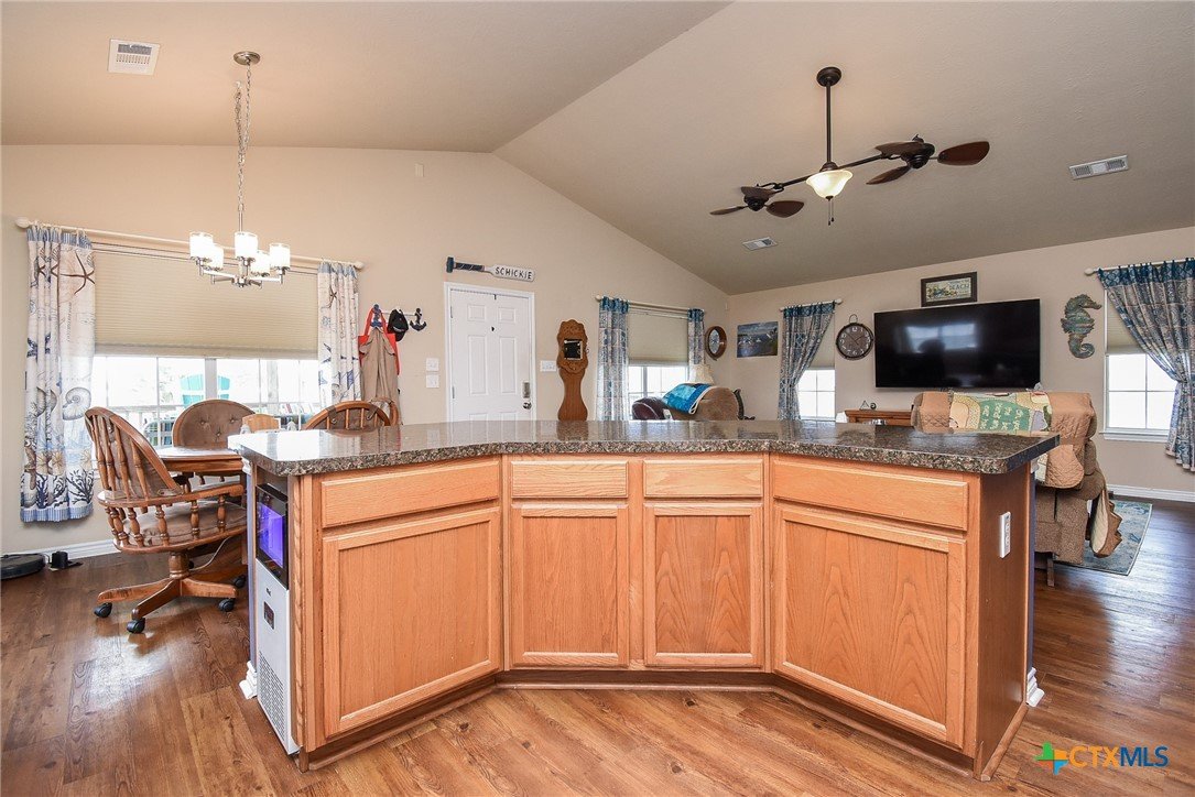 Welcome home to 16 Peggy St. in the Clarence Schicke subdivision, locally known as Schicke Point. Enjoy the sunset facing views of Carancahua Bay from your 12x28 covered patio. Situated on 1/3 acre corner lot, this home boasts 3 parking stalls and 2 garage spaces under the home, a storage building and a 20x40 covered RV storage with concrete pad. The garage has been climatized with insulation and mini-split A/C, and don't miss the 1/4 bath toilet room. Step inside to an open floor plan with vaulted ceiling, a spacious kitchen with pantry and island, and hurricane-rated screens covering double-paned windows. The primary bedroom offers outside access to a staircase and cargo lift for your convenience and ensuite bath. The laundry facilities are just behind the kitchen for ease of use on the main floor. Whether you are searching for a primary residence or weekend retreat, this home has it all!