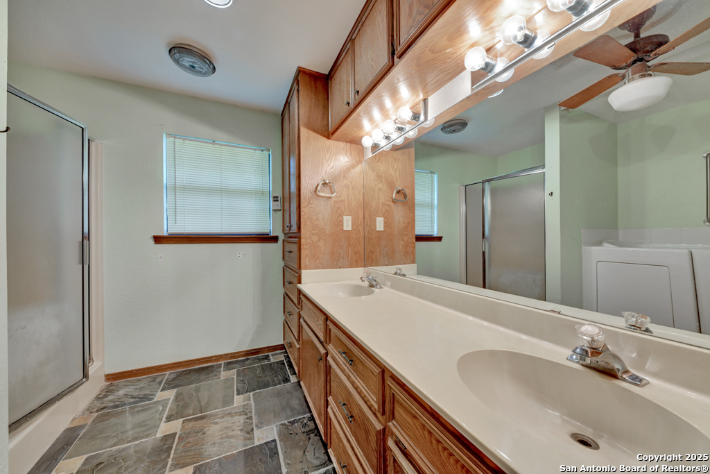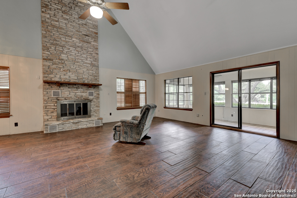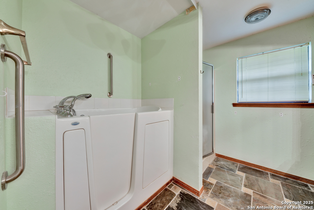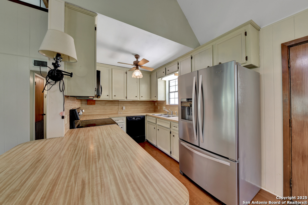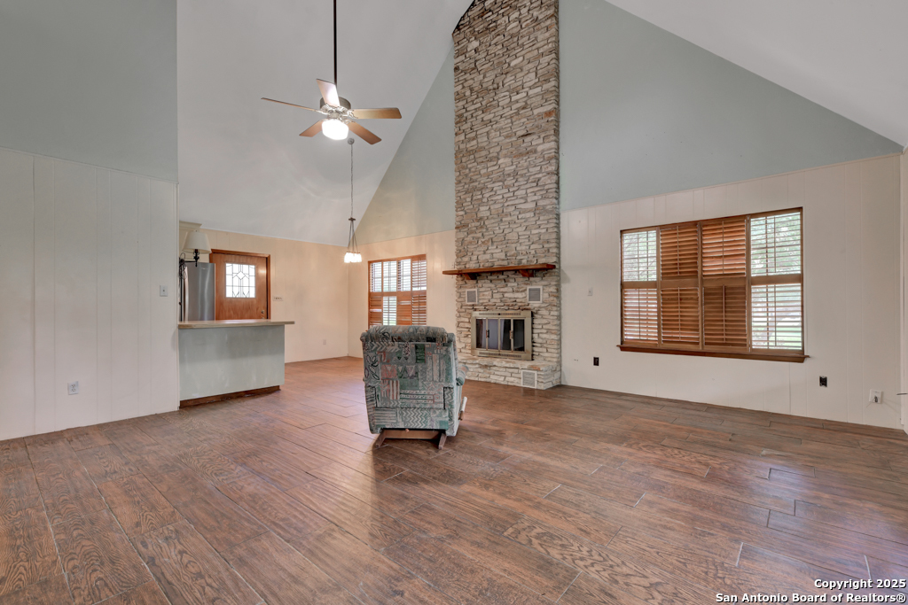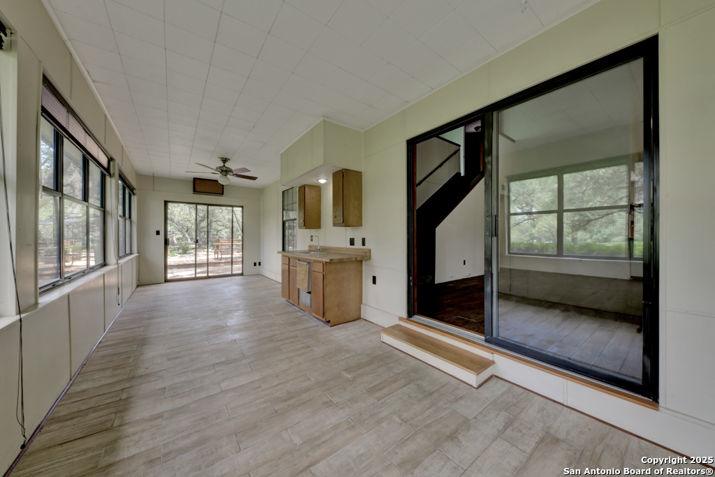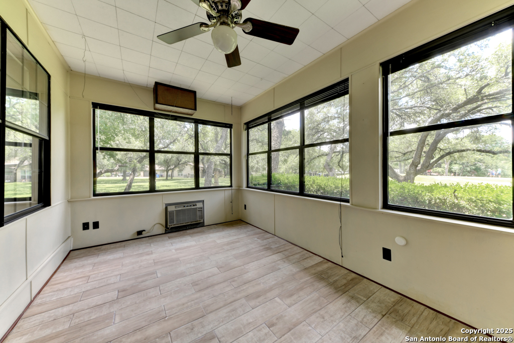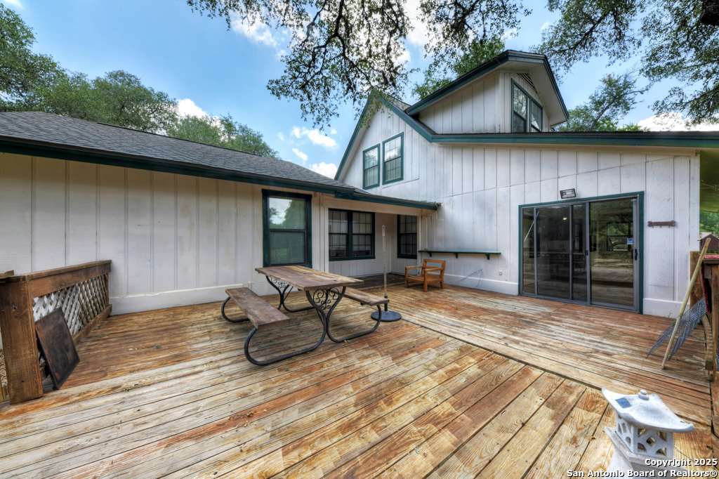 Nestled on a generous double lot totaling 0.48 acres, this unique property offers stunning golf course frontage along the 17th hole of the Double J Ranch Golf Club in scenic Wimberley, Texas. Originally built in 1979 by builder Ray Pingray, the home features an open-concept living space that highlights a striking stone fireplace, a sunroom with kitchenette and an inviting outdoor patio overlooking an in-ground pool added in 2016. The open loft is the 3rd bedroom with bath facilities, closet and windows. The primary suite offers a walk-in closet, a Hydro Dimensions walk-in tub, and a separate shower. The kitchen comes fully equipped, with the refrigerator, stove and dishwasher all conveying. Major systems have been thoughtfully updated, including HVAC (2019), hot water heater (2021), and roof (2025). A detached two-car garage 420 sqft includes attic storage and a workshop area, with a rear golf cart garage and roll-up door for added convenience. The double garage has 744 sqft w/garage door and keyed exterior door w/fenced 30x20 ft side yard houses the pool equipment, including a two-speed pump. This one-of-a-kind home offers character, functionality, and an unbeatable location for golf lovers.