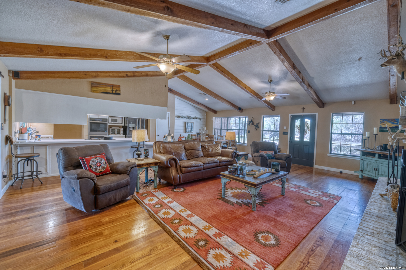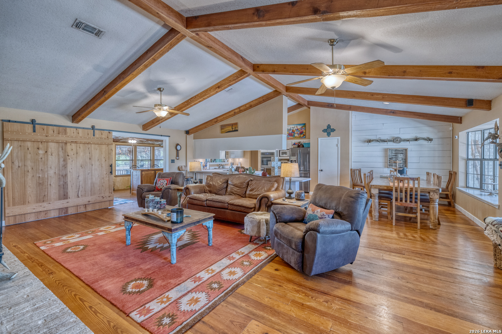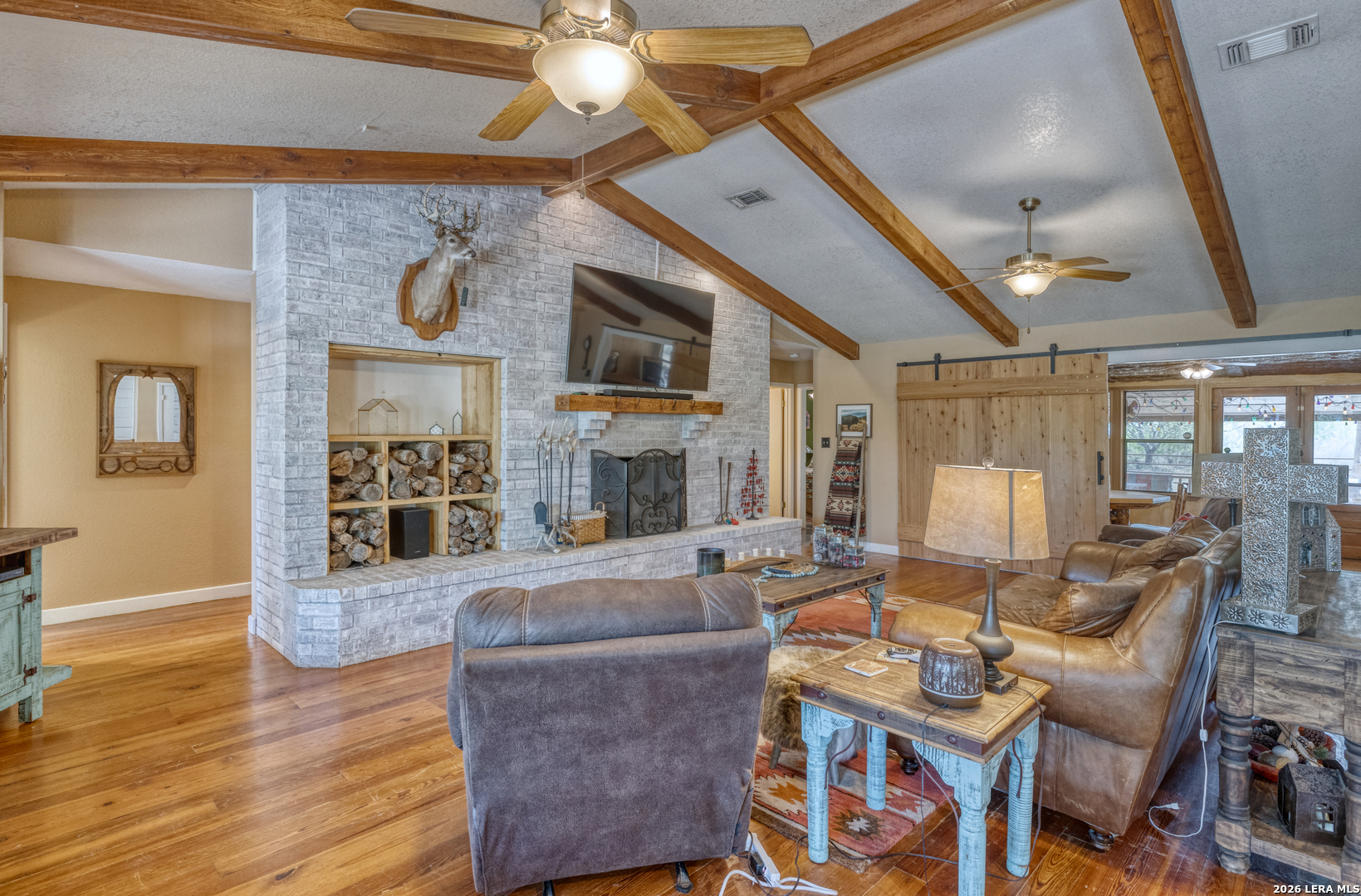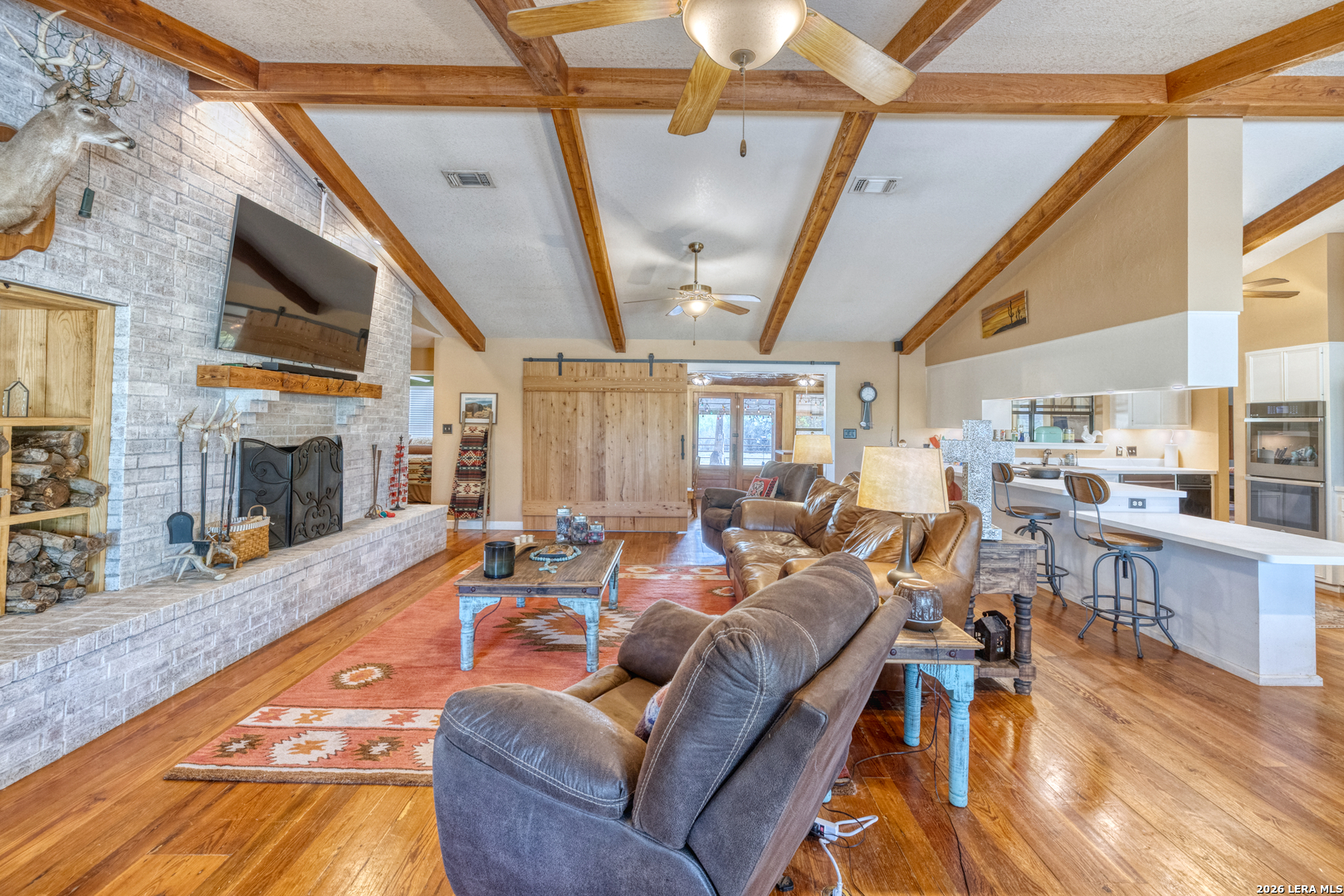Rare opportunity to purchase a beautiful home set on nearly 17 incredible acres in a highly desirable location. Nestled among mature oak trees and natural brush, this unique property offers privacy, scenic beauty, and endless possibilities. The 2,634 sq ft home features an open floor plan with 4 bedrooms and 3 full baths, highlighted by a grand fireplace that creates a warm and inviting living space. Just off the main living room, a versatile bonus area can serve as a second living room, playroom, or bar-perfect for entertaining or relaxing. Step outside to an amazing backyard and patio area, ideal for gatherings or simply enjoying the peaceful surroundings. The land offers a mix of brush, quality soil, and wide-open space, along with an oversized barn suitable for storage, hobbies, or livestock. A true standout feature is the stunning pond-crystal clear and stocked with fish-making it a must-see centerpiece of the property. This one-of-a-kind property combines comfort, natural beauty, and opportunity-perfect as a private retreat, homestead, or investment.