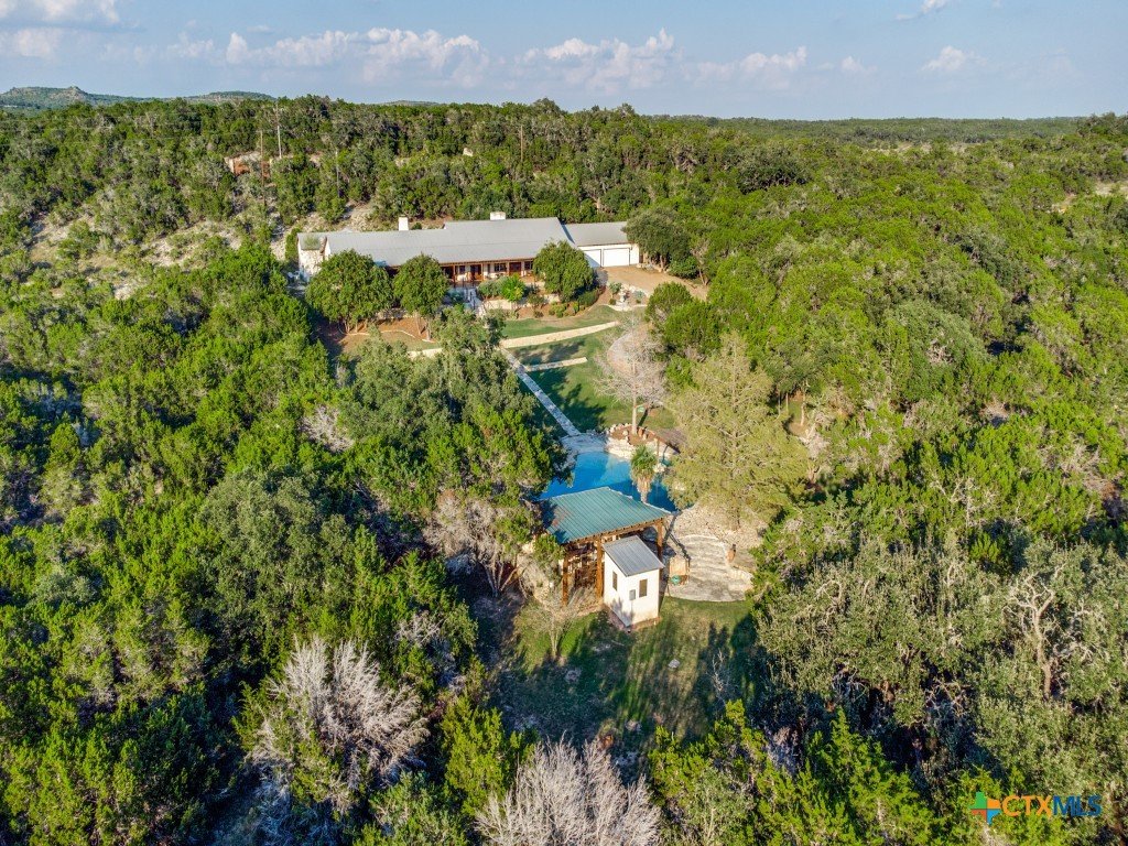 Outstanding Texas Hill Country estate in Wimberley strategically located between Austin and San Antonio. This quintessential retreat merges privacy, rustic luxury, views and amazing outdoor spaces. With 10 Ag Exempt acres, resort style pool,cabana and incredible porches for family and friends to gather and enjoy Hill Country views you will appreciate the versitility of this property. Adjacent to the porches is a fireplace and patio area that is easily accessible to all living spaces. You will love these cozy ammenities so much you will plan your schedule to spend more time at home. The main portion of the house includes a large Primary Suite with luxury bath and spacious his and hers closets next to the open kitchen/living/dining space with a wall of windows to bring in the natural light and let you enjoy Hill Country views as your dine. Three additional bedrooms located across the open outdoor living space provide privacy and comfort for your family and guests. The well-designed grounds enhance the beauty of this natural setting and provide a striking picture frame for this classic Texas Hill Country home. This home embodies the best of Hill Country design and you will feel welcome the moment you enter the property. Whether you are looking for a weekend retreat or a place to enjoy daily life with your family you will be glad you made 160 Wimberley Ranch your home.