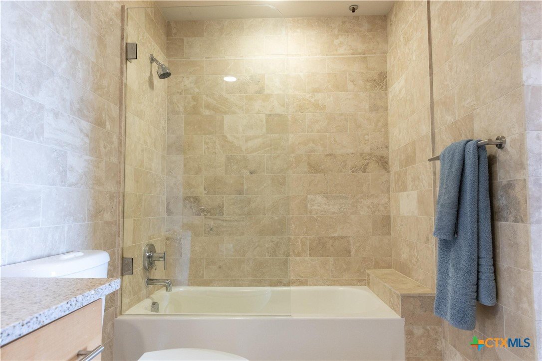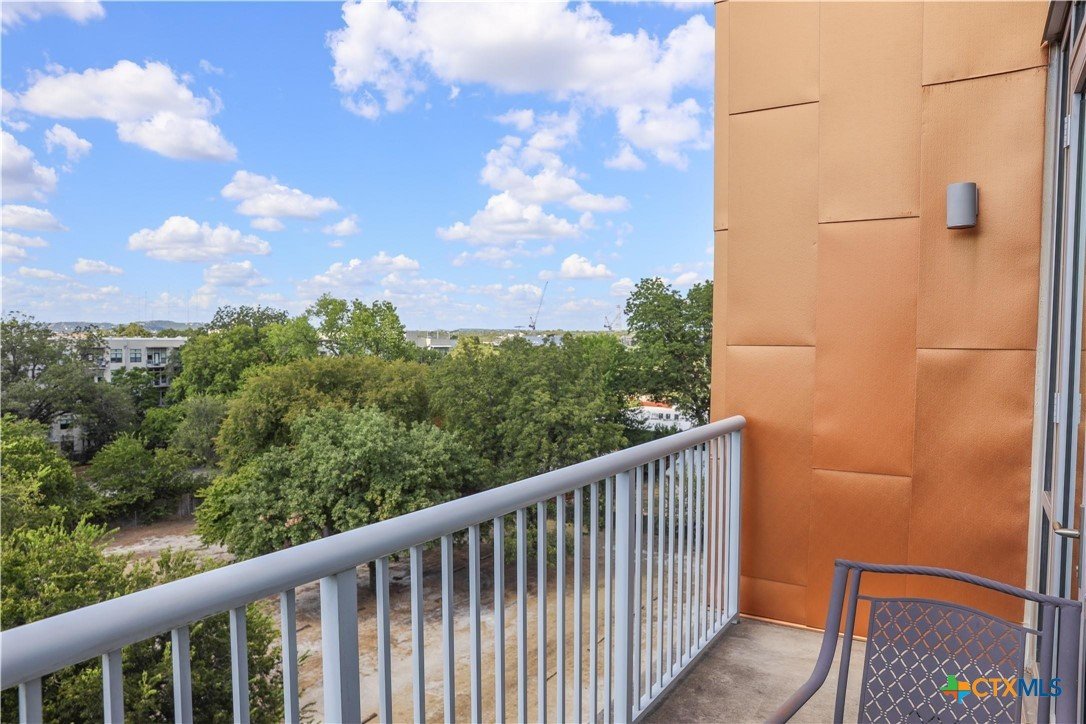 Experience elevated living at BartonPlace with this top-floor 1-bedroom, 1-bathroom residence, perfectly blending sophistication with convenience. Floor-to-ceiling windows flood the open-concept layout with natural light, highlighting fresh designer paint, hardwood flooring, and seamless flow to a private balcony with stunning views. The kitchen features stainless steel appliances, granite countertops, and a spacious island with breakfast bar seating. An in-unit washer and dryer add to the convenience, along with a reserved parking space in the gated garage. Direct access to the serene Zen courtyard and lush, landscaped grounds offers a rare retreat in the heart of the city, while residents also enjoy premium amenities including a fully equipped fitness center and sparkling swimming pool. Designed for low-maintenance living, the HOA covers building maintenance and most utilities, allowing you to embrace a true lock-and-leave lifestyle. Ideally located between downtown Austin and Zilker Park, this coveted community places you steps from the Hike & Bike Trail, fine dining, and Austin’s most iconic cultural attractions.