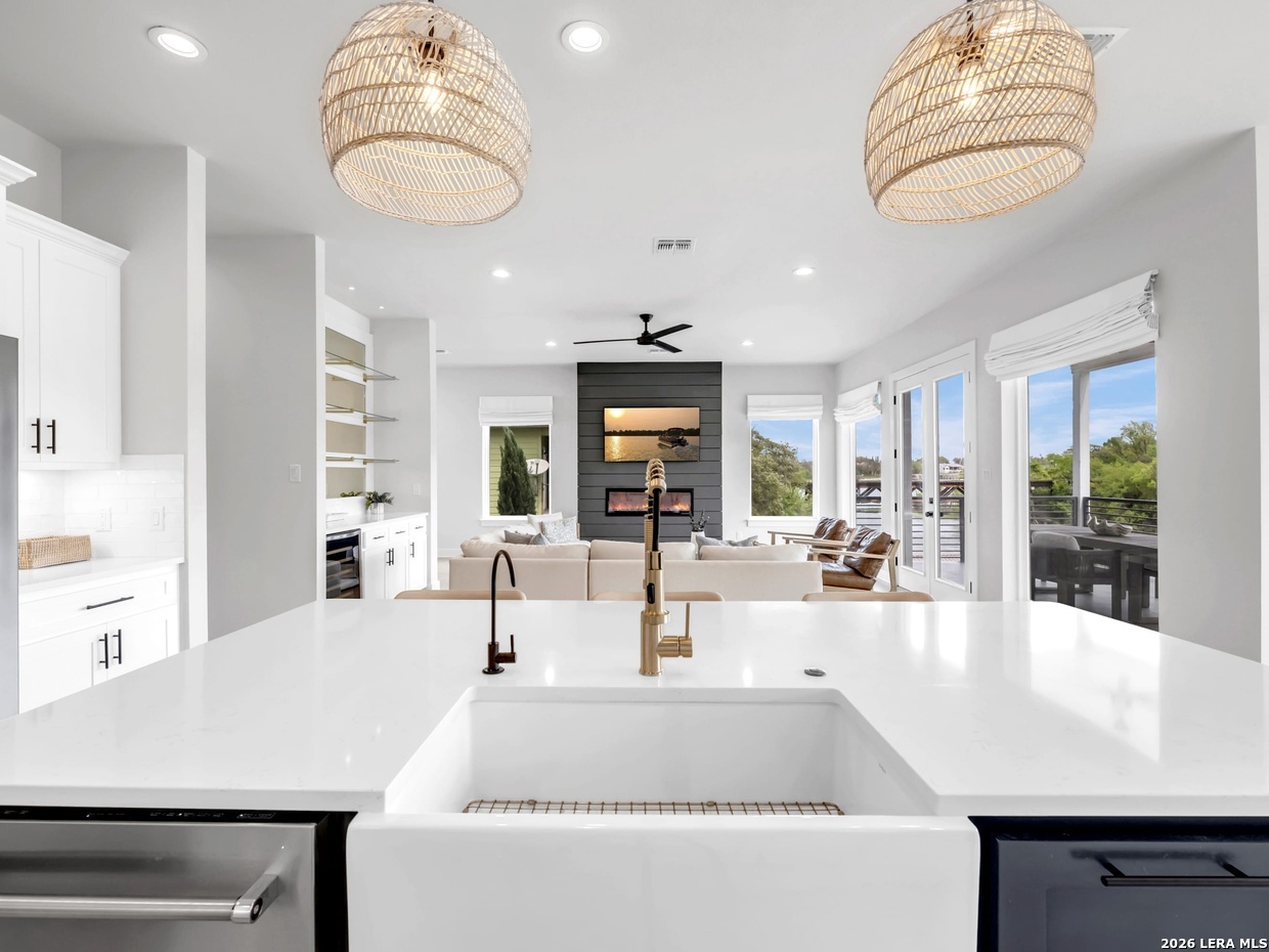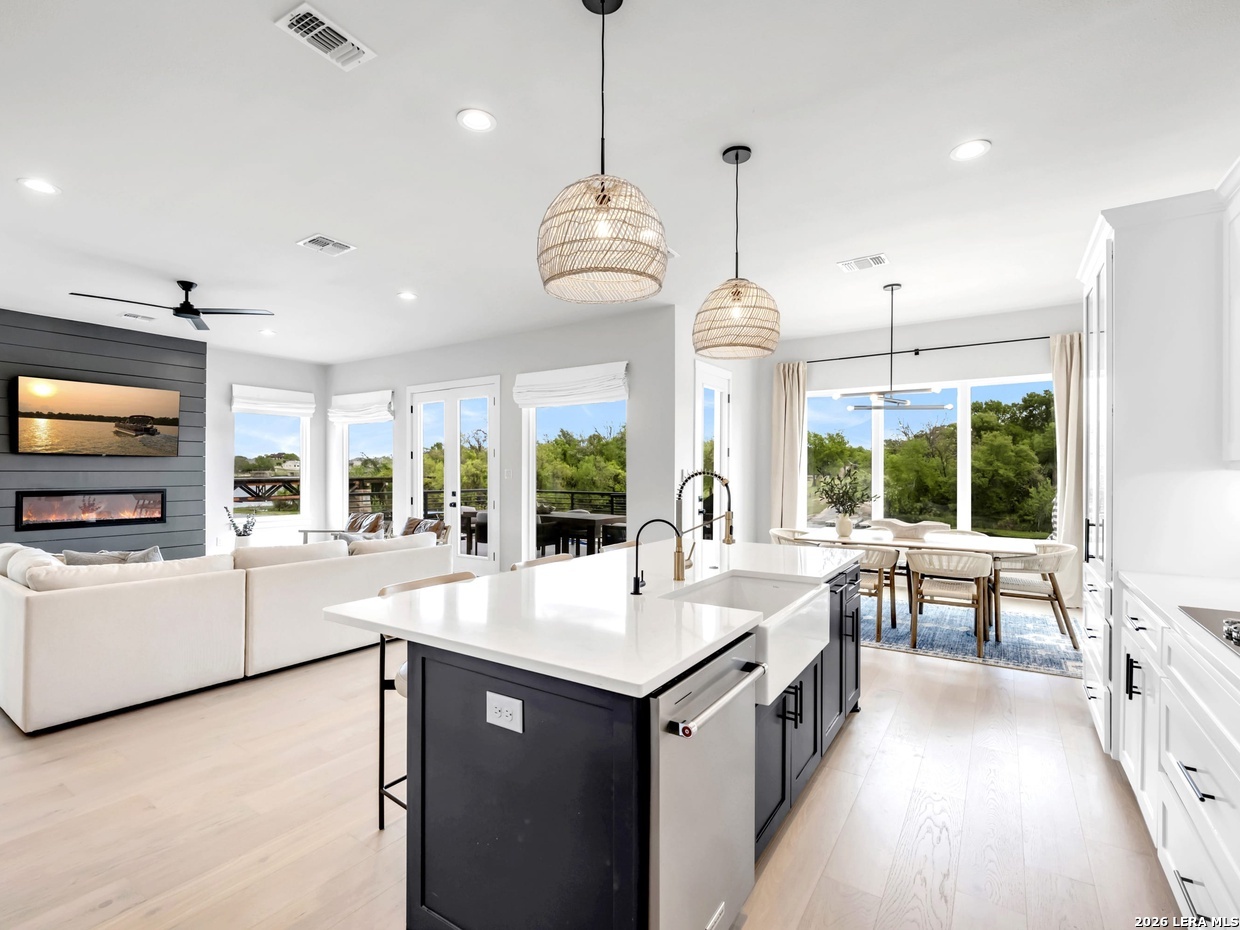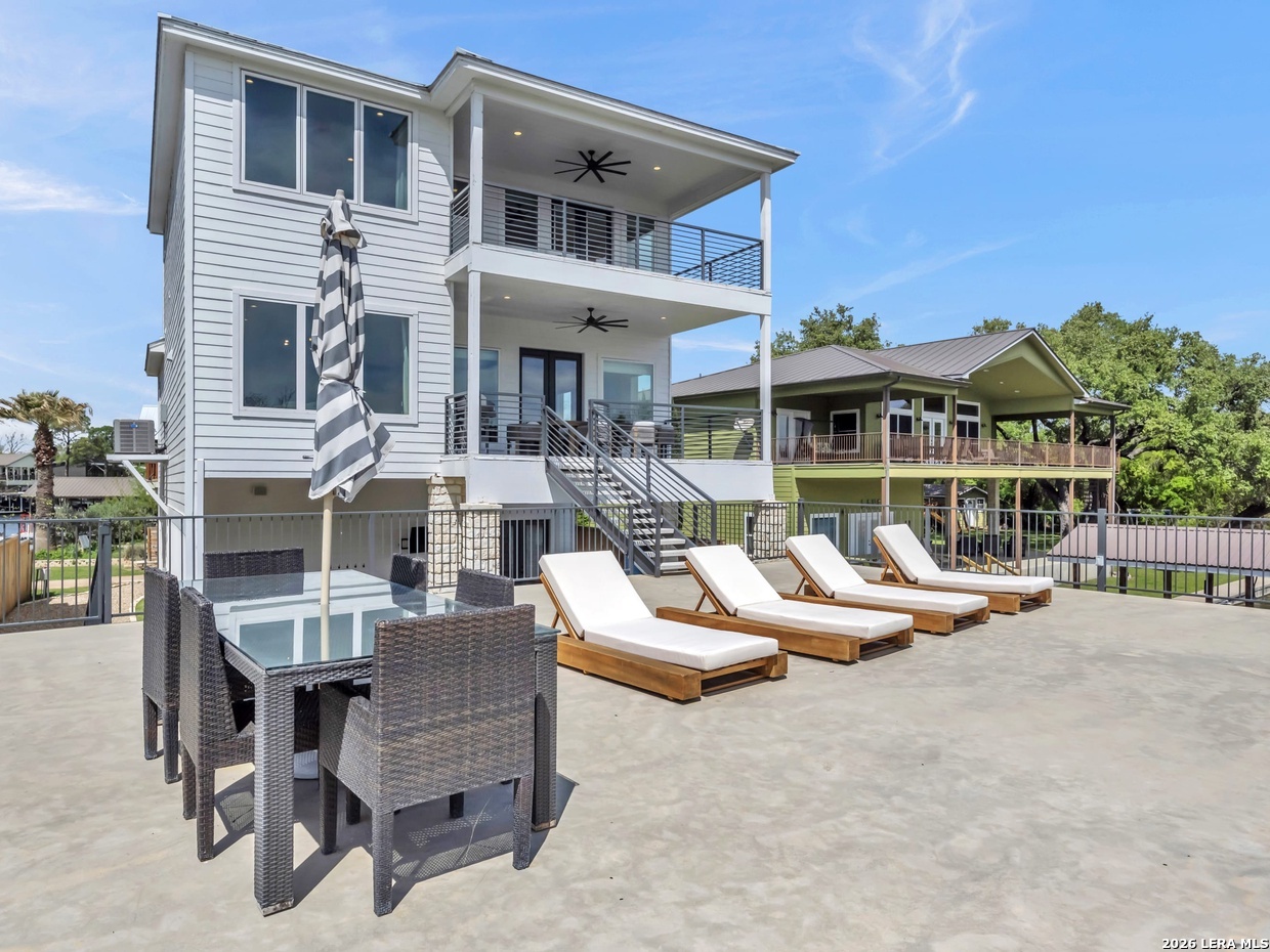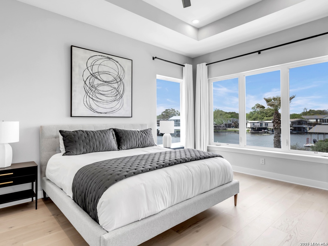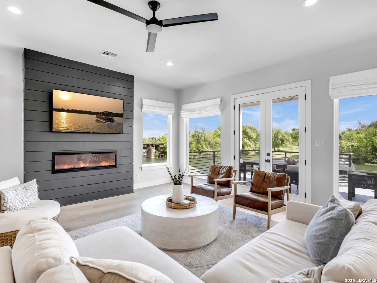 Welcome to 1601 Glen Cove in Kingsland, Texas-an exceptional, like-new modern waterfront retreat tucked away in a quiet cove along the Colorado River. Custom designed and thoughtfully built for this rare homesite, this stunning property offers the perfect blend of luxury, comfort, and the ultimate lake lifestyle. Featuring 4 bedrooms and 4.5 bathrooms, two primary suites-both with unparalleled lake views, the home showcases elegant finishes and stylish decor throughout. Luxury vinyl plank flooring flows seamlessly through the main living areas and bedrooms, while beautifully appointed bathrooms feature sleek ceramic tile. Expansive windows frame breathtaking water views from the kitchen, family room, and multiple bedrooms, creating a bright and serene atmosphere. The heart of the home is a designer kitchen equipped with a spacious quartz island, stainless steel appliances, built-in oven, smooth cooktop, farmhouse sink, and a dedicated wine fridge with additional custom cabinetry and modern glass shelving-perfect for entertaining. The primary suite is a true sanctuary, offering stunning lake views and a spa-inspired bathroom complete with dual quartz vanities, marble flooring, a luxurious marble shower, and elegant gold hardware. A second primary suite located upstairs provides added privacy and features its own covered patio overlooking the water, along with a beautifully designed ensuite bath with double vanities and a walk-in glass and tile shower. Outdoor living is simply unmatched. Enjoy two covered patios overlooking the water, plus a massive elevated concrete deck large enough to host 20+ guests-ideal for sunbathing, grilling, and entertaining. A custom staircase connects the covered patio to the expansive upper deck, creating seamless indoor-outdoor flow. The ground-level covered area offers direct lake access and includes a hot tub, lounge space, and ample room for shaded dining. The private boat dock is fully equipped with a boat slip, lift, and jet ski parking, making it effortless to enjoy boating, kayaking, and all things lake life. Additional highlights include a finished garage currently set up as a recreational lounge with epoxy flooring, ping pong, and TV space-perfect for relaxing after a day on the water. Currently utilized as a second home and successful short-term rental, this property has demonstrated strong income potential, with weekend rates reaching approximately $1,000 per night. Every detail of this home was carefully curated to maximize views, comfort, and the waterfront lifestyle. Whether you're seeking a private escape, full-time residence, or investment opportunity, 1601 Glen Cove is a rare find you won't want to miss. Shown by appointment only.