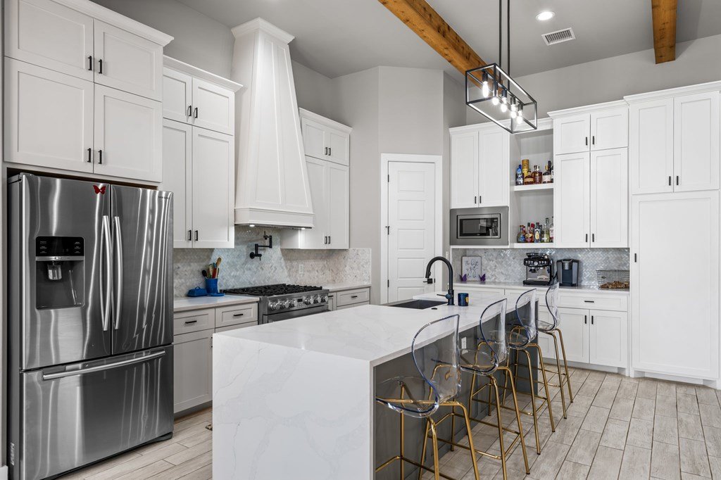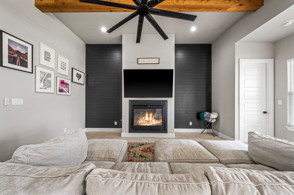 REDUCED! Located on a corner lot with plenty of curb appeal, this 4/3 open concept floor-plan is filled with abundant natural light and a soothing palette. The soaring ceilings have beautiful wood beams, a modern fireplace, chef's kitchen, custom tile, and stylish lightning. Lots of storage, spacious backyard and fully fenced. Ready for a new owner!