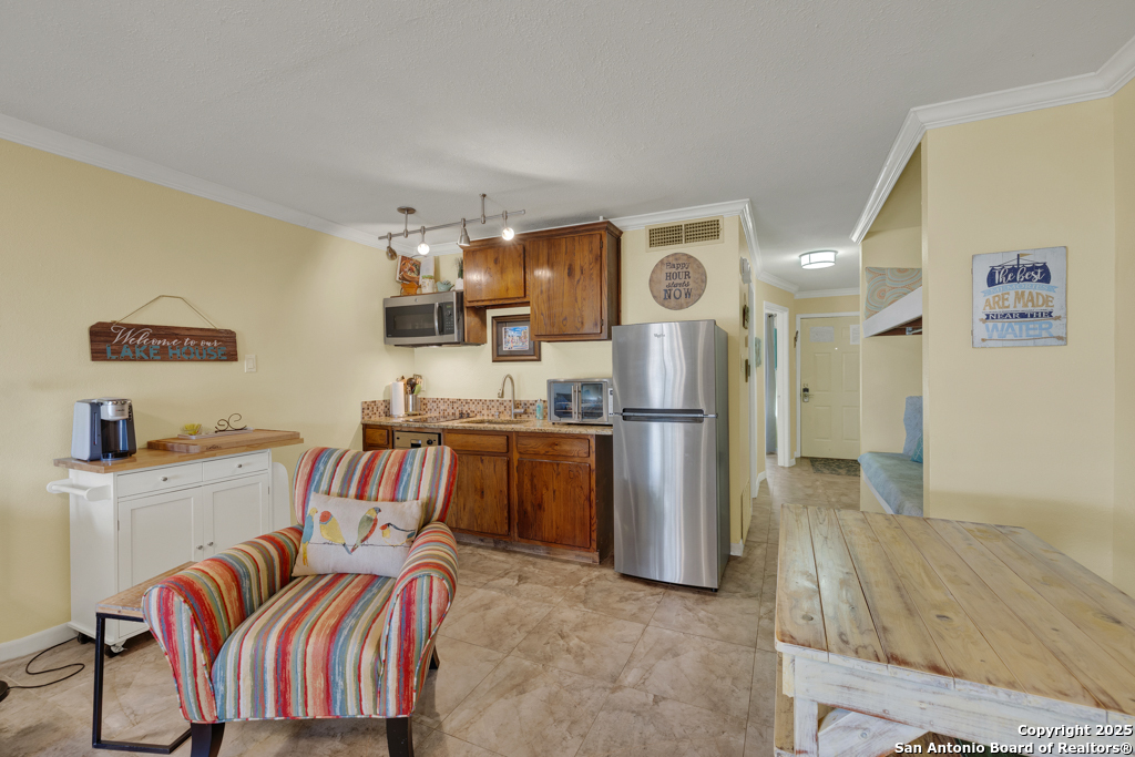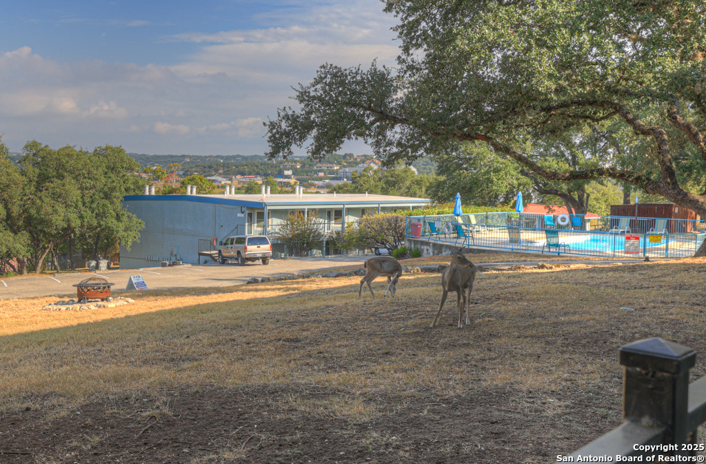 Charming 1-bed, 1-bath condo at Canyon Lake, your slice of Hill Country tranquility! Perfect as a serene getaway or lucrative investment with overnight rental potential. Tastefully updated with fun decor, this downstairs corner unit offers privacy and quiet. Features a cozy fireplace, large flat-screen TV, and a kitchen with refrigerator, microwave, 2 convection ovens, stovetop and dishwasher. The private bedroom is tucked away, plus a memory foam sleeper sofa for guests. Step through the sliding glass door to a private balcony with wrought iron gate, overlooking a peaceful lawn and Canyon Lake views. Enjoy frequent wildlife visitors! Hiking trails at the Madrone Trail just the next peninsula over with other hiking options not far. Amenities include an on-site laundry facility, refreshing pool, and barbeque area. Conveniently near grocery stores, restaurants, Whitewater, and the Guadalupe River for floating, boating, and fishing. Nestled in the heart of Hill Country, close to New Braunfels and between San Antonio and Austin. A perfect blend of relaxation and adventure!