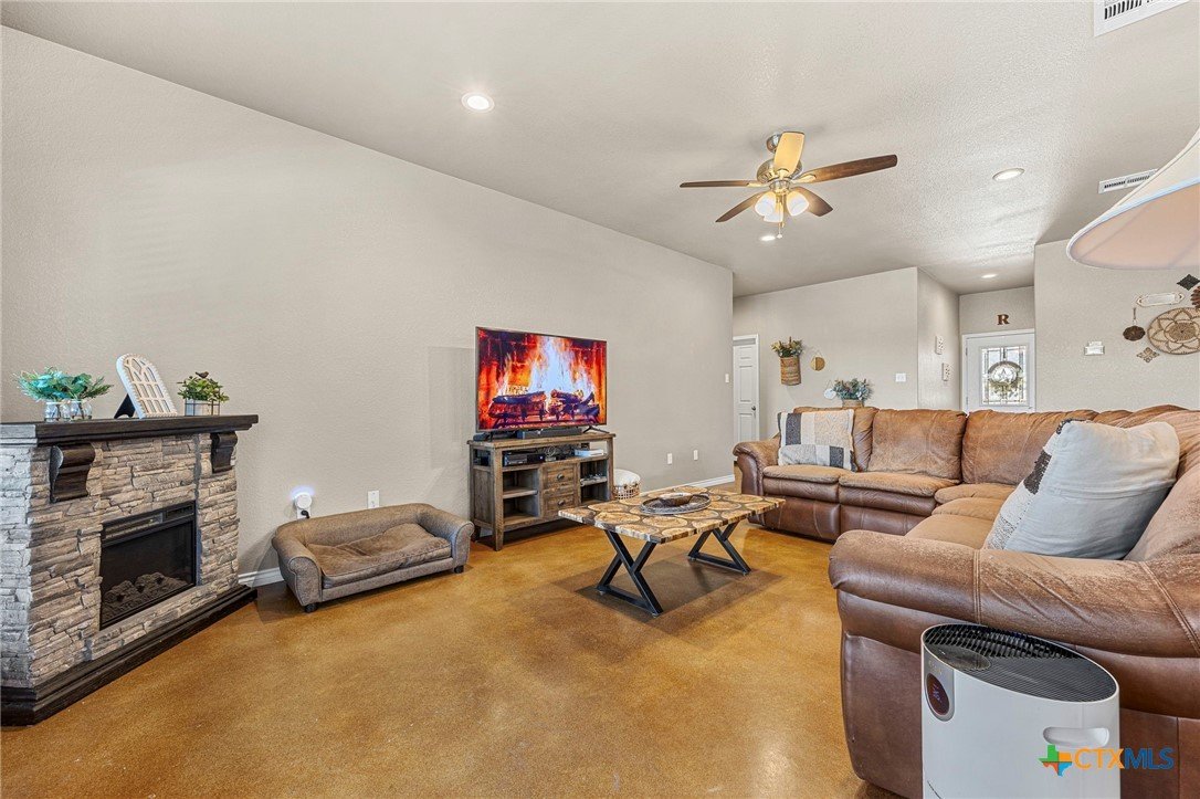 Nestled within the gated Tanglewood community, this stunning 3-bedroom, 2-bath residence offers refined comfort and serene privacy. Thoughtfully designed with stained concrete floors and an open-concept layout, the home seamlessly blends modern style with effortless functionality. Set on a spacious lot, the property provides a tranquil retreat just minutes from the lake, where abundant wildlife and graceful deer are part of the everyday scenery. Unwind on the back porch and take in breathtaking sunset views that create a truly unforgettable backdrop. Residents of Tanglewood enjoy exclusive access to a resort-style pool, event center, and playground, all within a private, low-traffic setting ideal for peaceful living.