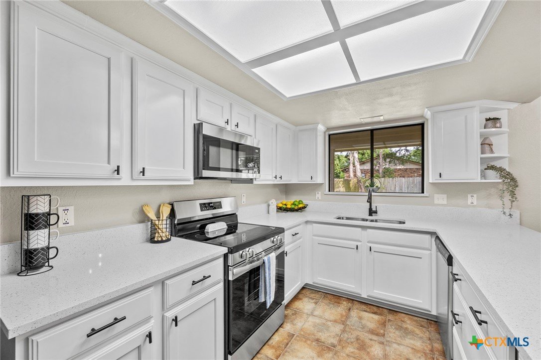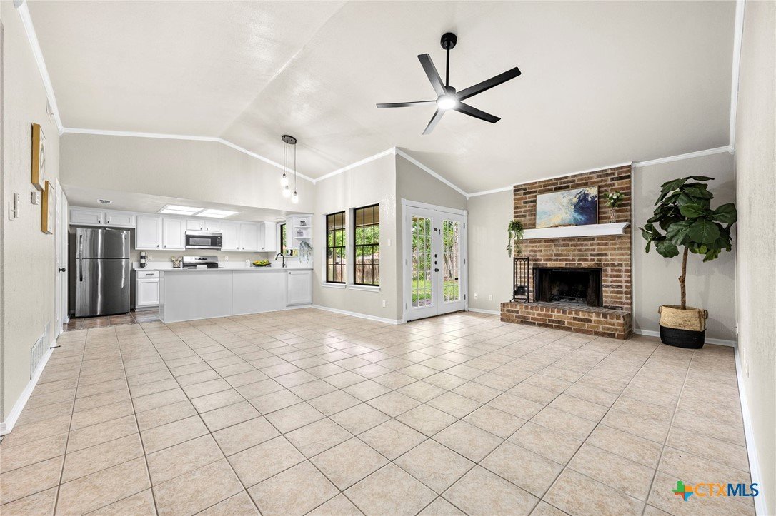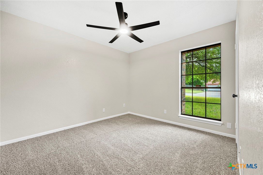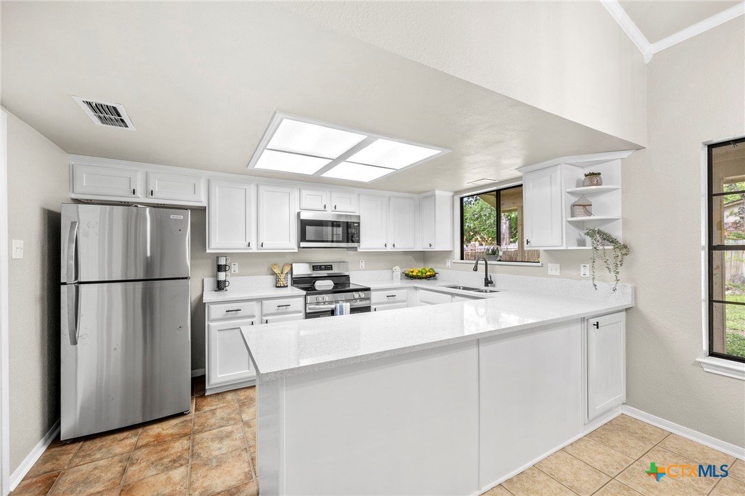 Move-in ready and beautifully updated, this 3-bedroom, 2-bath home offers an open-concept layout, high ceilings, and a bright, inviting atmosphere. The kitchen features quartz countertops and stainless steel appliances, including a refrigerator, dishwasher, stove range, and microwave. Fresh interior paint, crown molding in the living area, updated lighting fixtures and faucets, new carpet in the bedrooms, and remote-controlled ceiling fans with built-in light dimmers complete the updates. Additional highlights include a new roof, 2-car garage, and no HOA. Conveniently located near I-14, Fort Hood, shopping, grocery stores, fitness centers, and Carl Levin Park, this home blends style, function, and convenience.