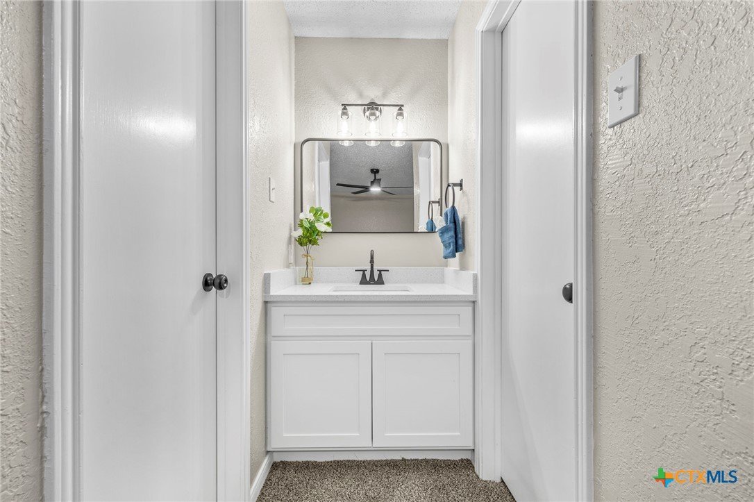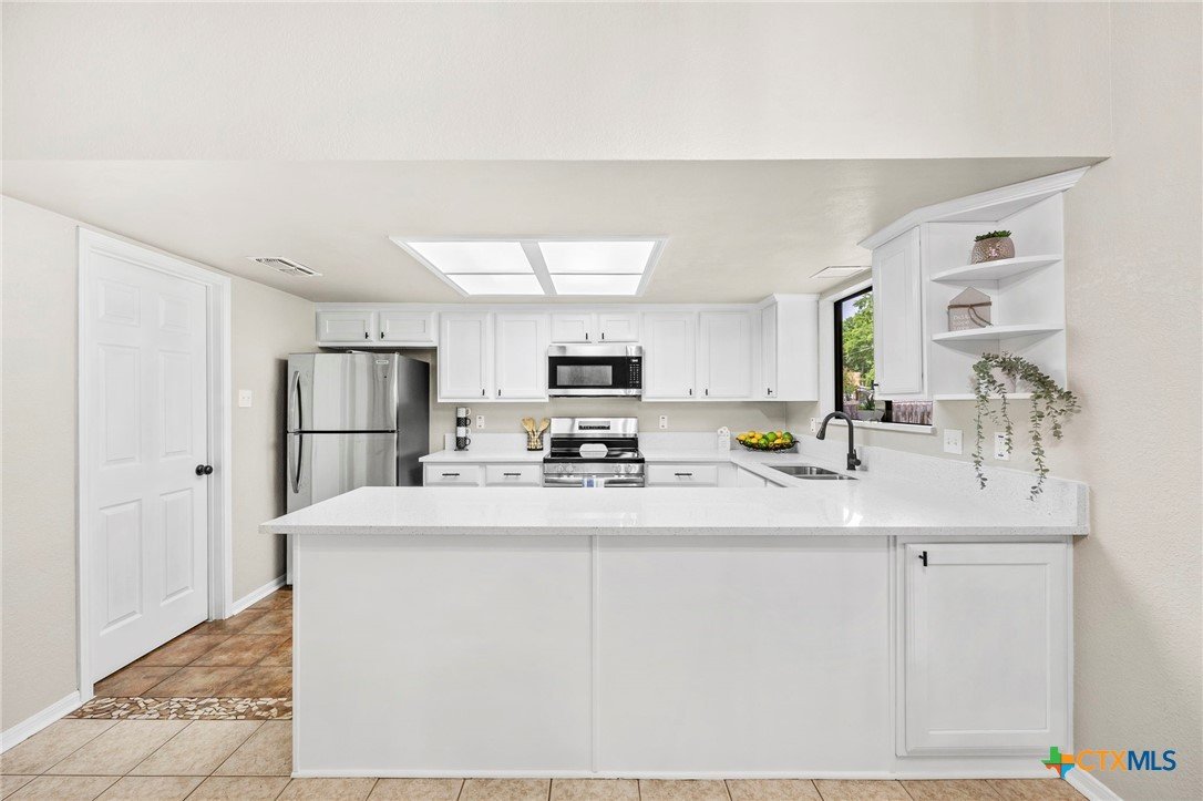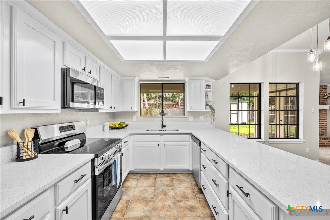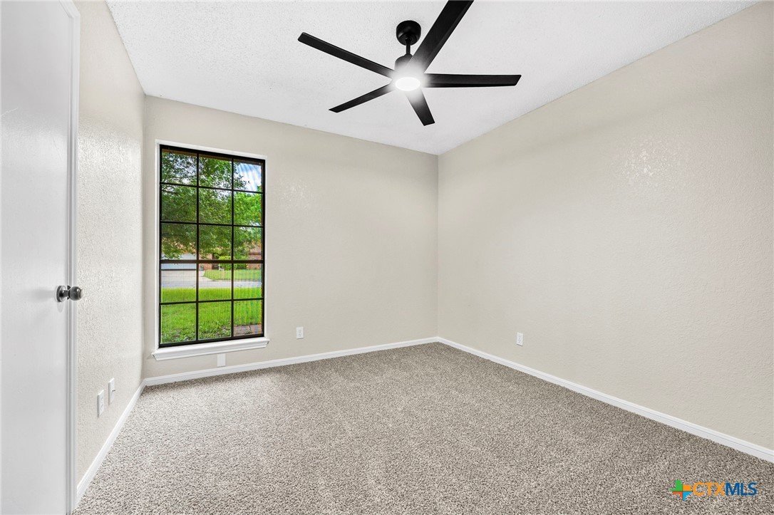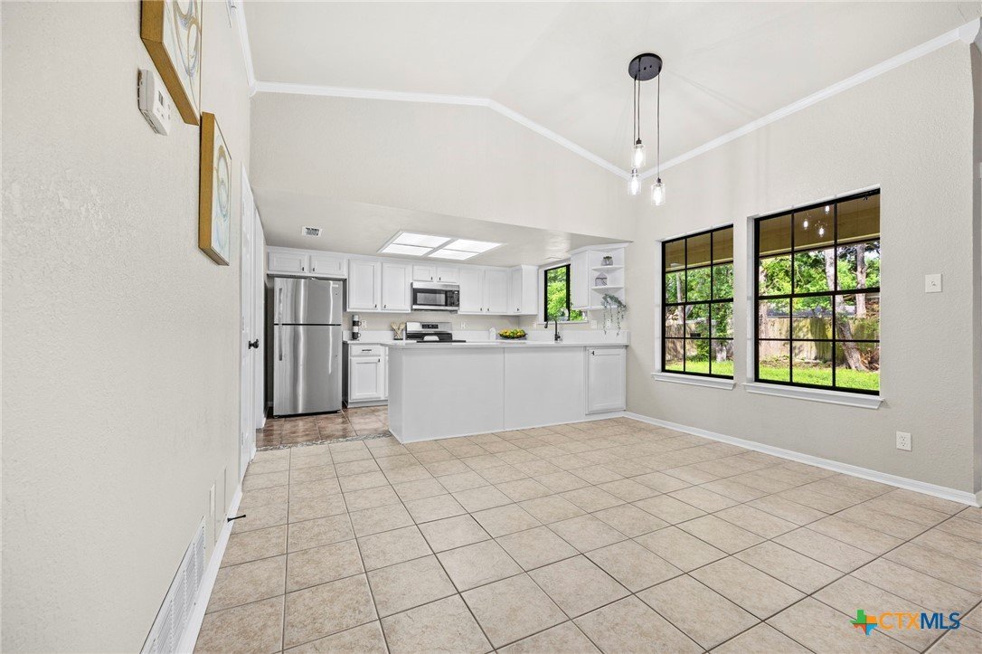 Move-in ready and beautifully updated, this 3-bedroom, 2-bath home offers an open-concept layout, high ceilings, and a bright, inviting atmosphere. The kitchen features quartz countertops and stainless steel appliances, including a refrigerator, dishwasher, stove range, and microwave. Fresh interior paint, crown molding in the living area, updated lighting fixtures and faucets, new carpet in the bedrooms, and remote-controlled ceiling fans with built-in light dimmers complete the updates. Additional highlights include a new roof, 2-car garage, and no HOA. Conveniently located near I-14, Fort Hood, shopping, grocery stores, fitness centers, and Carl Levin Park, this home blends style, function, and convenience.