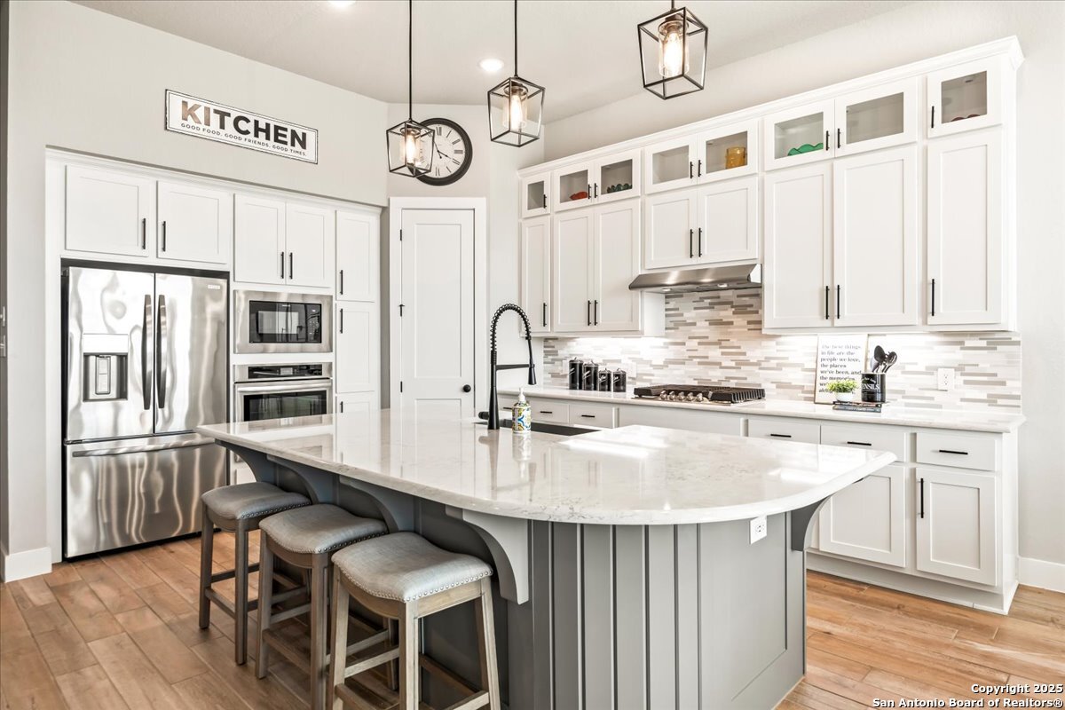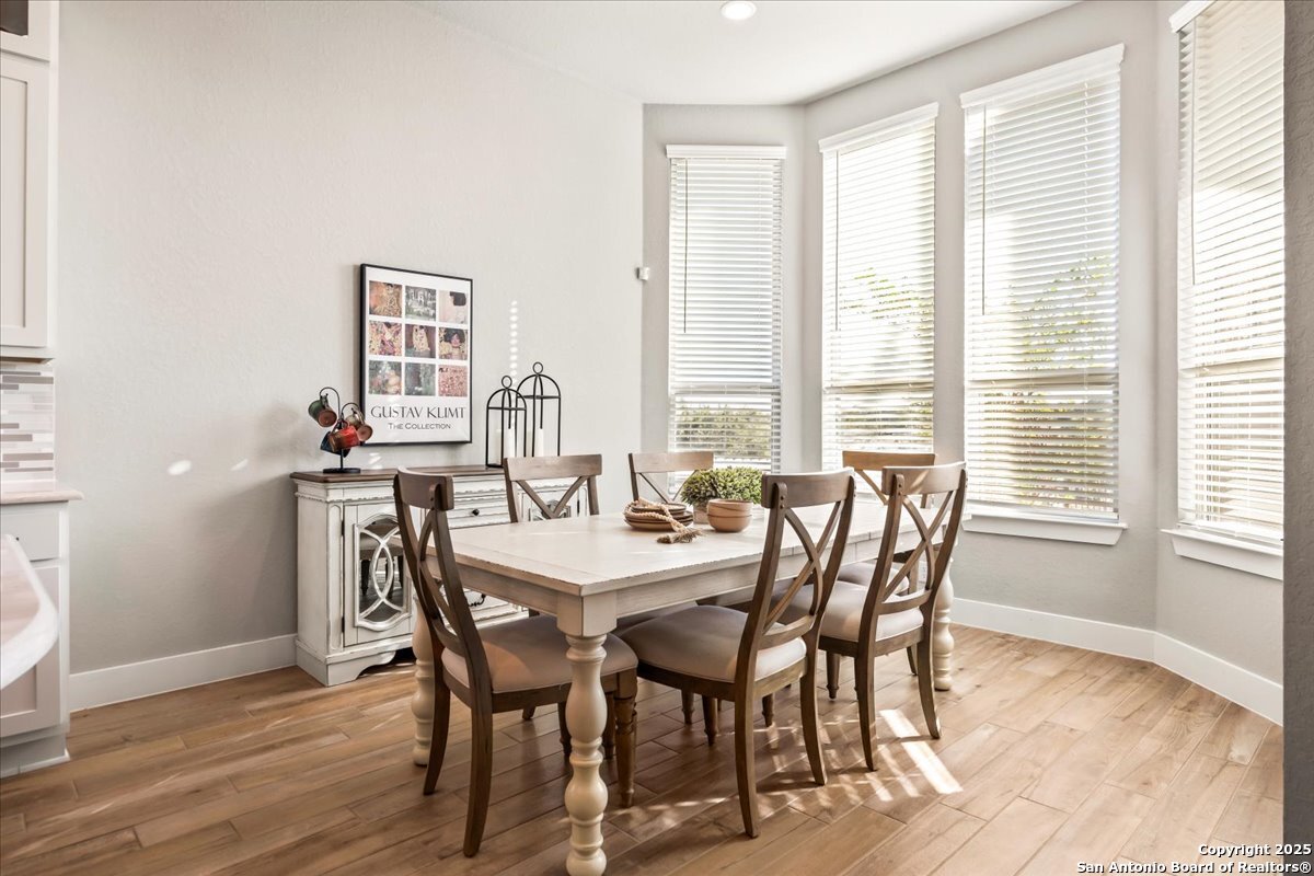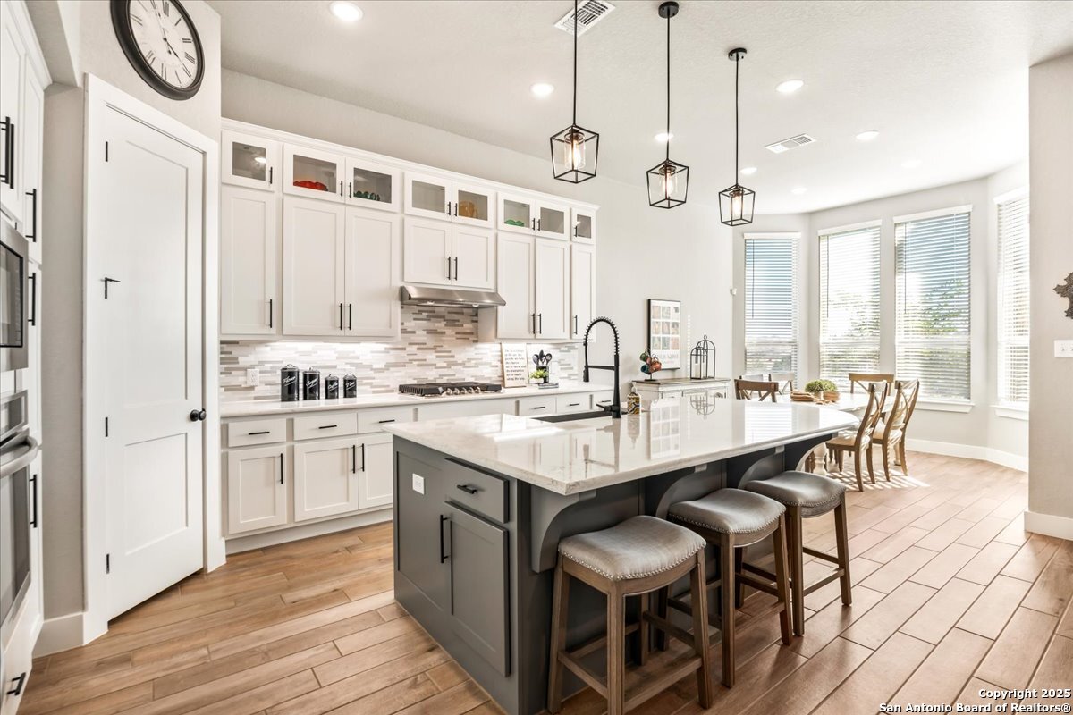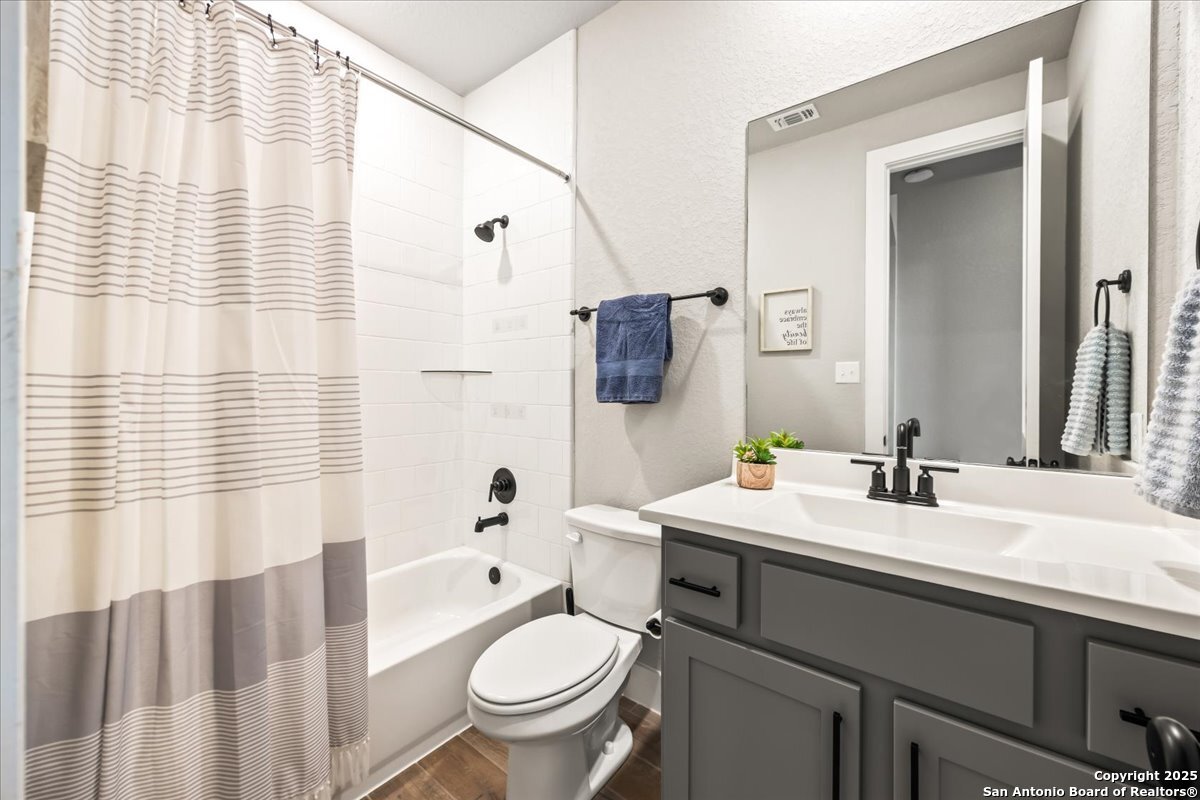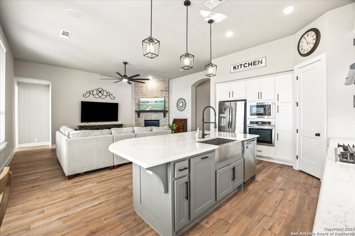 Like-new one-story Highland Home featuring 4 bedrooms and 3 full baths, offering remarkable privacy and elegant upgrades throughout. This immaculate residence backs to open Hill Country views and sits beside an HOA lot that will never be built on, creating a rare sense of seclusion. Inside, enjoy a beautifully upgraded kitchen, a cozy gas fireplace, and an enlarged primary shower and closet designed for ultimate comfort. The private backyard is perfect for relaxing or entertaining. Nestled in the desirable Meyer Ranch community, residents enjoy scenic walking trails, resort-style pools, and glowing community fire pits.