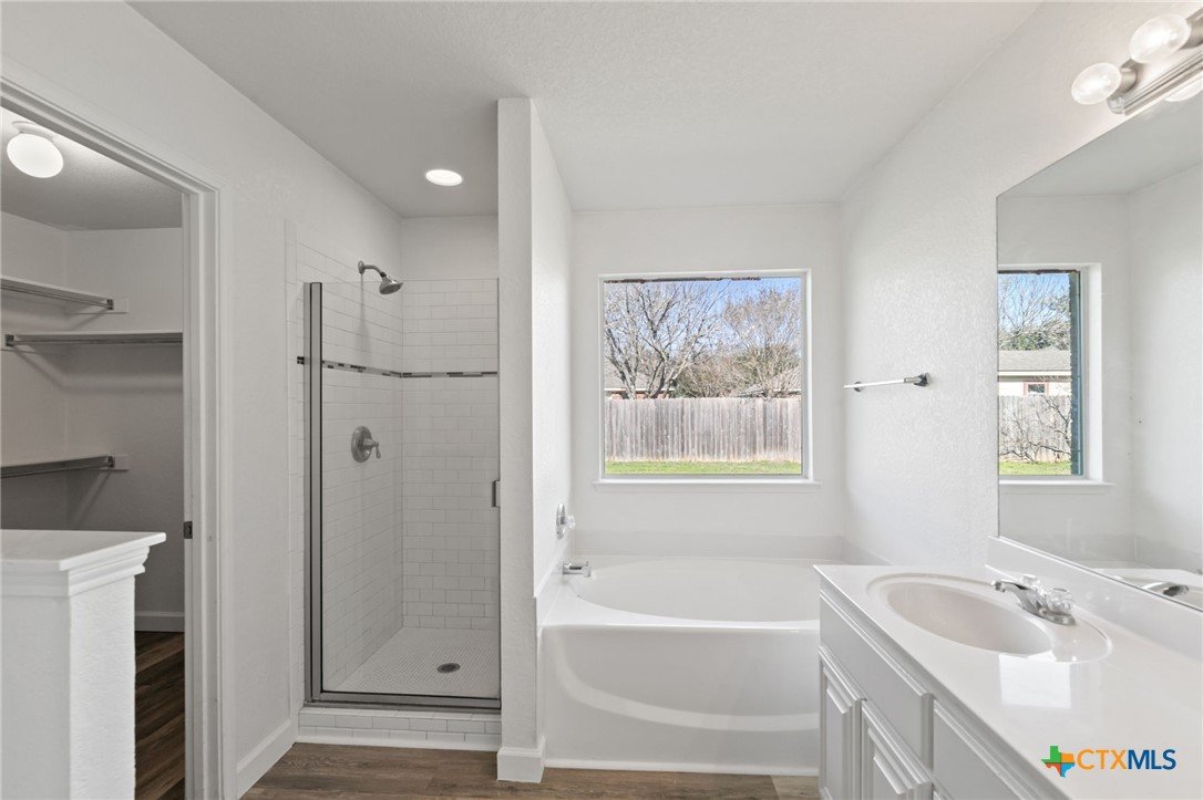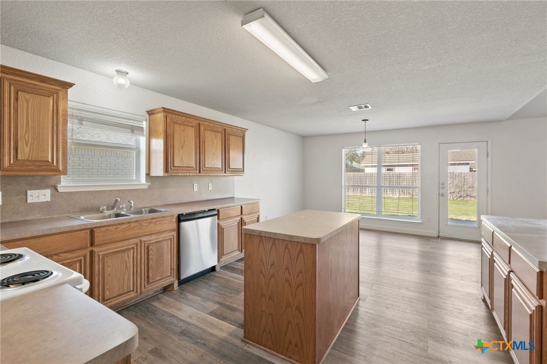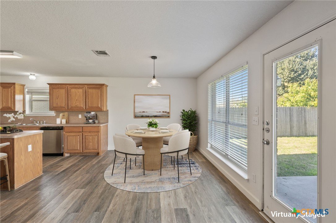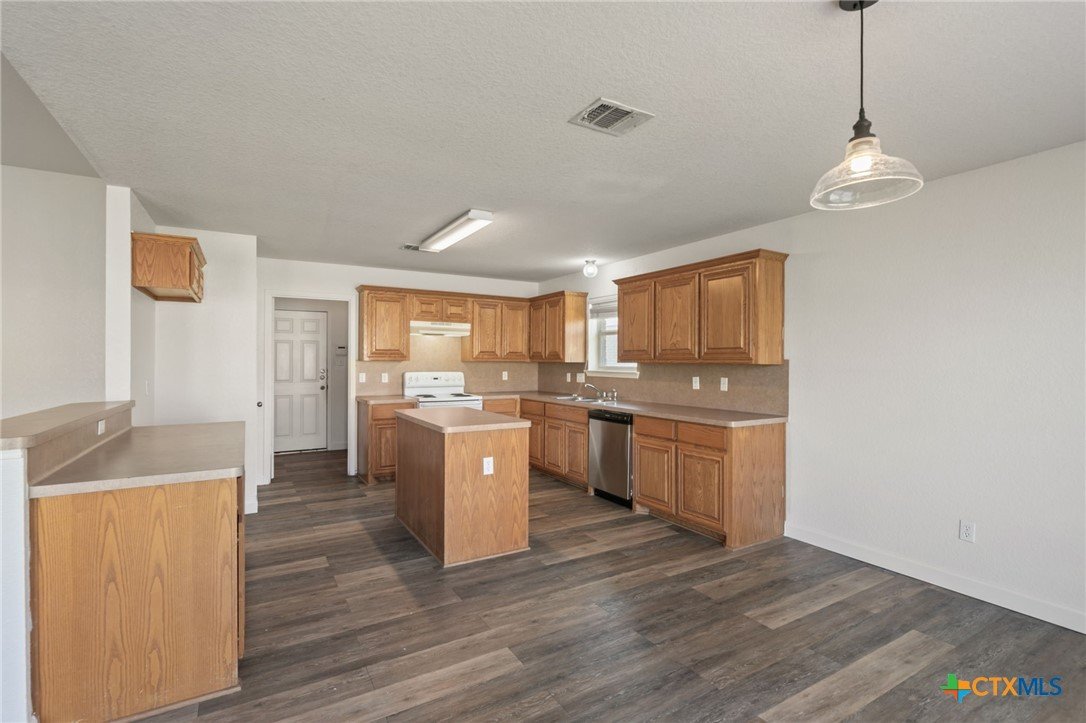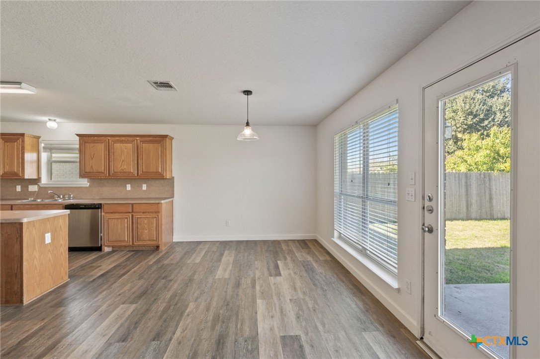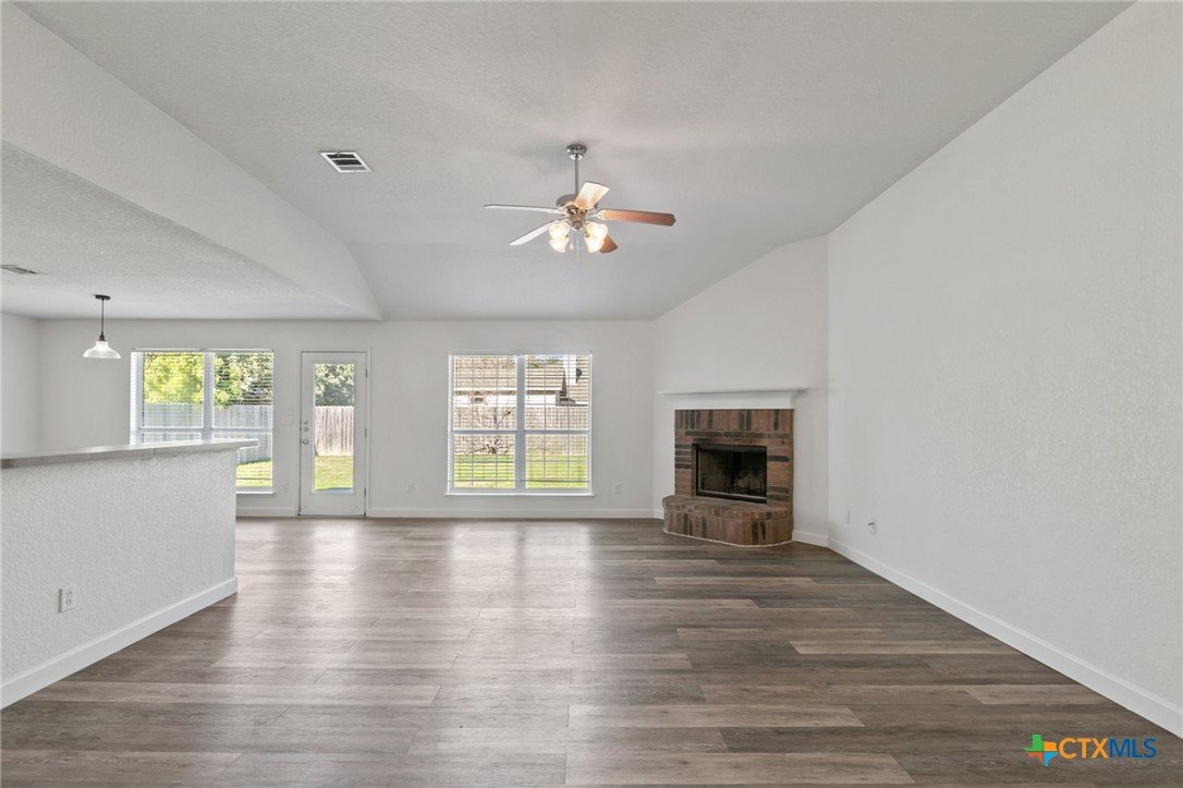 This adorable 3-bedroom, 2-bath home boasts a spacious open floor plan perfect for modern living. Entire interiior repainted, new flooring. Roof replaced on 2/16/2025. Cozy up by the wood-burning fireplace in the inviting family room, or enjoy gatherings in the large dining area bathed in natural light from ample windows. The kitchen is a chef's dream, featuring abundant cabinets and counter space, along with a convenient pantry that ensures you’ll have room for all your essentials. Retreat to the primary suite, which offers a luxurious full bath complete with a soaking tub, separate glass shower, and a generously sized walk-in closet. Situated on an oversized city lot adorned with mature shade trees, this property offers both space and serenity. new primary bath shower installed in 2019. Located in a desirable HOA neighborhood, you’ll enjoy the convenience of being just minutes away from schools, shopping, and easy access to SH 130 for hassle-free commutes. Don’t miss your chance to call this lovely home your own