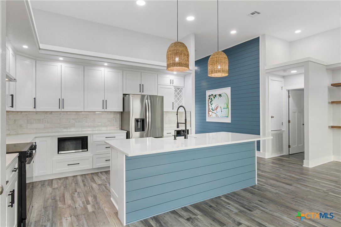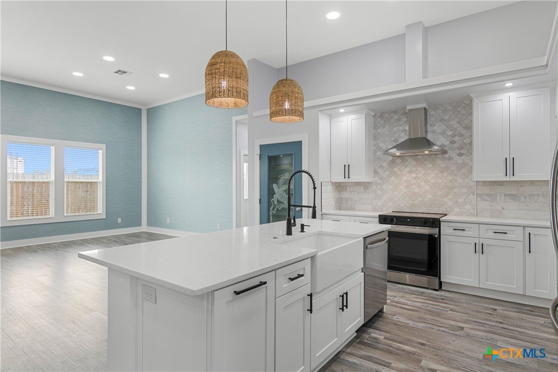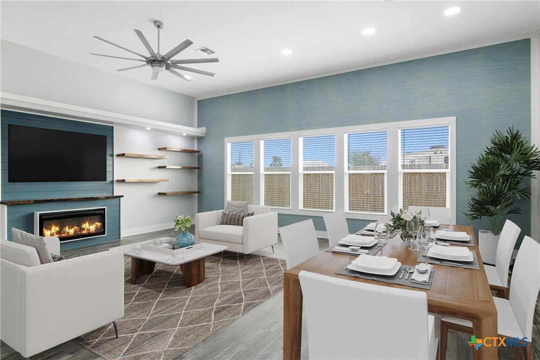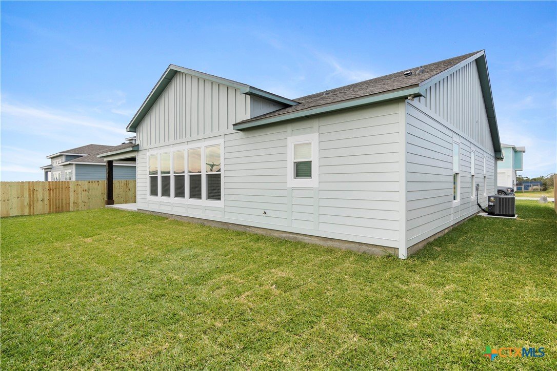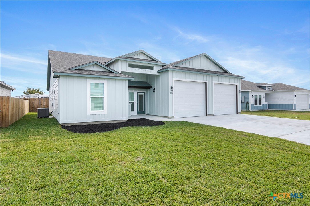 NEW PRICE-Motivated Seller! Discover this stunning 3-bedroom, 2.5-bath, new construction builder's MODEL HOME offering modern elegance and exceptional upgrades throughout. Built by DBJ Coastal Investments, no detail was spared. From the moment you step inside, you'll be captivated by the tall ceilings, luxury vinyl plank flooring, electric fireplace, and custom etched glass accents. The open-concept living space features ship lap detailing, a gourmet kitchen with quartz countertops, a farmhouse sink, and stainless steel appliances, including a wine chiller and a side-by-side refrigerator. Each bedroom is generously sized, and the spa-like bathrooms feature beautifully tiled showers and tub surrounds. The exterior is equally impressive with a fenced yard, a lush lawn maintained by a sprinkler system, and a dedicated BOAT GARAGE. Windows are impact resistant and blinds are already installed for your convenience. This move-in-ready home is a must-see! Pictures with furniture have been virtually staged, including the fireplace image. Electric fireplace and custom etched coastal mirror in entry way are included in the sale. Don't miss your chance to enjoy coastal living at its finest!