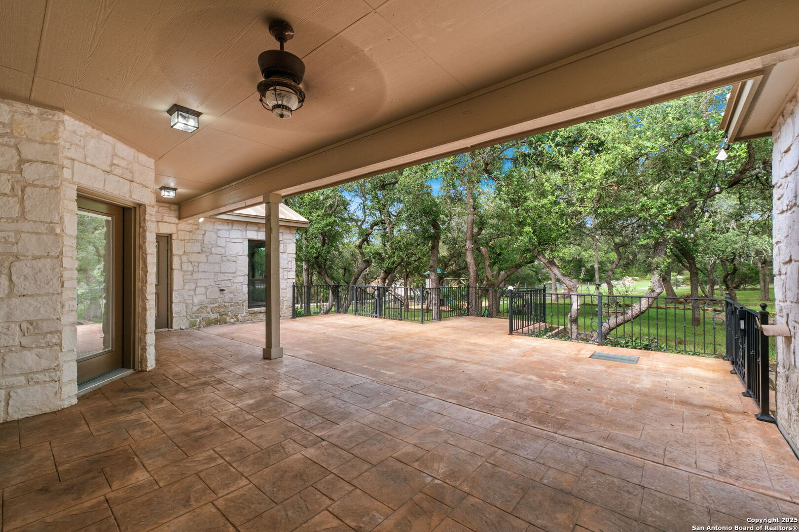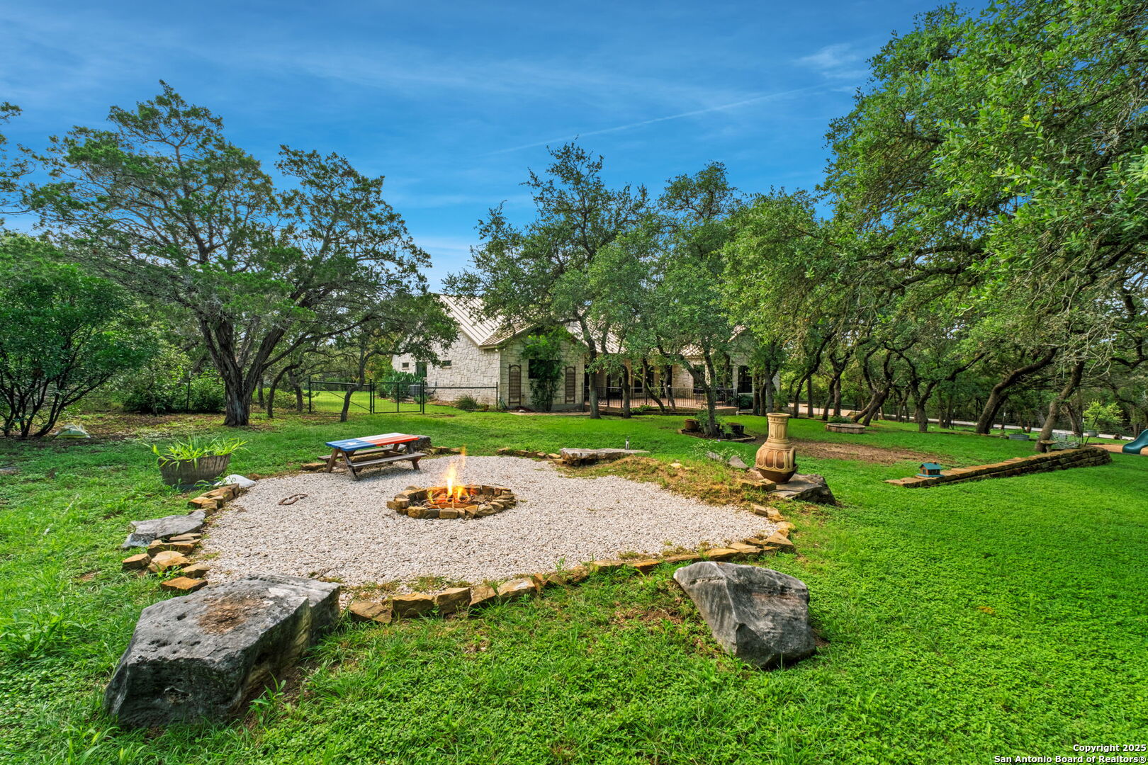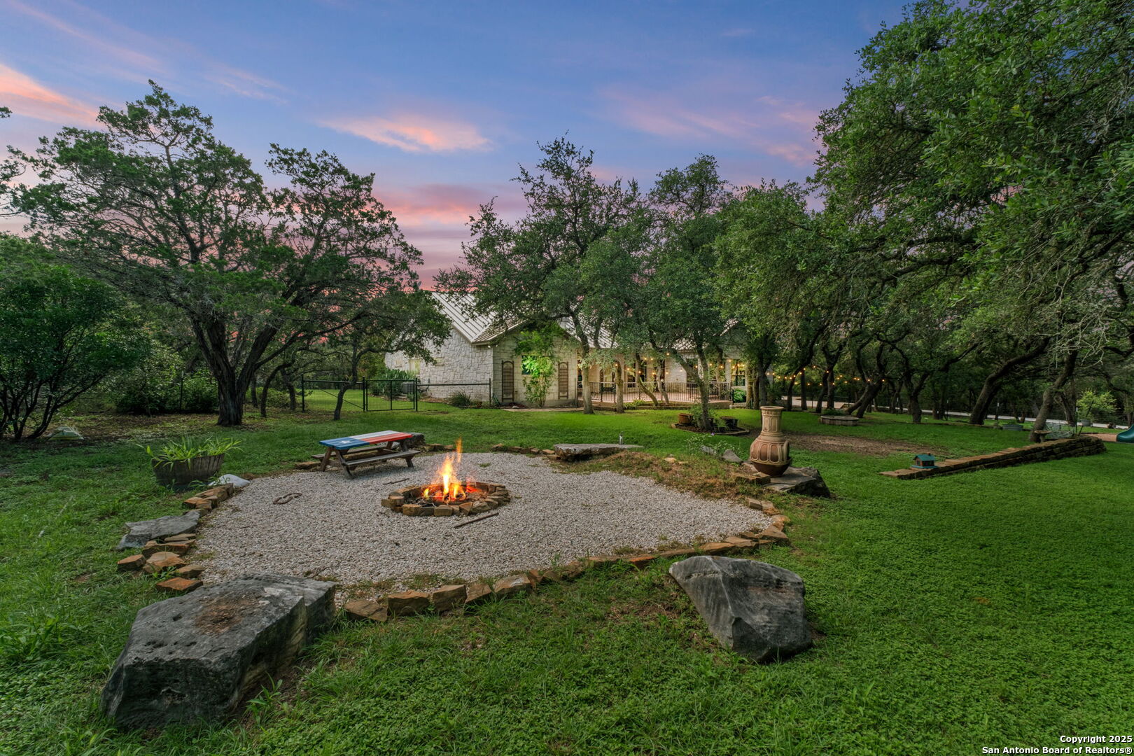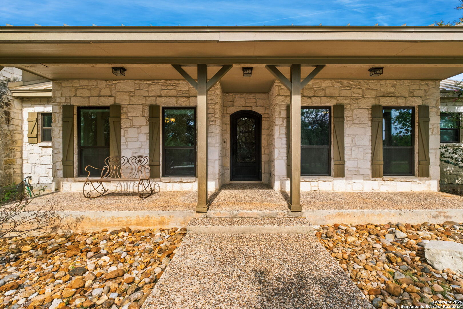 Welcome to 16134 San Cayetano, an exceptional retreat tucked away in the gated community of Retablo Ranch in Helotes, Texas. This meticulously maintained property offers the perfect blend of updated comfort, privacy, and Hill Country charm, all set on a picturesque 3.68-acre lot that backs directly to the breathtaking Government Canyon State Natural Area. Beyond the neighborhood's secure entrance, the property features its own private automatic gate, adding an extra layer of privacy and convenience. The residence has been thoughtfully enhanced with newly installed windows, a recently replaced well pump, and an updated septic system. The home also benefits from three central AC/Heat pump systems and two recently replaced 40 and 50-gallon electric water heaters, ensuring year-round comfort and efficiency. Inside, the home showcases a beautiful open kitchen designed for both daily living and entertaining. Granite countertops complement the sleek stainless steel appliances, which include a double oven and an induction cooktop, perfect for the inspired home chef. The kitchen flows effortlessly into the spacious living and dining areas, creating a warm, inviting space for gatherings. The master suite serves as a luxurious private retreat, complete with a dual sink vanity, large walk-in shower, Jacuzzi tub, and his and hers walk-in closets. Two secondary bedrooms share a generously sized bathroom with dual vanities and a shower-tub combo, while the expansive fourth bedroom includes its own private full bath and walk-in closet, making it ideal for guests or multi-generational living. Above the garage, a large bonus room with rich hardwood floors, a private bathroom with shower, and a balcony offers flexibility for a game room, studio, or home office. Outdoor living shines with a spacious raised stamped and stained concrete back porch, complete with wrought iron railing, perfect for outdoor cooking and entertaining. The 25x30 back deck offers additional space for gatherings or quiet evenings enjoying the Texas sunsets. The oversized two-car garage includes a storage closet, workbench, and dedicated work area for hobbies or projects. A standout feature of the property is the impressive 1,800 square foot detached shop, garage, entertainment space, or potential mother-in-law suite. Complete with its own central AC/Heat and hot water heater, this versatile structure offers endless possibilities and could easily be converted into a secondary home, guest quarters, or private studio. Additional conveniences include a water softener located in the well house and a reverse osmosis system at the kitchen sink. Located within the highly acclaimed Northside Independent School District, this exceptional property offers the best of country living with the convenience of nearby shopping, dining, and schools. Discover your private escape at 16134 San Cayetano, where thoughtful updates, flexible living spaces, and natural beauty come together.