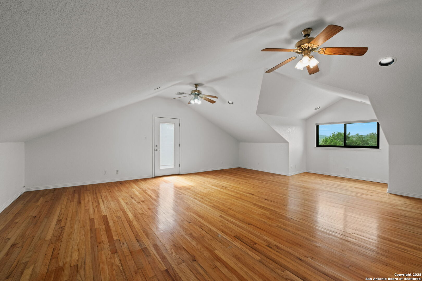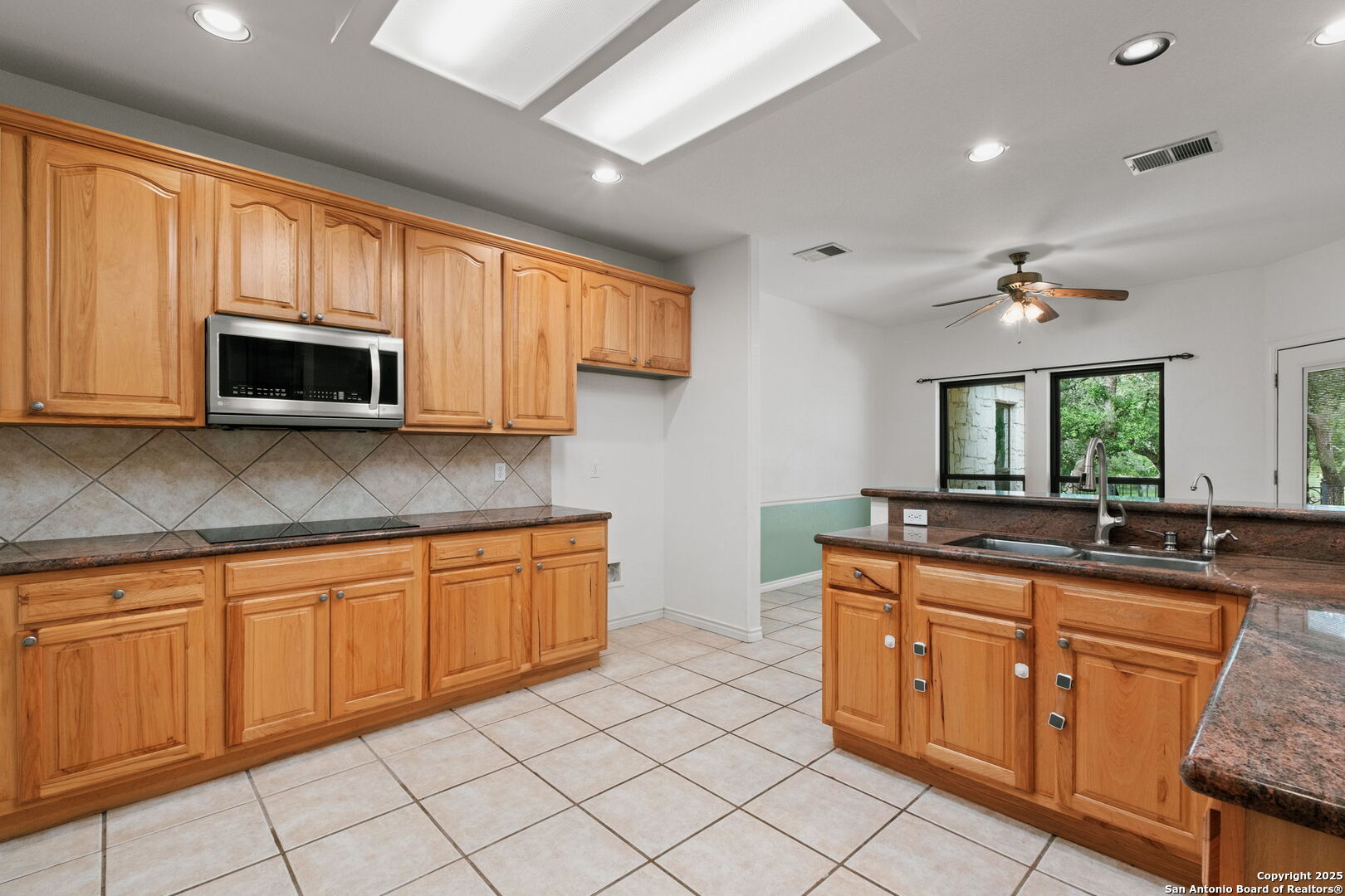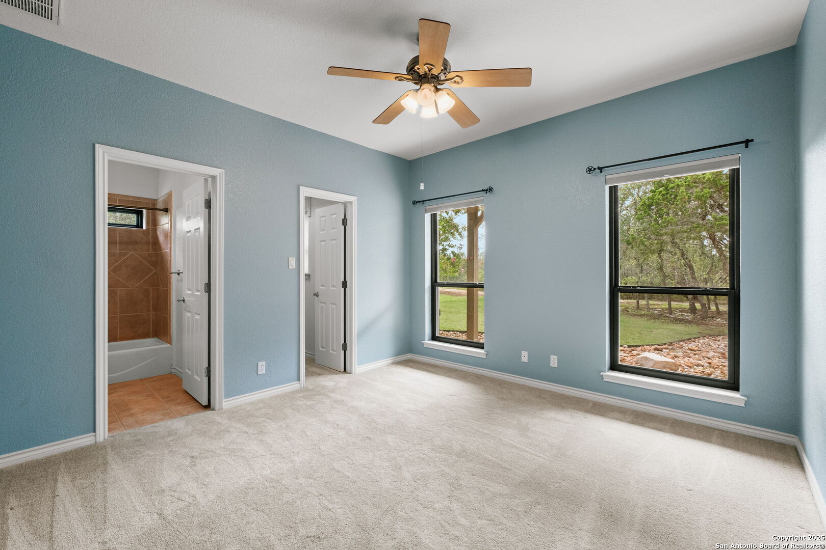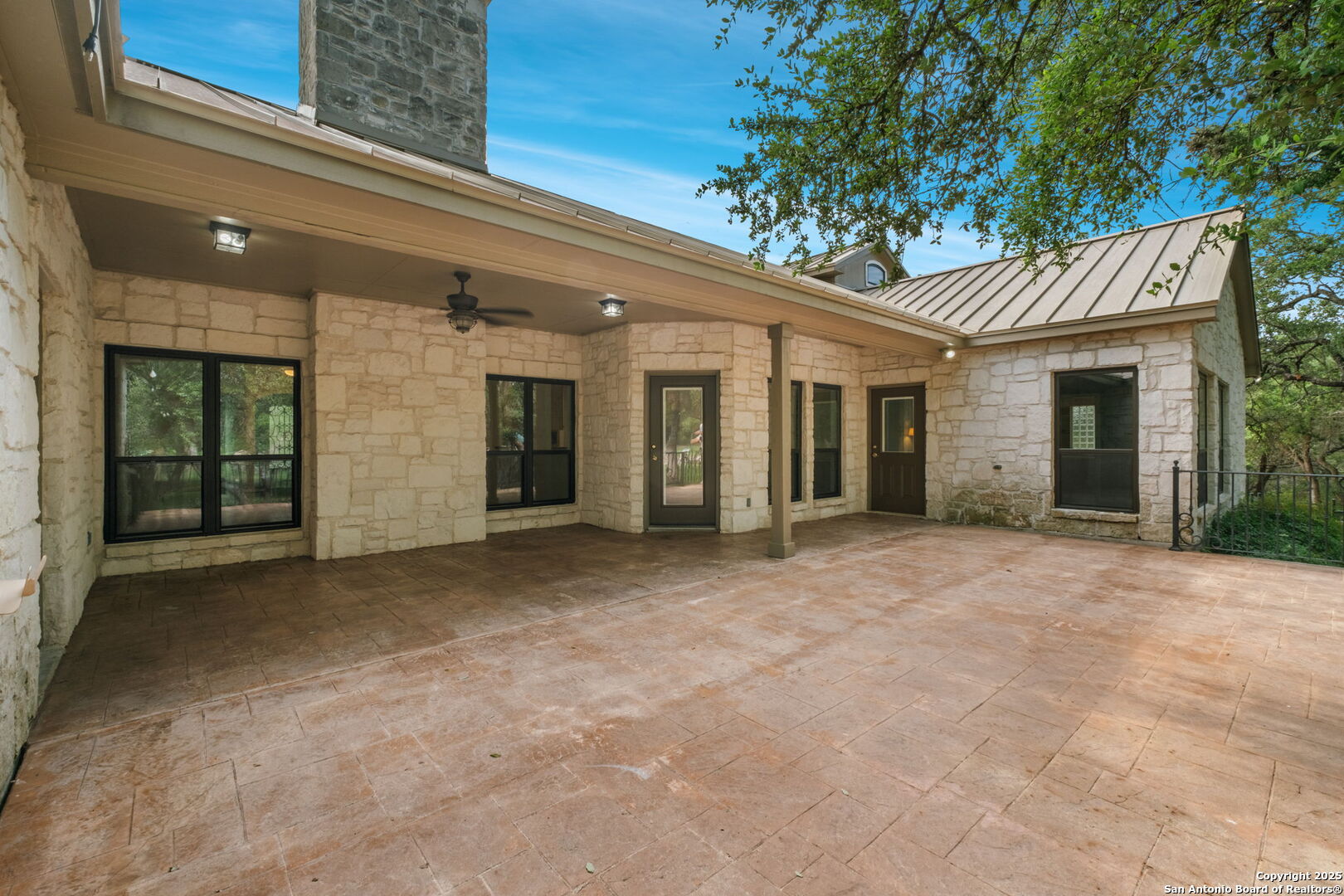Welcome to 16134 San Cayetano, an exceptional retreat tucked away in the gated community of Retablo Ranch in Helotes, Texas. This meticulously maintained property offers the perfect blend of updated comfort, privacy, and Hill Country charm, all set on a picturesque 3.68-acre lot that backs directly to the breathtaking Government Canyon State Natural Area. Beyond the neighborhood's secure entrance, the property features its own private automatic gate, adding an extra layer of privacy and convenience. The residence has been thoughtfully enhanced with newly installed windows, a recently replaced well pump, and an updated septic system. The home also benefits from three central AC/Heat pump systems and two recently replaced 40 and 50-gallon electric water heaters, ensuring year-round comfort and efficiency. Inside, the home showcases a beautiful open kitchen designed for both daily living and entertaining. Granite countertops complement the sleek stainless steel appliances, which include a double oven and an induction cooktop, perfect for the inspired home chef. The kitchen flows effortlessly into the spacious living and dining areas, creating a warm, inviting space for gatherings. The master suite serves as a luxurious private retreat, complete with a dual sink vanity, large walk-in shower, Jacuzzi tub, and his and hers walk-in closets. Two secondary bedrooms share a generously sized bathroom with dual vanities and a shower-tub combo, while the expansive fourth bedroom includes its own private full bath and walk-in closet, making it ideal for guests or multi-generational living. Above the garage, a large bonus room with rich hardwood floors, a private bathroom with shower, and a balcony offers flexibility for a game room, studio, or home office. Outdoor living shines with a spacious raised stamped and stained concrete back porch, complete with wrought iron railing, perfect for outdoor cooking and entertaining. The 25x30 back deck offers additional space for gatherings or quiet evenings enjoying the Texas sunsets. The oversized two-car garage includes a storage closet, workbench, and dedicated work area for hobbies or projects. A standout feature of the property is the impressive 1,800 square foot detached shop, garage, entertainment space, or potential mother-in-law suite. Complete with its own central AC/Heat and hot water heater, this versatile structure offers endless possibilities and could easily be converted into a secondary home, guest quarters, or private studio. Additional conveniences include a water softener located in the well house and a reverse osmosis system at the kitchen sink. Located within the highly acclaimed Northside Independent School District, this exceptional property offers the best of country living with the convenience of nearby shopping, dining, and schools. Discover your private escape at 16134 San Cayetano, where thoughtful updates, flexible living spaces, and natural beauty come together.