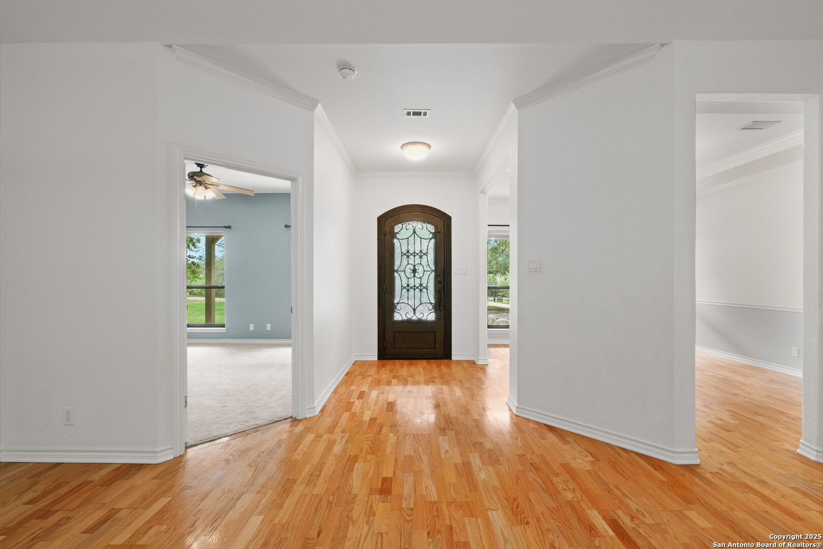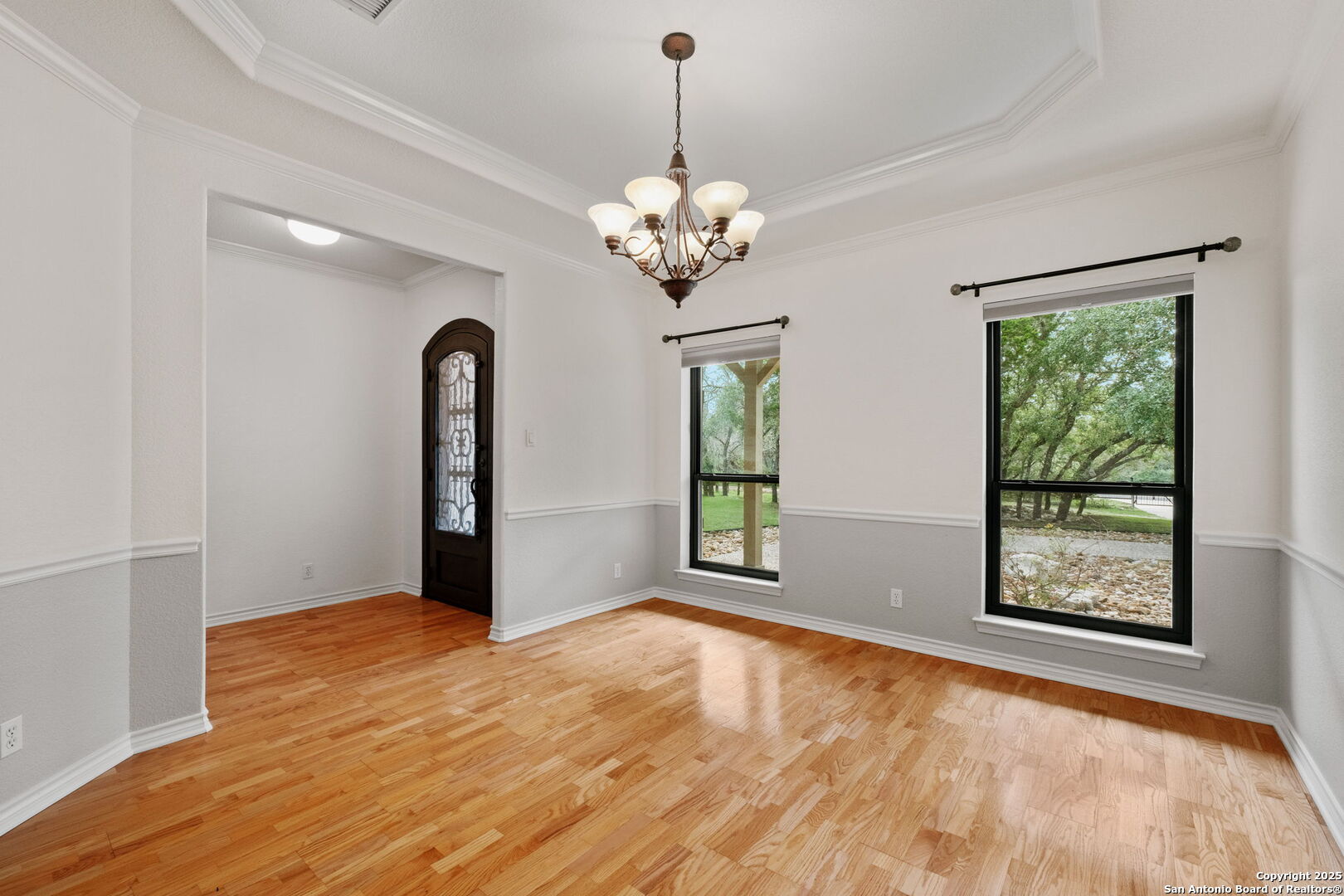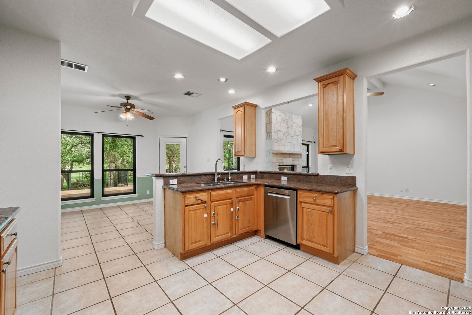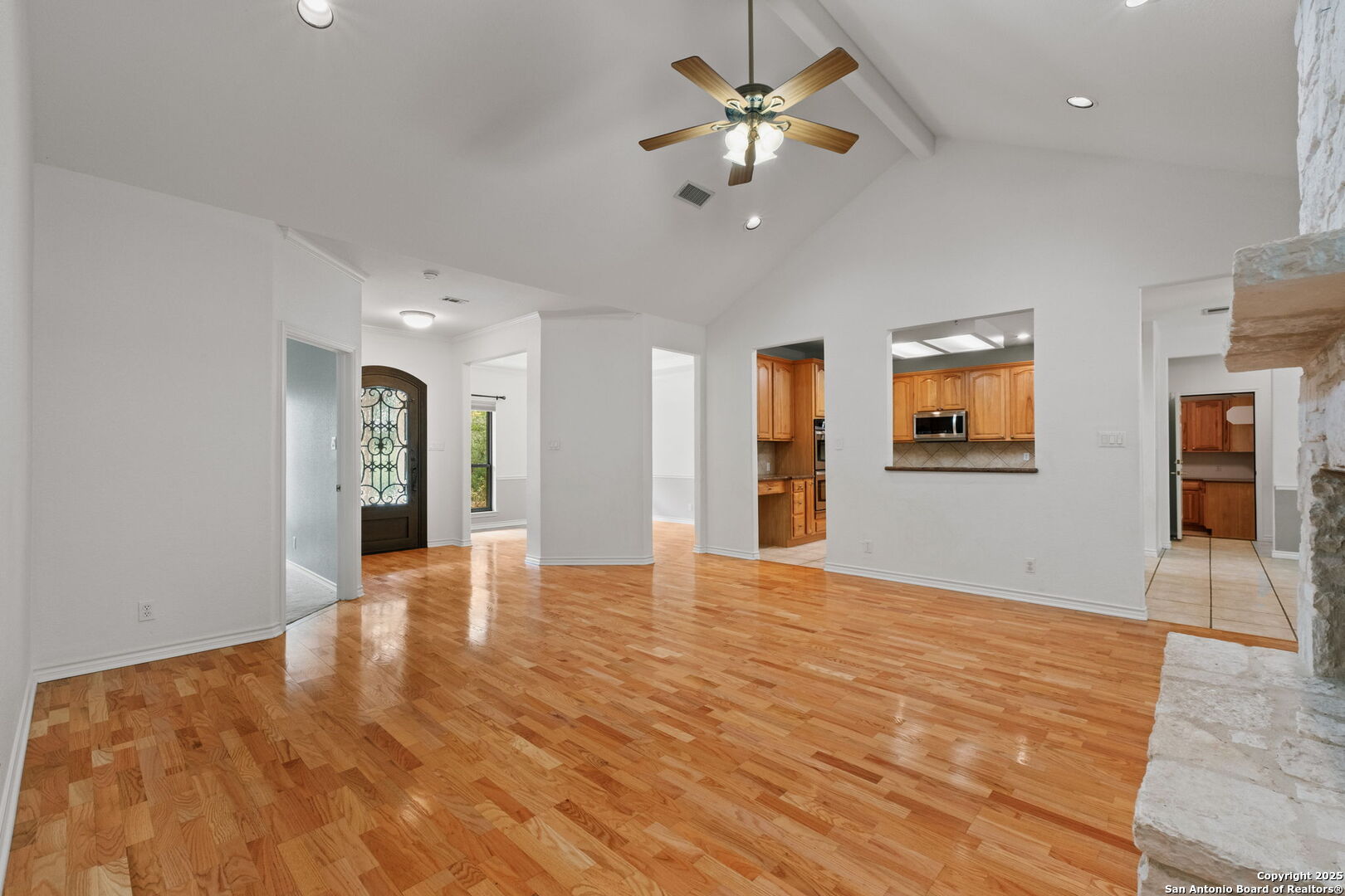 Welcome to 16134 San Cayetano, an exceptional retreat tucked away in the gated community of Retablo Ranch in Helotes, Texas. This meticulously maintained property offers the perfect blend of updated comfort, privacy, and Hill Country charm, all set on a picturesque 3.68-acre lot that backs directly to the breathtaking Government Canyon State Natural Area. Beyond the neighborhood's secure entrance, the property features its own private automatic gate, adding an extra layer of privacy and convenience. The residence has been thoughtfully enhanced with newly installed windows, a recently replaced well pump, and an updated septic system. The home also benefits from three central AC/Heat pump systems and two recently replaced 40 and 50-gallon electric water heaters, ensuring year-round comfort and efficiency. Inside, the home showcases a beautiful open kitchen designed for both daily living and entertaining. Granite countertops complement the sleek stainless steel appliances, which include a double oven and an induction cooktop, perfect for the inspired home chef. The kitchen flows effortlessly into the spacious living and dining areas, creating a warm, inviting space for gatherings. The master suite serves as a luxurious private retreat, complete with a dual sink vanity, large walk-in shower, Jacuzzi tub, and his and hers walk-in closets. Two secondary bedrooms share a generously sized bathroom with dual vanities and a shower-tub combo, while the expansive fourth bedroom includes its own private full bath and walk-in closet, making it ideal for guests or multi-generational living. Above the garage, a large bonus room with rich hardwood floors, a private bathroom with shower, and a balcony offers flexibility for a game room, studio, or home office. Outdoor living shines with a spacious raised stamped and stained concrete back porch, complete with wrought iron railing, perfect for outdoor cooking and entertaining. The 25x30 back deck offers additional space for gatherings or quiet evenings enjoying the Texas sunsets. The oversized two-car garage includes a storage closet, workbench, and dedicated work area for hobbies or projects. A standout feature of the property is the impressive 1,800 square foot detached shop, garage, entertainment space, or potential mother-in-law suite. Complete with its own central AC/Heat and hot water heater, this versatile structure offers endless possibilities and could easily be converted into a secondary home, guest quarters, or private studio. Additional conveniences include a water softener located in the well house and a reverse osmosis system at the kitchen sink. Located within the highly acclaimed Northside Independent School District, this exceptional property offers the best of country living with the convenience of nearby shopping, dining, and schools. Discover your private escape at 16134 San Cayetano, where thoughtful updates, flexible living spaces, and natural beauty come together.