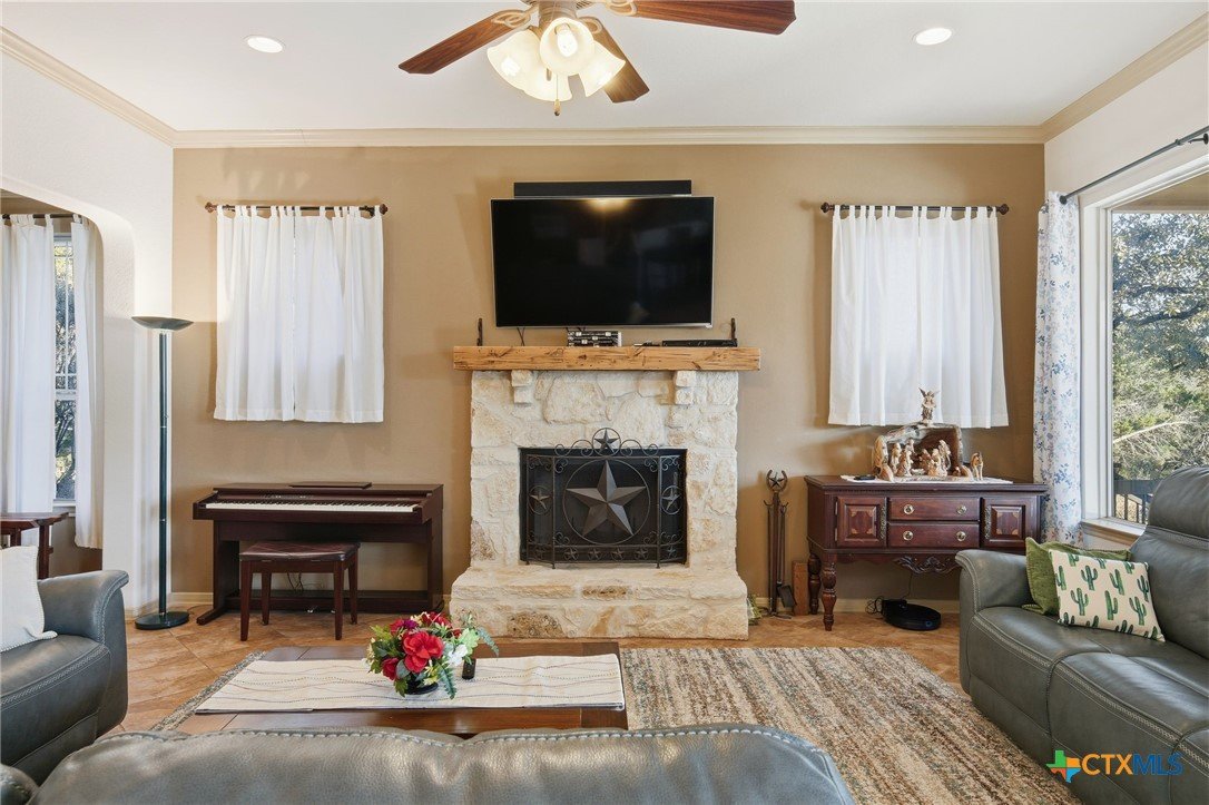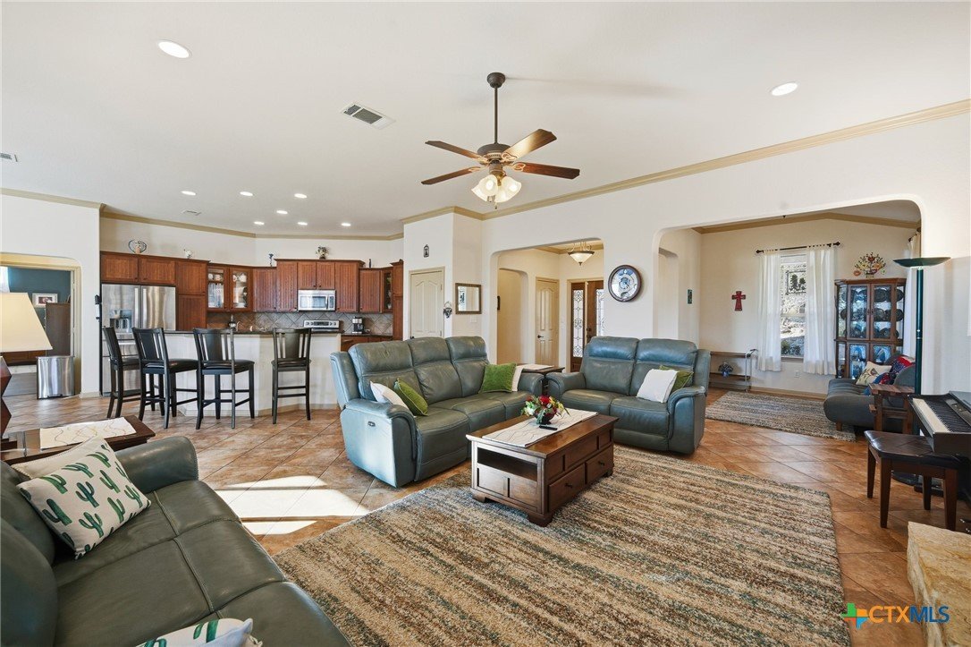 Rare opportunity to own a stunning one-story waterfront home on 2.18 beautifully landscaped acres. This immaculate, one-owner property offers 3 bedrooms, 2 baths, plus a versatile office/flex room conveniently located off the hall. Designed with a desirable split-bedroom floor plan, the open-concept living, dining, and kitchen areas provide the perfect space for entertaining and everyday living. Enjoy no carpet throughout for easy maintenance and a clean, modern feel. The spacious kitchen flows seamlessly into the main living area, creating a bright and welcoming atmosphere. Large windows capture natural light and showcase the serene waterfront views. Step outside to relax and unwind while taking in the peaceful setting. The property features gorgeous landscaping and ample extra parking with access from the side and extending down the side of the home-ideal for guests, recreational vehicles, or additional storage needs. Pride of ownership shines throughout this rare waterfront opportunity - acreage, views, and immaculate condition all in one exceptional property.