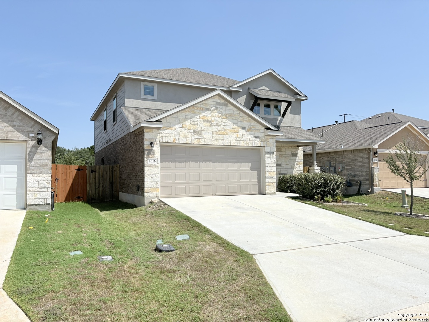 Embrace the timeless elegance of 1616 Stone House in New Braunfels, TX, where refined living harmonizes with serene surroundings. This spacious 2,253 sq ft home blends comfort and style, perfect for those who cherish quality and space. Extended back porch. With no neighbors at the back, experience tranquility in its purest form. The heart of the home is adorned with stunning granite countertops, offering a sleek and functional workspace for your culinary adventures. Featuring four bedrooms, this residence provides ample privacy and versatility for rest or creativity. Two full baths and a charming half bath are thoughtfully designed to meet modern needs. The seamless layout invites gatherings and cherished moments with loved ones. Natural light floods the interiors, emphasizing exquisite finishes and fostering a warm, inviting atmosphere throughout. Nestled in a desirable neighborhood, this property ensures peace while remaining close to local amenities. Outside, picturesque surroundings create the ideal backdrop for leisurely strolls or outdoor activities. Discover the perfect fusion of luxury and comfort at 1616 Stone House, where every detail elevates your living experience. This exceptional subdivision boasts a wonderful pool, workout facility, and play area. The landlord will be managing after move-in.