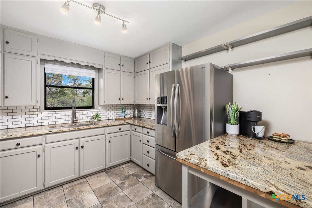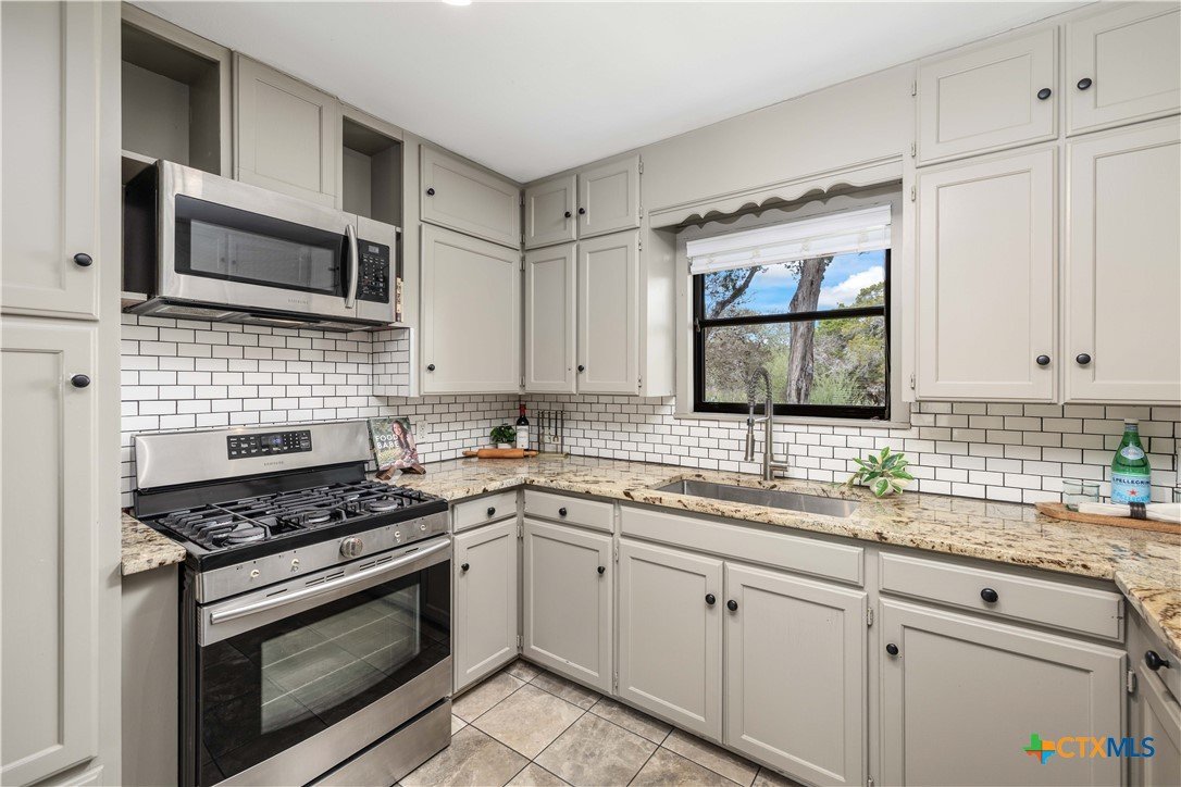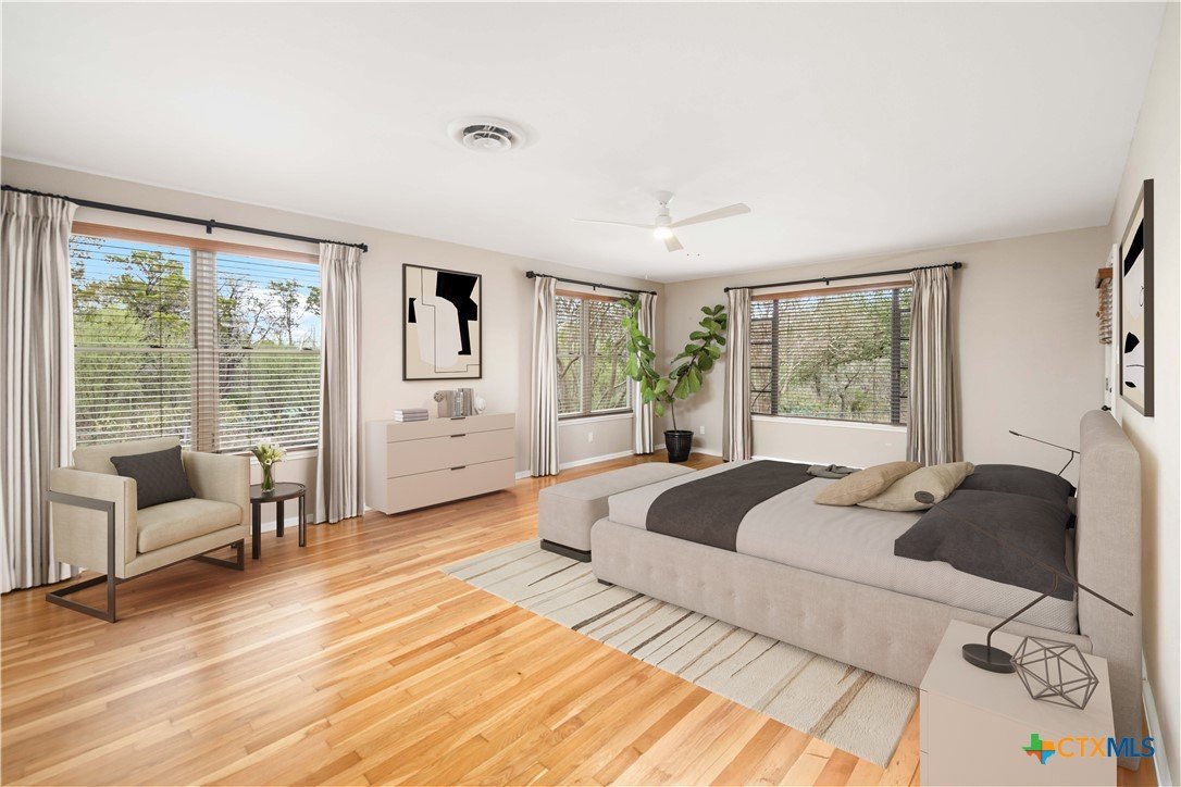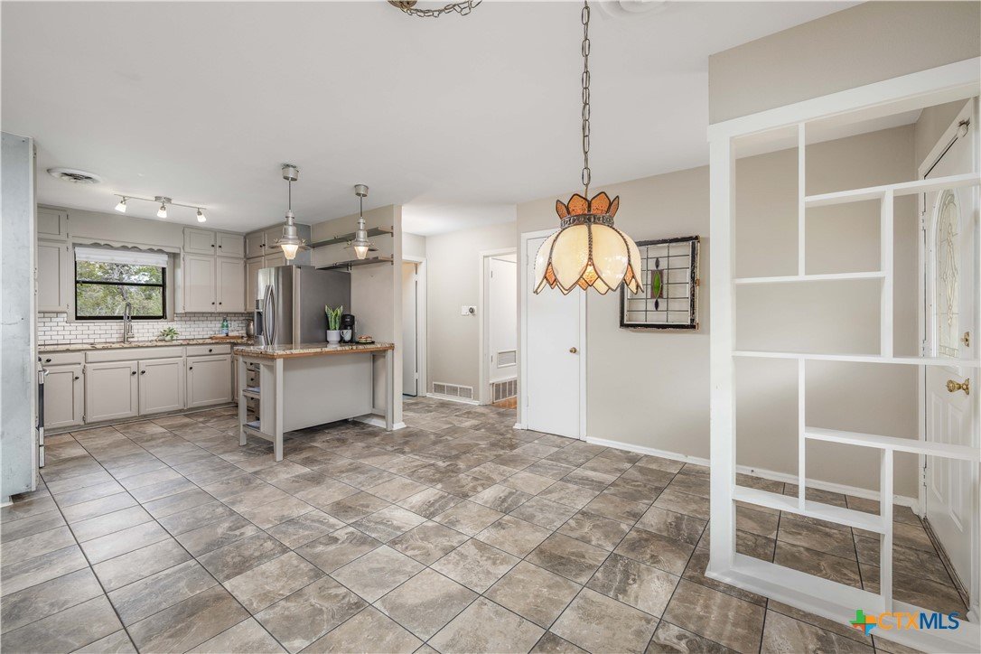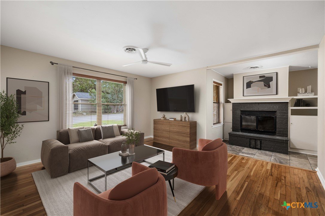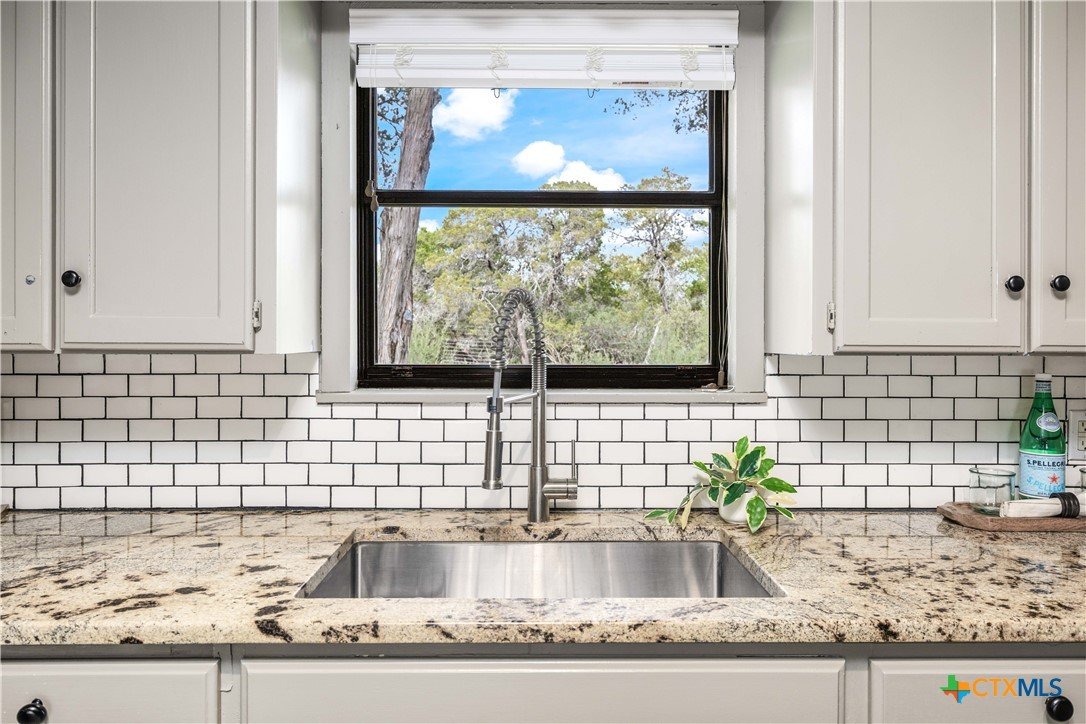 Situated on the Hill above Landa Park, this well-located New Braunfels home offers a rare combination of space, privacy, and proximity to one of the city's most beloved destinations. Tucked away at the end of a dead-end street with no back neighbors, the generous lot provides a lush, landscaped yard complete with a sprinkler system, gutters, and mature greenery that creates a true sense of retreat, without sacrificing convenience. Inside, the 3-bedroom, 2-bath layout features wood floors and hard surfaces throughout, spacious rooms, and two separate entryways that add flexibility and character. The living room is anchored by a striking wood-burning fireplace, creating a warm and inviting focal point. The kitchen is thoughtfully designed with granite countertops, abundant cabinetry, and a walk-in pantry, offering both function and storage. Step outside to enjoy the patio slab and pergola, ideal for relaxing or entertaining in the beautifully maintained backyard. The home backs up to Panther Canyon Trail, which covers over 49 acres and is home to many native plants and wildlife. No HOA, prime location near Landa Park, downtown New Braunfels, and local amenities; this is a standout opportunity in one of the area's most recognizable and desirable settings.