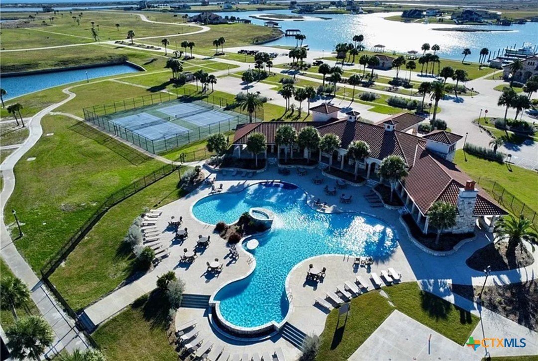 Majestic sunsets await from this Southwest facing 60’ waterfront lot on Vista Merlot! Build today, build tomorrow! No time restrictions. 2,100 sf minimum. Build boat house and enjoy amenities until ready to build. Mediterranean Style Construction, Stucco / rock construction. No rentals, please. Family time and summer fun with pool, tennis and pickle back court, kids play area, fishing piers! Duck hunt? Don’t forget to add a fireplace (inside and outside)! See you in POC!