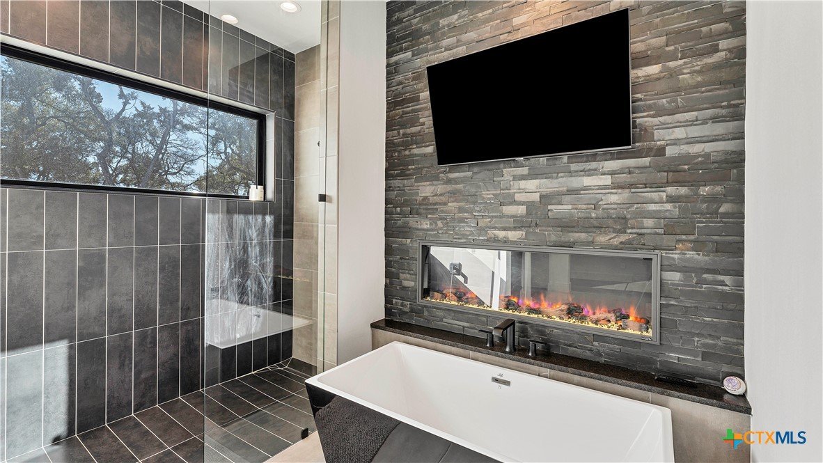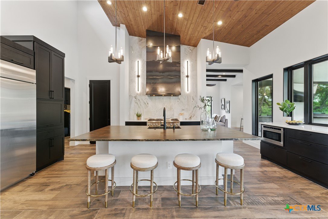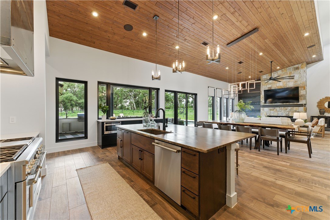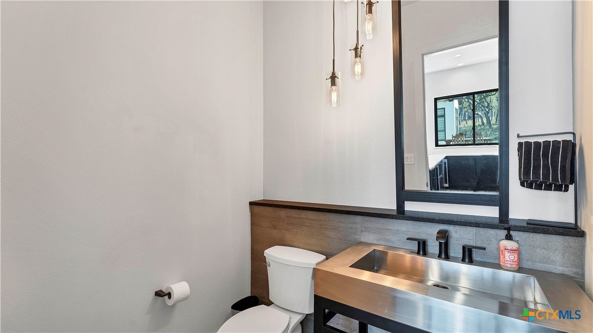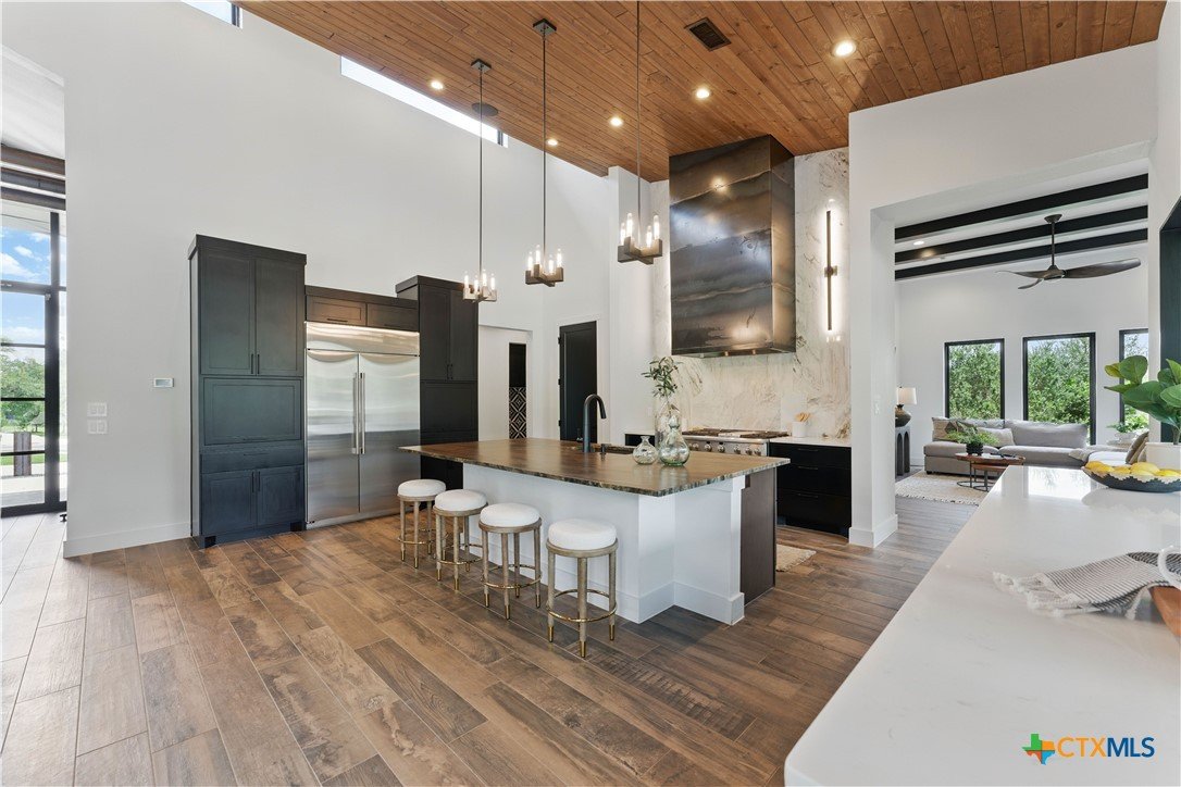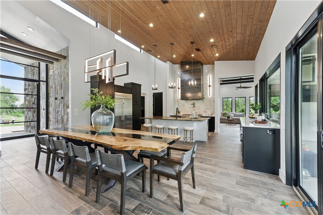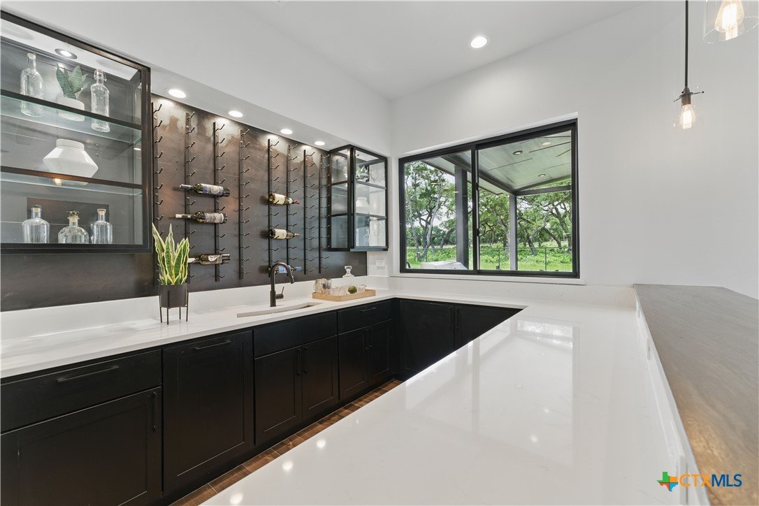 Welcome to 1621 Vintage Way, an absolutely stunning home on 2 acres in Vintage Oaks, "behind the gates". This 4 bedroom, 3.5 bath home, 3700+ sq ft defines New Braunfels Hill Country luxury living with custom wood beams and ceilings to the stone and steel accents. As you enter into this home through the steel pivot door, the entryway is a work of art alone with the stone walls and custom lighting features. The living/dining and kitchen space is perfect for everyday living with views of the back yard, patio and pool. Beyond the kitchen is a large game room with a wet bar and the powder bath, it also accesses the extra 1 car garage, perfect for the golf cart or workshop space. On the other side of the kitchen are 2 guest bedrooms with a jack-n-Jill bath, the laundry room and drop zone for coats and backpacks. On the other side of the house is the master suite, the office and another guestroom with it's own bath. The master suite has a custom ceiling with wood beams with steel accents, the luxurious master bath has his and her vanities, a walk in glassed shower and a soaker tub with an electric fireplace perfect for relaxing. The master closet would be hard to fill up! Head out to the back yard and you'll find a pool and hot tub, outdoor kitchen, fire pit and in-ground trampoline! Sprinkler system, beautiful landscaping with circular driveway, 2 car oversized garage with bump out that can hold a suburban type vehicle, plus an additional single car garage. Vintage Oaks neighborhood features a club house with resort style swimming pool plus lazy river pool, 7800+ sq ft fitness club, playground, tennis courts, baseball field, a soccer field, 5 miles of jogging/walking trails.