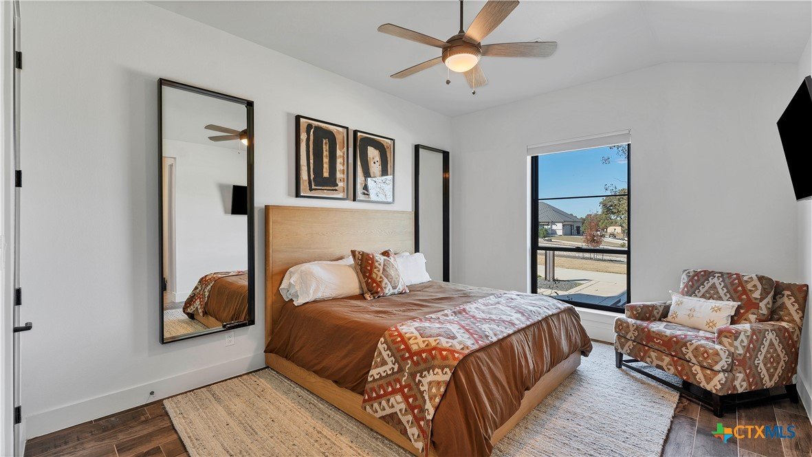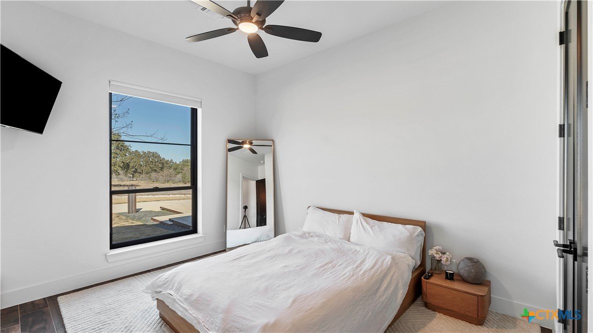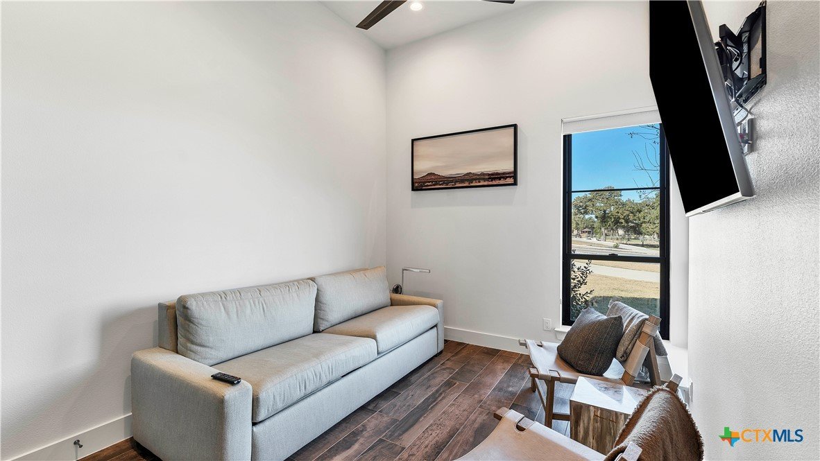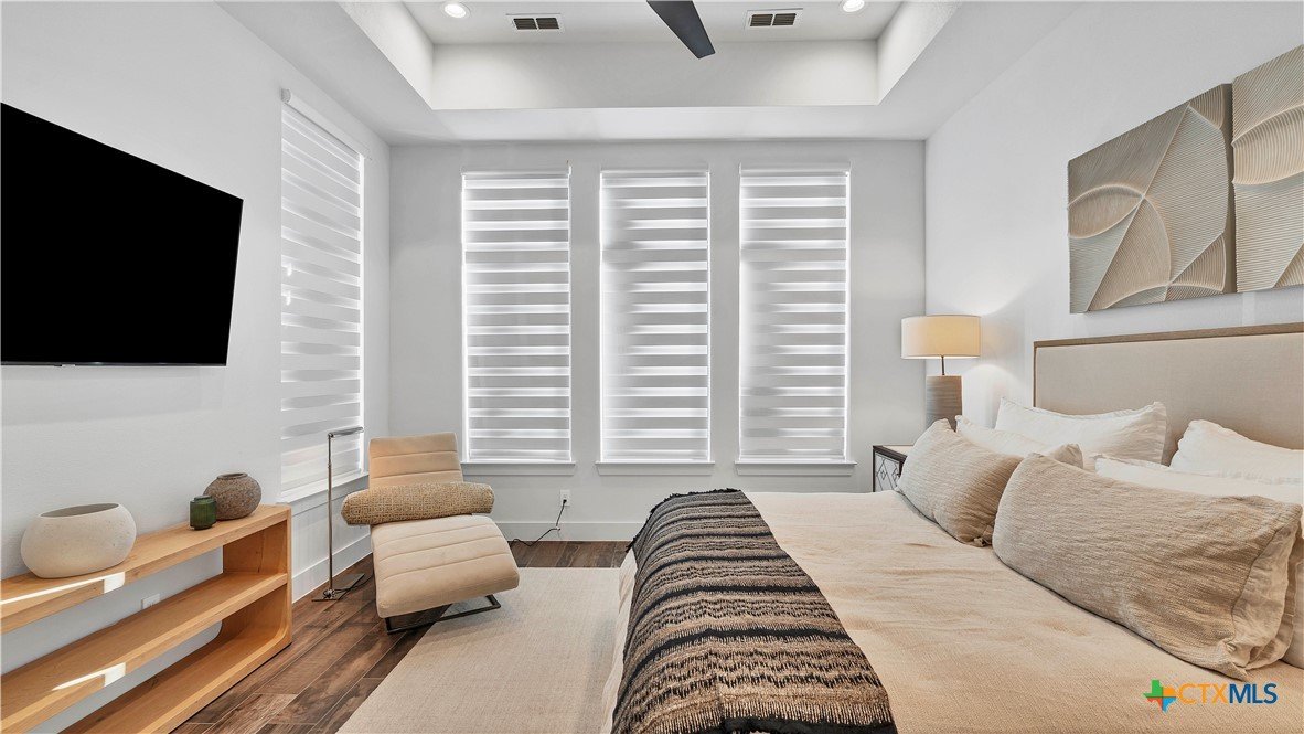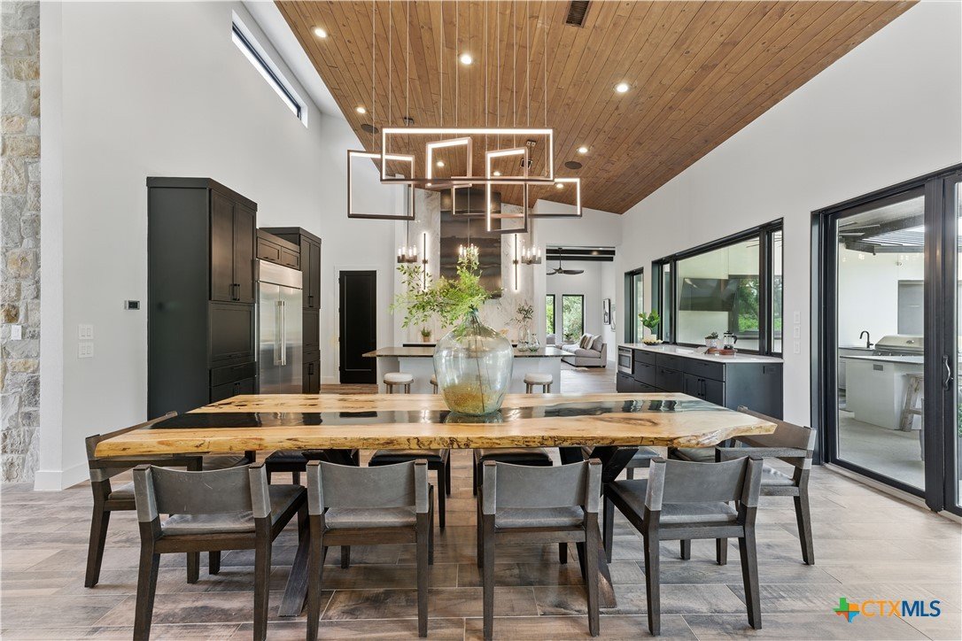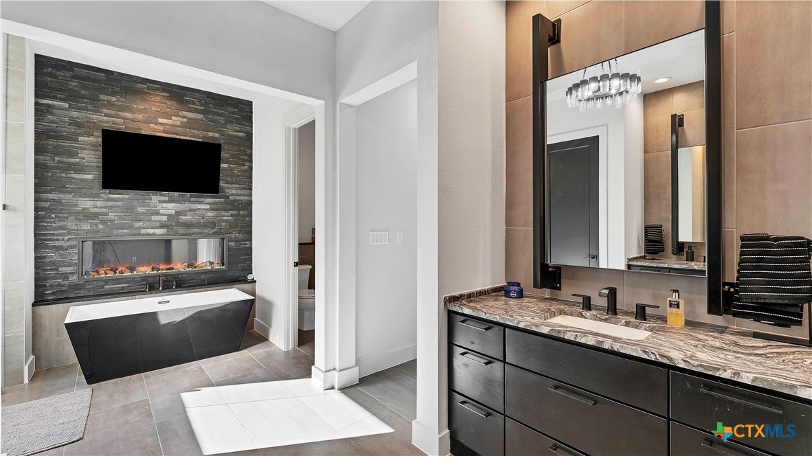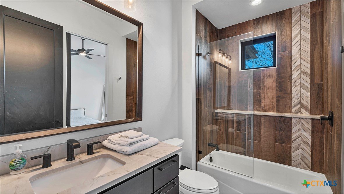 Welcome to 1621 Vintage Way, an absolutely stunning home on 2 acres in Vintage Oaks, "behind the gates". This 4 bedroom, 3.5 bath home, 3700+ sq ft defines New Braunfels Hill Country luxury living with custom wood beams and ceilings to the stone and steel accents. As you enter into this home through the steel pivot door, the entryway is a work of art alone with the stone walls and custom lighting features. The living/dining and kitchen space is perfect for everyday living with views of the back yard, patio and pool. Beyond the kitchen is a large game room with a wet bar and the powder bath, it also accesses the extra 1 car garage, perfect for the golf cart or workshop space. On the other side of the kitchen are 2 guest bedrooms with a jack-n-Jill bath, the laundry room and drop zone for coats and backpacks. On the other side of the house is the master suite, the office and another guestroom with it's own bath. The master suite has a custom ceiling with wood beams with steel accents, the luxurious master bath has his and her vanities, a walk in glassed shower and a soaker tub with an electric fireplace perfect for relaxing. The master closet would be hard to fill up! Head out to the back yard and you'll find a pool and hot tub, outdoor kitchen, fire pit and in-ground trampoline! Sprinkler system, beautiful landscaping with circular driveway, 2 car oversized garage with bump out that can hold a suburban type vehicle, plus an additional single car garage. Vintage Oaks neighborhood features a club house with resort style swimming pool plus lazy river pool, 7800+ sq ft fitness club, playground, tennis courts, baseball field, a soccer field, 5 miles of jogging/walking trails.