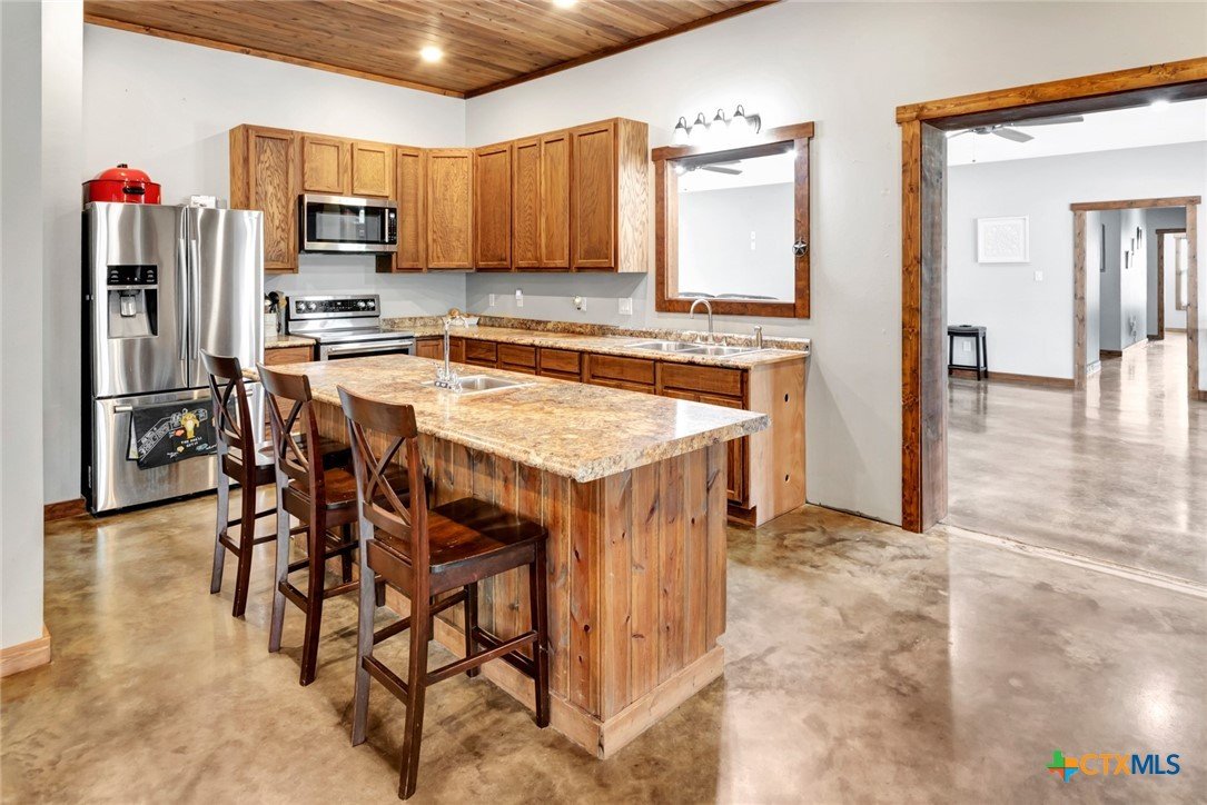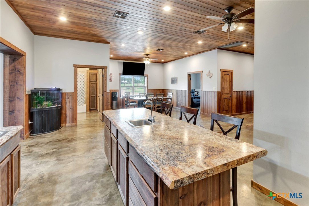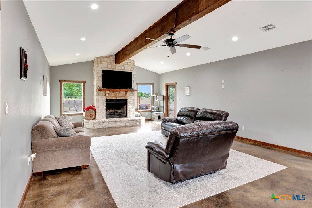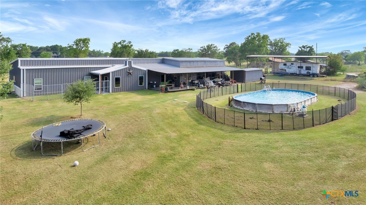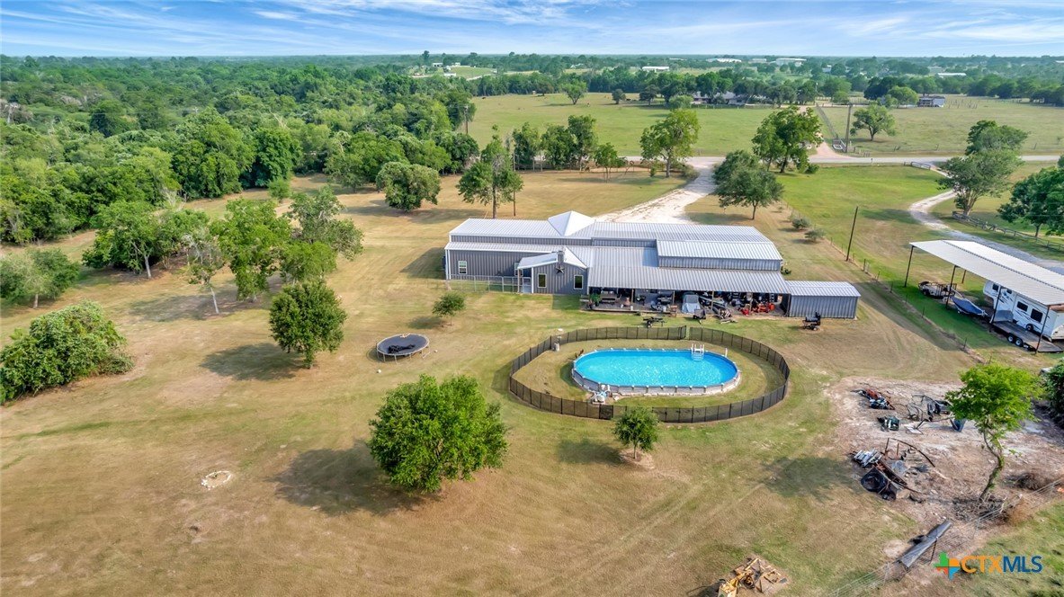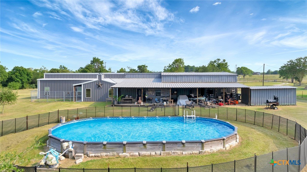 Nestled on a picturesque 10-acre tract that borders a serene creek, this stunning barndominium offers the perfect blend of rustic charm and modern luxury. Spanning over 4,200 square feet, the spacious home features 6 generously sized bedrooms and 4.5 well-appointed bathrooms, including multiple walk-in closets for ample storage. The heart of the home is a warm and inviting living area anchored by a beautiful stone wood-burning fireplace—perfect for cozy nights in. Outdoors, you'll find both covered front and back porches that invite you to relax and take in the tranquil views of mature, shady trees and a sparkling pool, ideal for hot summer days. Additional highlights include an oversized carport, as well as an expansive garage/shop area that provides endless possibilities for projects, hobbies, or extra storage. This unique property offers privacy, natural beauty, and an abundance of space both inside and out—truly a rare find for anyone seeking a peaceful country lifestyle with all the comforts of home.