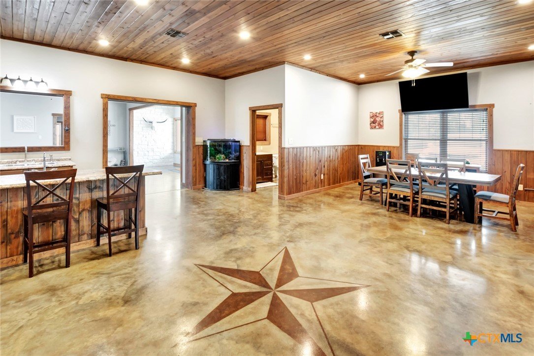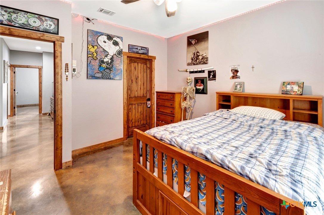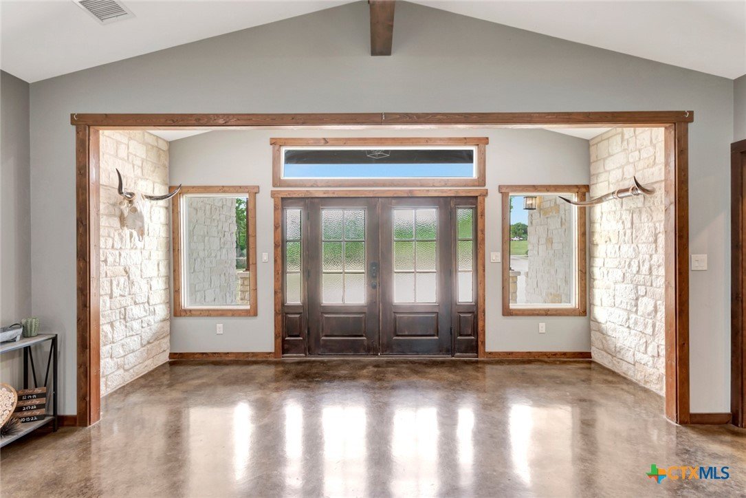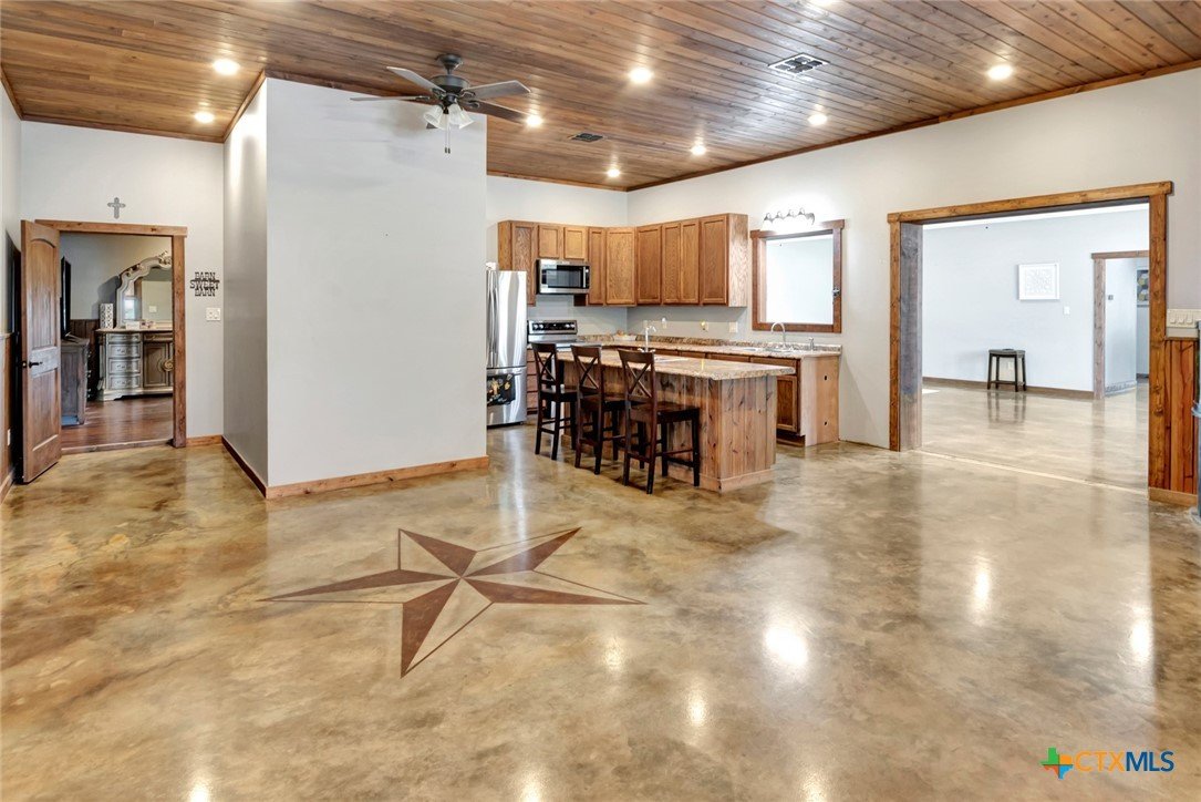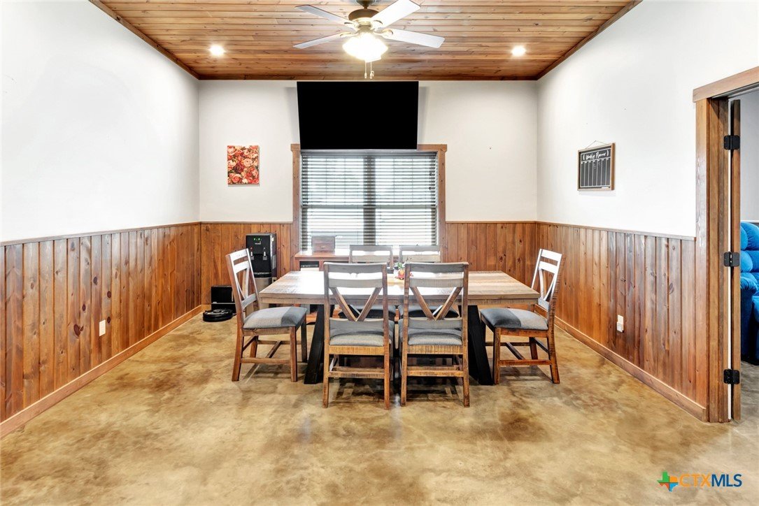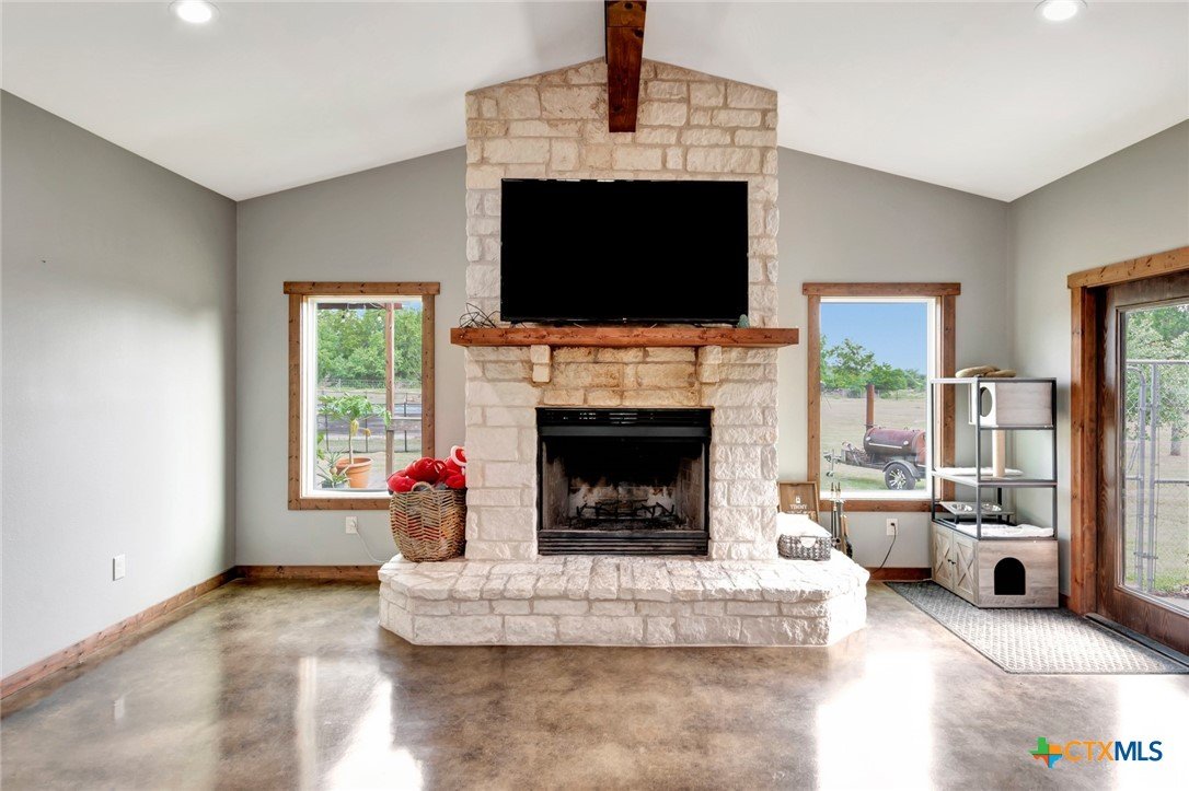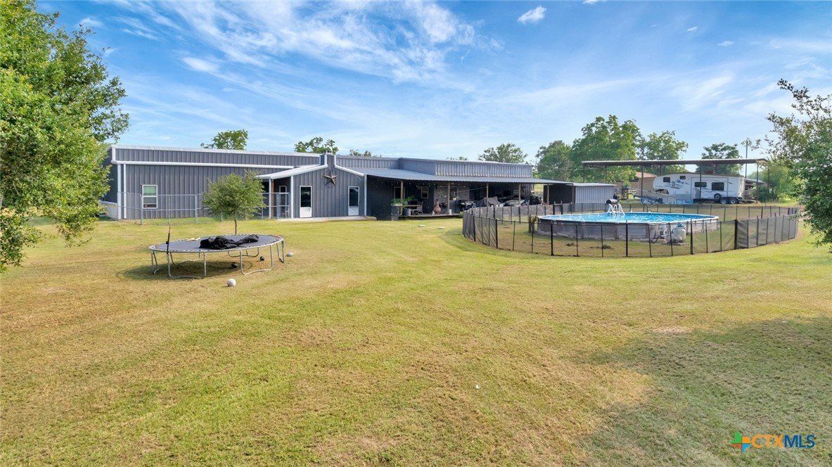 Nestled on a picturesque 10-acre tract that borders a serene creek, this stunning barndominium offers the perfect blend of rustic charm and modern luxury. Spanning over 4,200 square feet, the spacious home features 6 generously sized bedrooms and 4.5 well-appointed bathrooms, including multiple walk-in closets for ample storage. The heart of the home is a warm and inviting living area anchored by a beautiful stone wood-burning fireplace—perfect for cozy nights in. Outdoors, you'll find both covered front and back porches that invite you to relax and take in the tranquil views of mature, shady trees and a sparkling pool, ideal for hot summer days. Additional highlights include an oversized carport, as well as an expansive garage/shop area that provides endless possibilities for projects, hobbies, or extra storage. This unique property offers privacy, natural beauty, and an abundance of space both inside and out—truly a rare find for anyone seeking a peaceful country lifestyle with all the comforts of home.