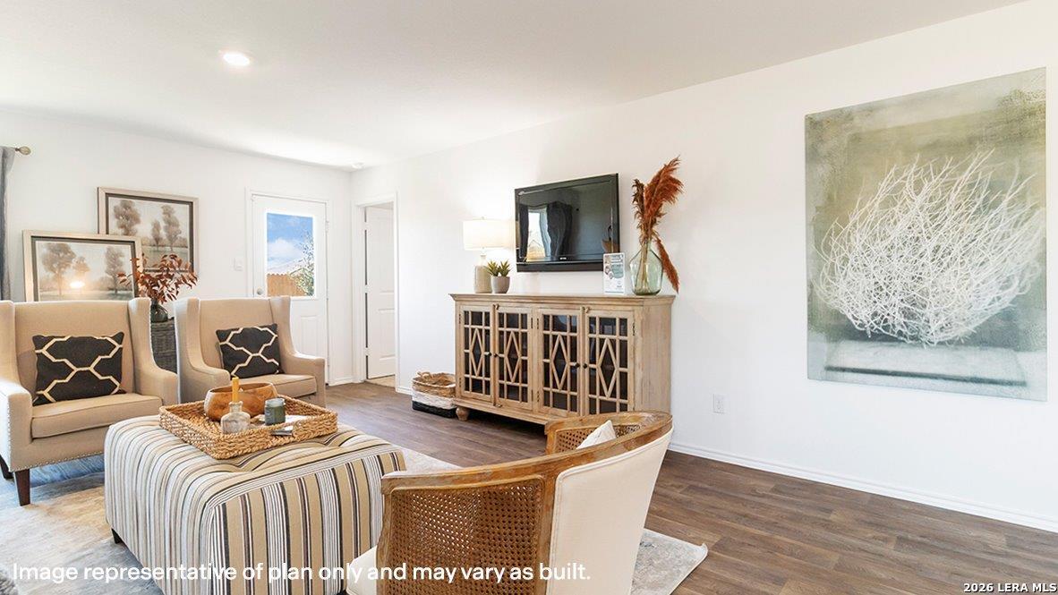The Estero is a charming one-story home featured in Redbird Ranch in San Antonio, TX. Featuring 2 classic front exteriors, this 4 bedroom, 2 bathroom home also offers 1586 square feet of living space and a 2-car garage. A front porch (per plan) welcomes you into the home and opens to the gourmet kitchen which includes quartz counter tops, shaker style cabinets, stainless steel appliances and an open concept floorplan with the kitchen flowing seamlessly into the dining room and living room. The main bedroom has an attractive ensuite bathroom that features a quartz vanity countertop, shaker style cabinetry and a spacious tiled walk-in shower. Enjoy additional storage with a large walk-in closet in the primary bedroom. Your secondary bedrooms all feature quality carpet flooring and a closet, and can be used as bedrooms, offices, work out spaces or other bonus rooms. The possibilities are endless with The Estero floor plan. Additional features include sheet vinyl flooring in entry, living room, and all wet areas, quartz counter tops in all bathrooms and HOME IS CONNECTED base package. Using one central hub that talks to all the devices in your home, you can control the lights, thermostat and locks, all from your cellular device.