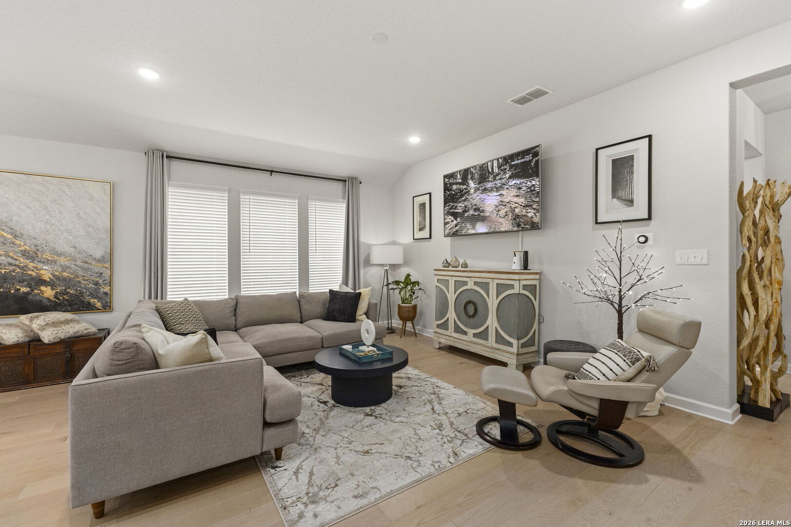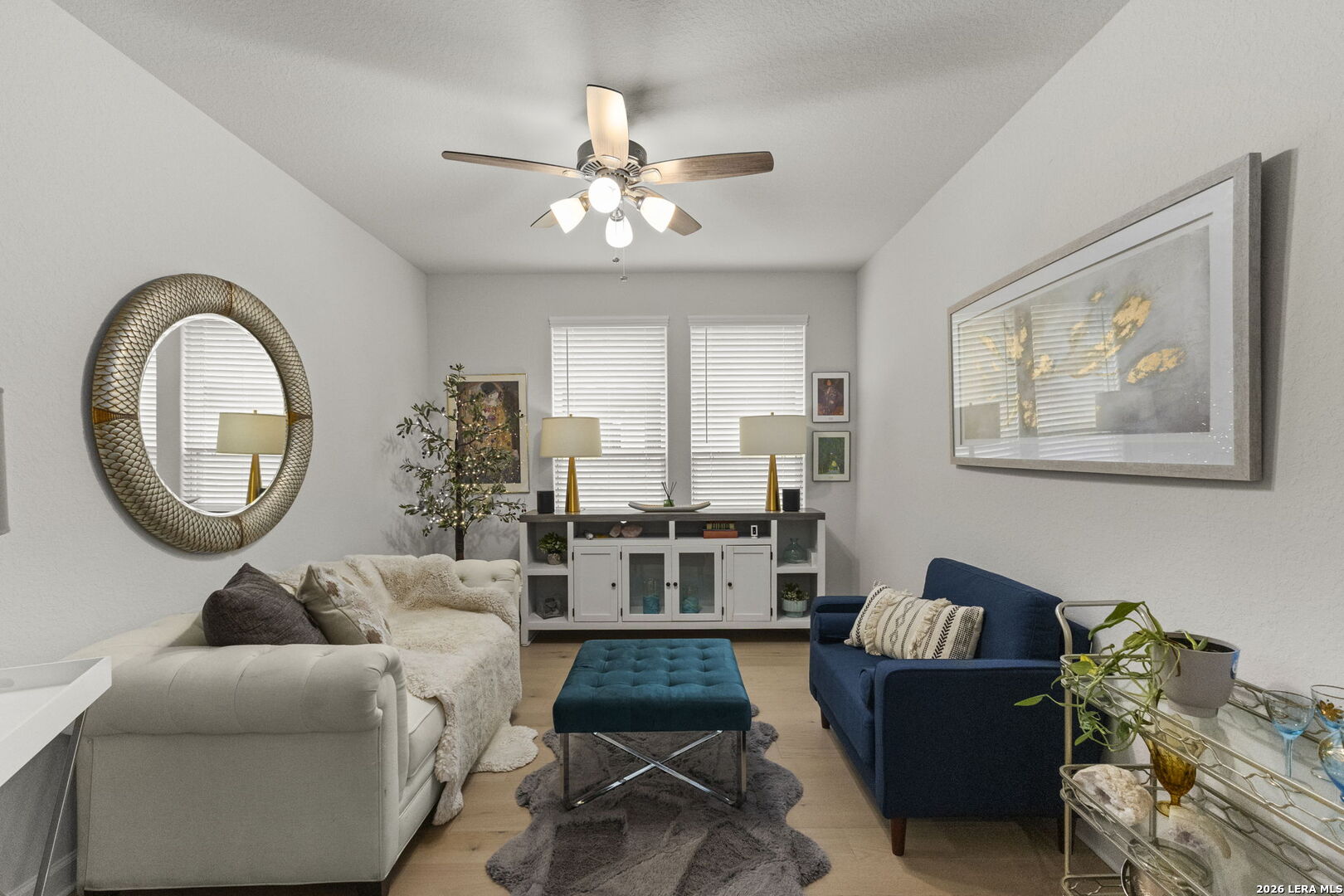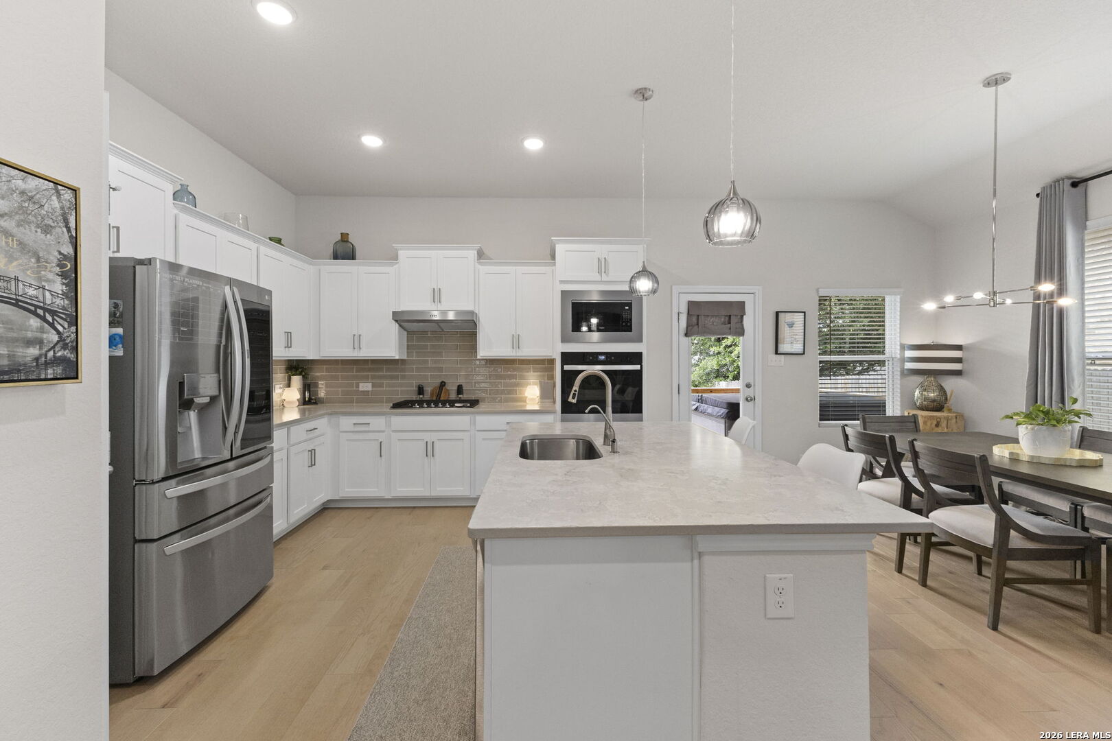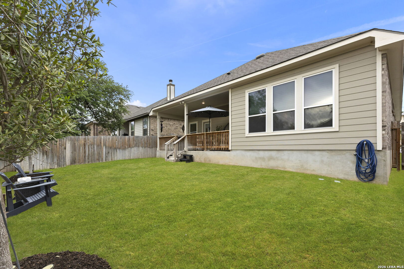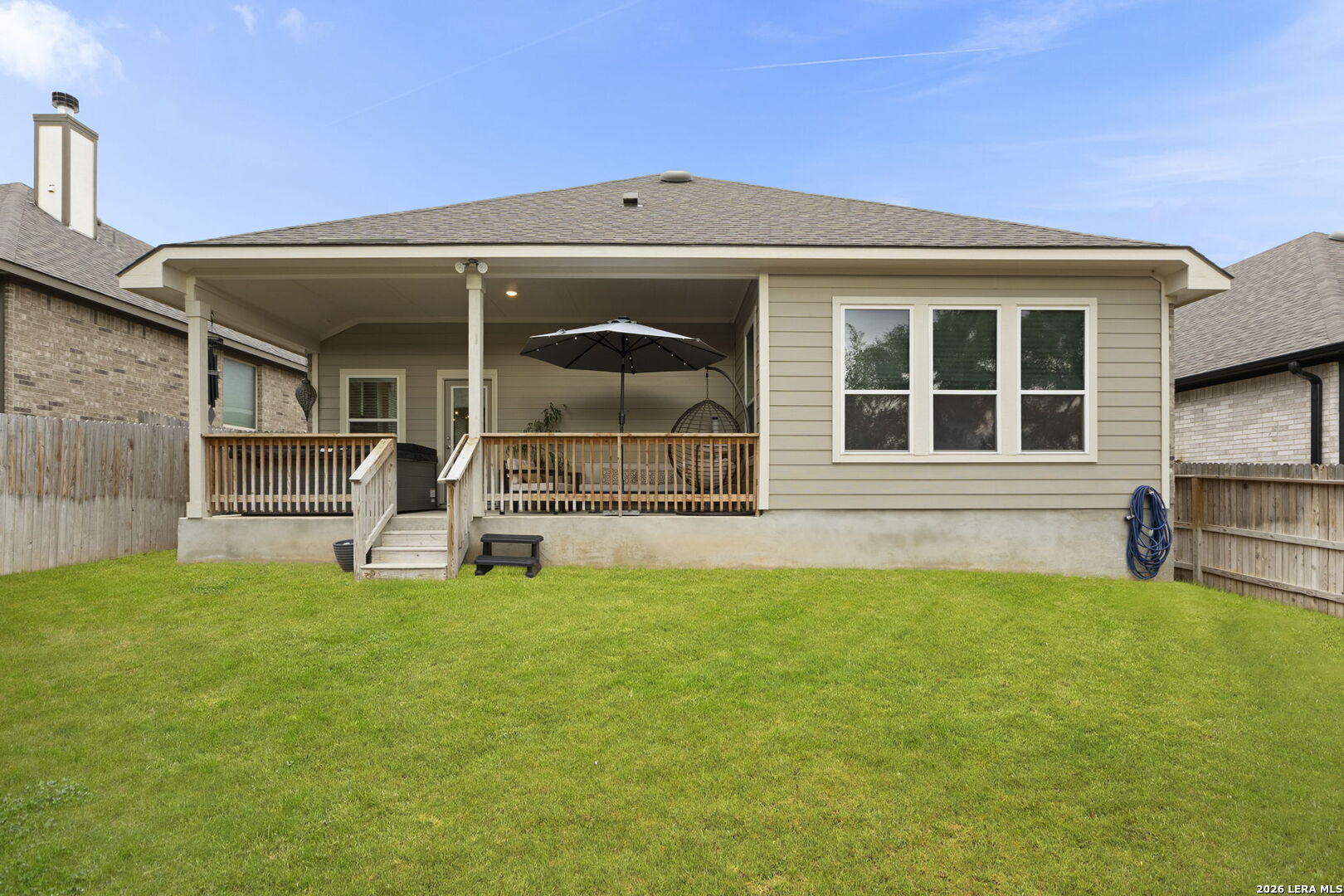 Welcome to an exceptional residence nestled in an established Northeast San Antonio community. This beautifully maintained home offers a warm, inviting atmosphere with thoughtfully designed living spaces and elegant touches throughout. Upon entry, you're greeted by a light-filled interior and a spacious living area that sets the tone for both refined entertaining and relaxed everyday living. The open-concept layout flows effortlessly into the dining and kitchen areas, where abundant cabinetry, generous counter space, and a large island create a functional yet stylish centerpiece for gathering. The private primary suite serves as a serene retreat, featuring a well-appointed en-suite bath with a spa-like oversized shower, double vanity, and a spacious walk-in closet. The secondary bedrooms offer versatility for guests or additional living space to suit your needs. Step outside to your own private escape, where a tranquil backyard awaits. Enjoy evenings under the covered patio or unwind in the hot tub, perfectly suited for relaxation. The back yard offers endless possibilities for outdoor living, gardening, or entertaining. Ideally located with convenient access to major highways, shopping, dining, and everyday amenities, this home seamlessly blends comfort, style, and convenience. Experience the warmth, charm, and elevated living this property has to offer. Schedule your private showing today.