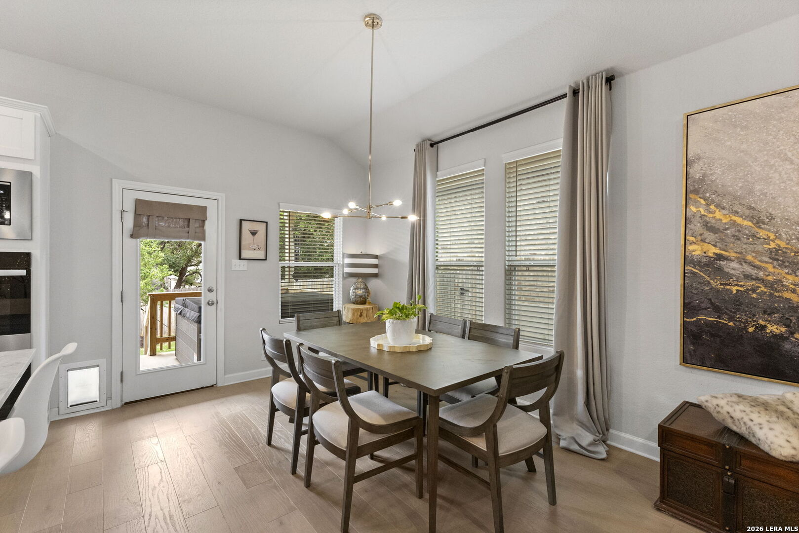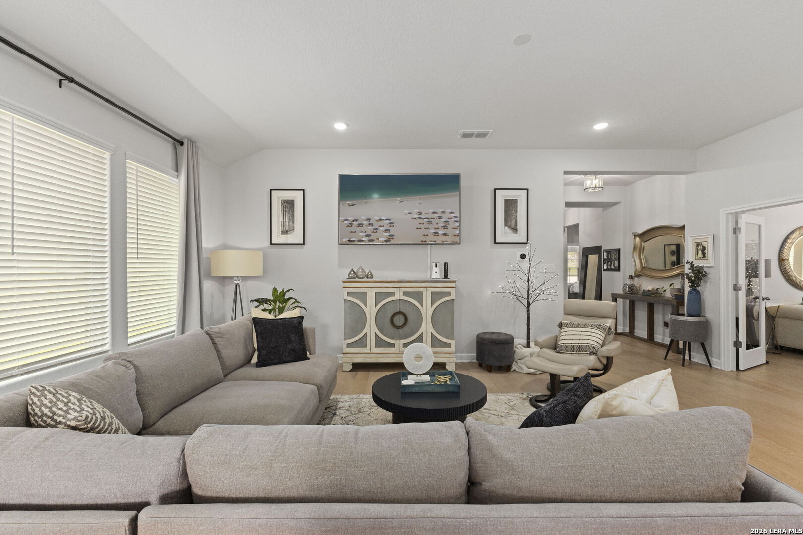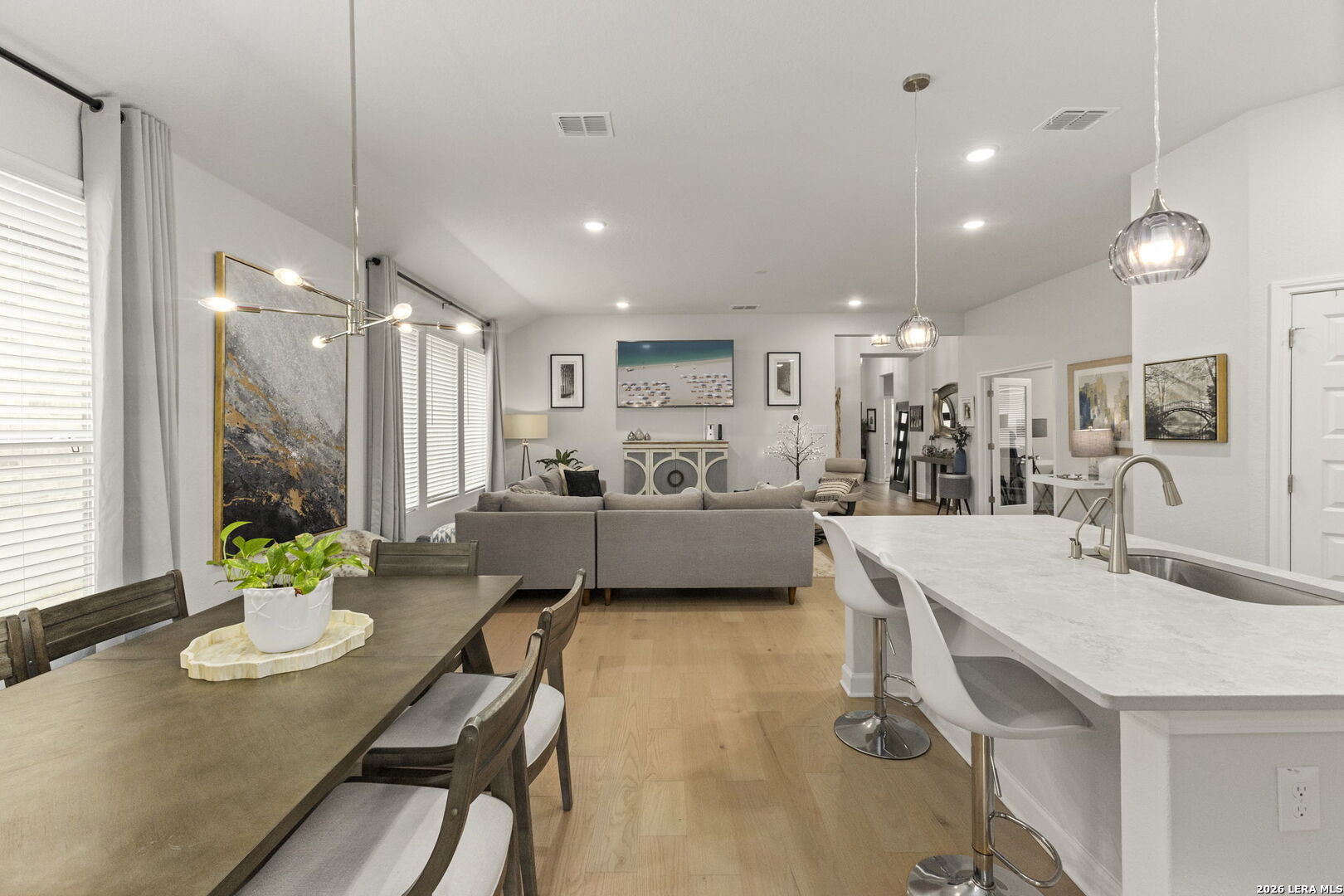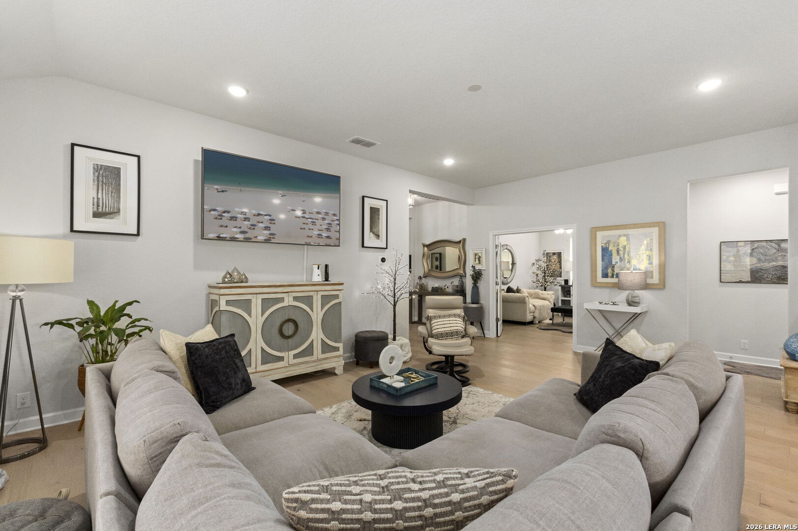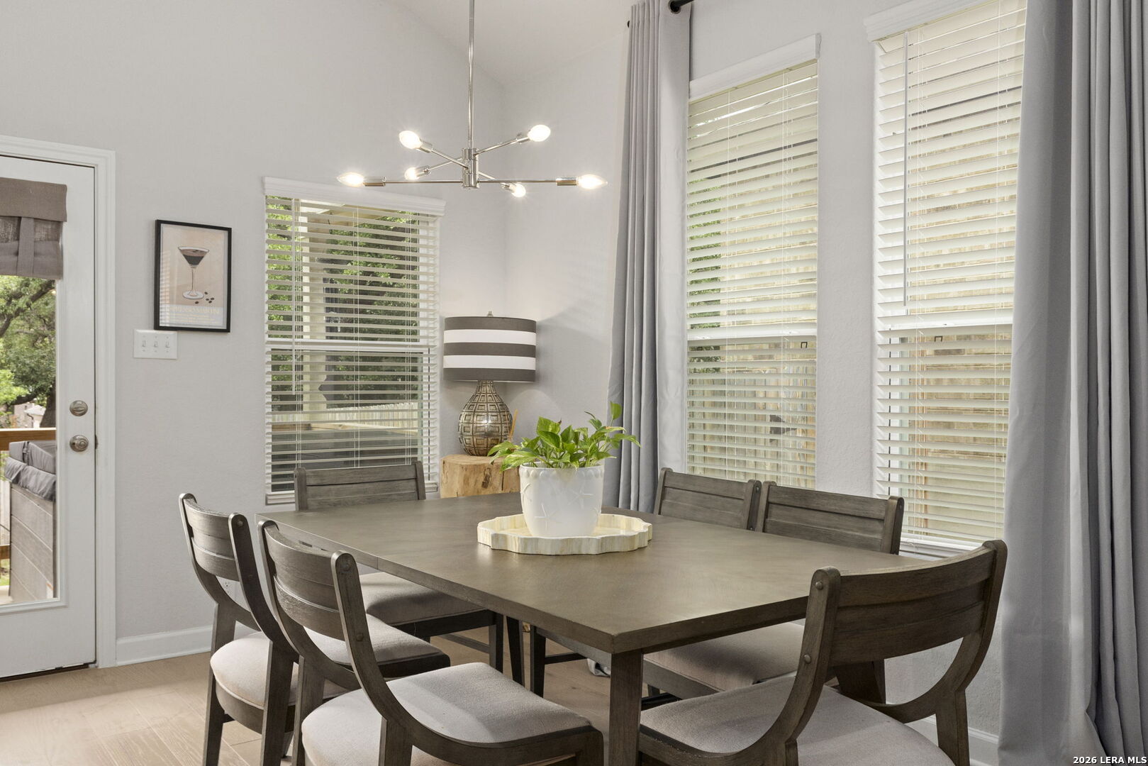 Welcome to an exceptional residence nestled in an established Northeast San Antonio community. This beautifully maintained home offers a warm, inviting atmosphere with thoughtfully designed living spaces and elegant touches throughout. Upon entry, you're greeted by a light-filled interior and a spacious living area that sets the tone for both refined entertaining and relaxed everyday living. The open-concept layout flows effortlessly into the dining and kitchen areas, where abundant cabinetry, generous counter space, and a large island create a functional yet stylish centerpiece for gathering. The private primary suite serves as a serene retreat, featuring a well-appointed en-suite bath with a spa-like oversized shower, double vanity, and a spacious walk-in closet. The secondary bedrooms offer versatility for guests or additional living space to suit your needs. Step outside to your own private escape, where a tranquil backyard awaits. Enjoy evenings under the covered patio or unwind in the hot tub, perfectly suited for relaxation. The back yard offers endless possibilities for outdoor living, gardening, or entertaining. Ideally located with convenient access to major highways, shopping, dining, and everyday amenities, this home seamlessly blends comfort, style, and convenience. Experience the warmth, charm, and elevated living this property has to offer. Schedule your private showing today.