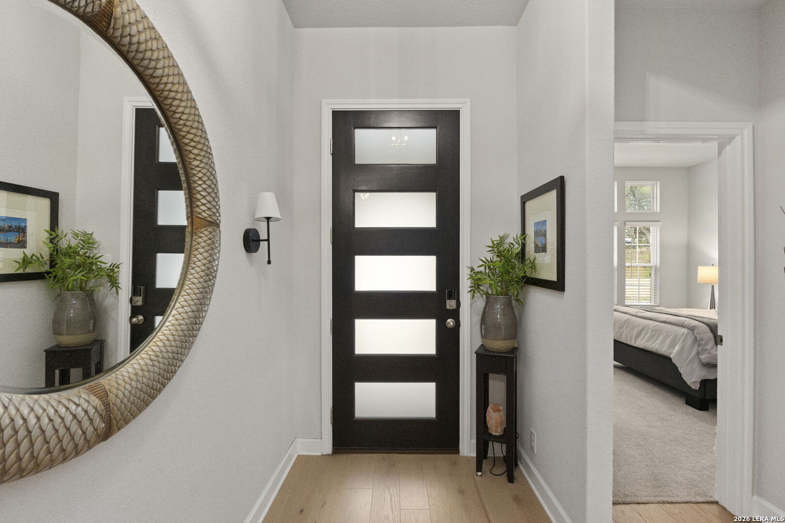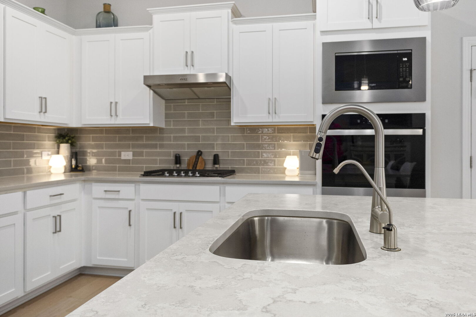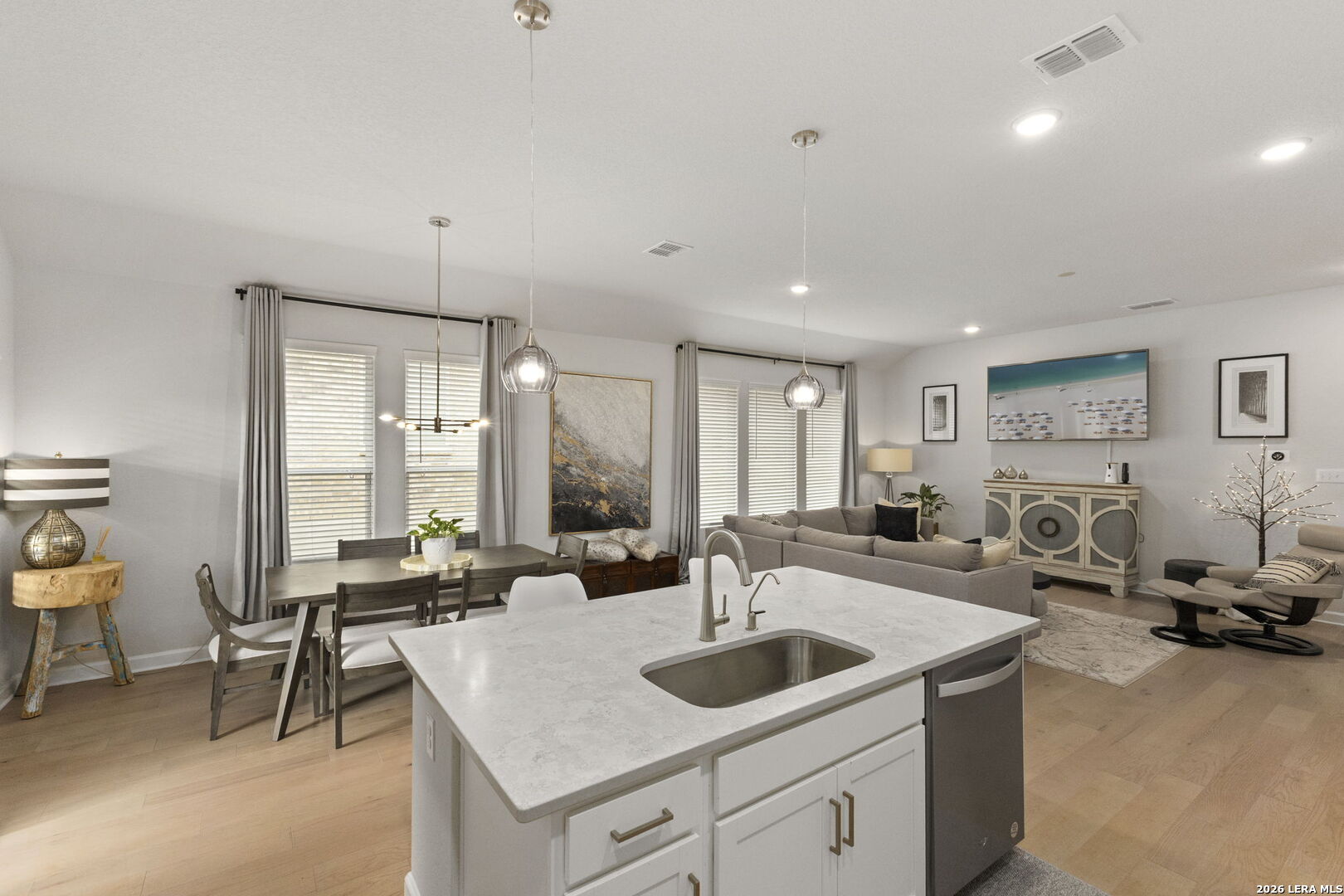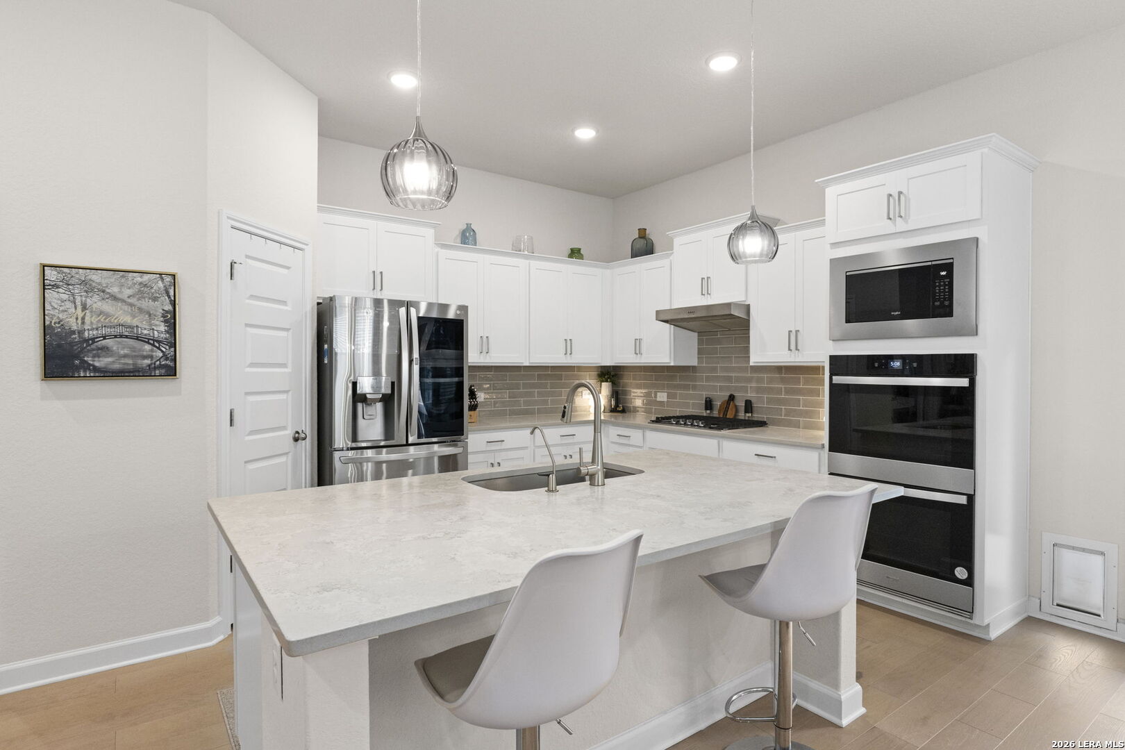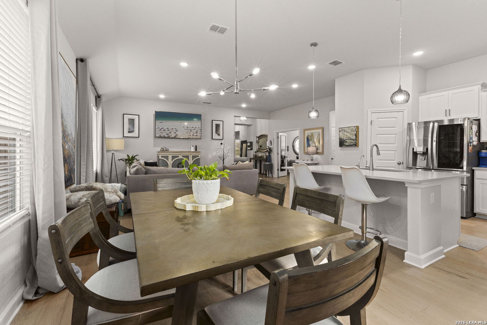 Welcome to an exceptional residence nestled in an established Northeast San Antonio community. This beautifully maintained home offers a warm, inviting atmosphere with thoughtfully designed living spaces and elegant touches throughout. Upon entry, you're greeted by a light-filled interior and a spacious living area that sets the tone for both refined entertaining and relaxed everyday living. The open-concept layout flows effortlessly into the dining and kitchen areas, where abundant cabinetry, generous counter space, and a large island create a functional yet stylish centerpiece for gathering. The private primary suite serves as a serene retreat, featuring a well-appointed en-suite bath with a spa-like oversized shower, double vanity, and a spacious walk-in closet. The secondary bedrooms offer versatility for guests or additional living space to suit your needs. Step outside to your own private escape, where a tranquil backyard awaits. Enjoy evenings under the covered patio or unwind in the hot tub, perfectly suited for relaxation. The back yard offers endless possibilities for outdoor living, gardening, or entertaining. Ideally located with convenient access to major highways, shopping, dining, and everyday amenities, this home seamlessly blends comfort, style, and convenience. Experience the warmth, charm, and elevated living this property has to offer. Schedule your private showing today.
