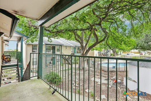 Rare 1 bedroom studio style floorplan. Second floor condo overlooking the swimming pool. Move-in ready! Lots of mature oaks and shade. An excellent location walking distance to HEB and local shopping. Minutes from Texas State, downtown and I-35. Just renovated and available for immediate move in. All kithcen appliances with built in microwave and washer and dryer. An excellent choice for a college student or new homebuyer seeking a low maintenance lifestyle. A well managed community with a sport court, dog park and swimming pool.